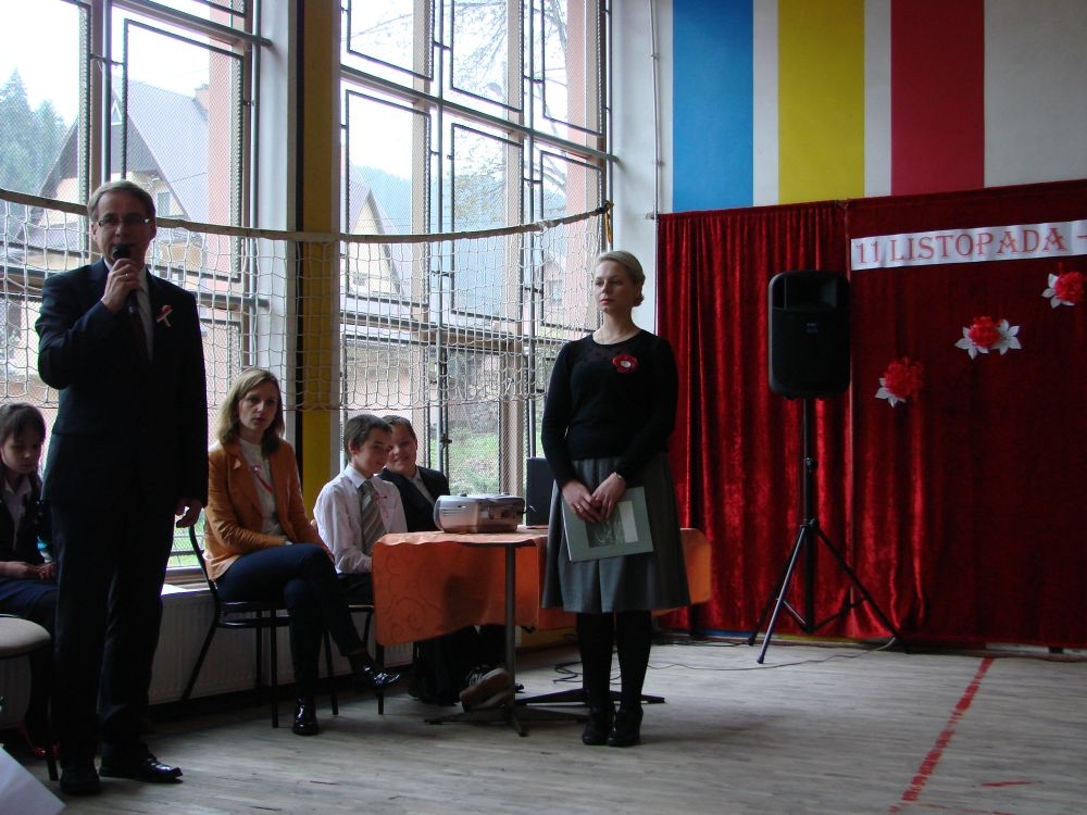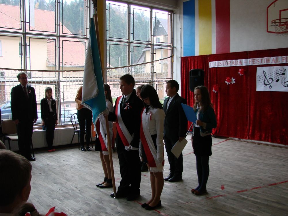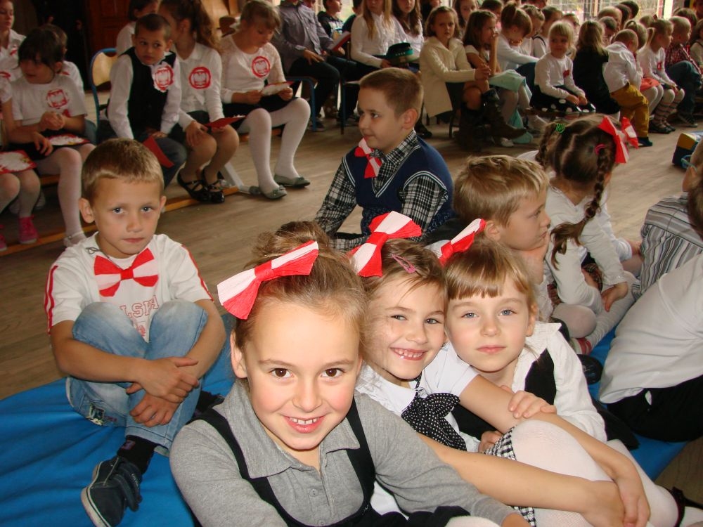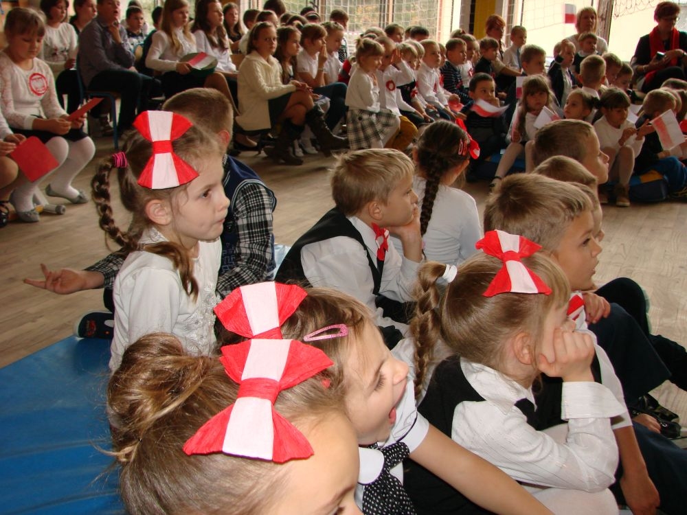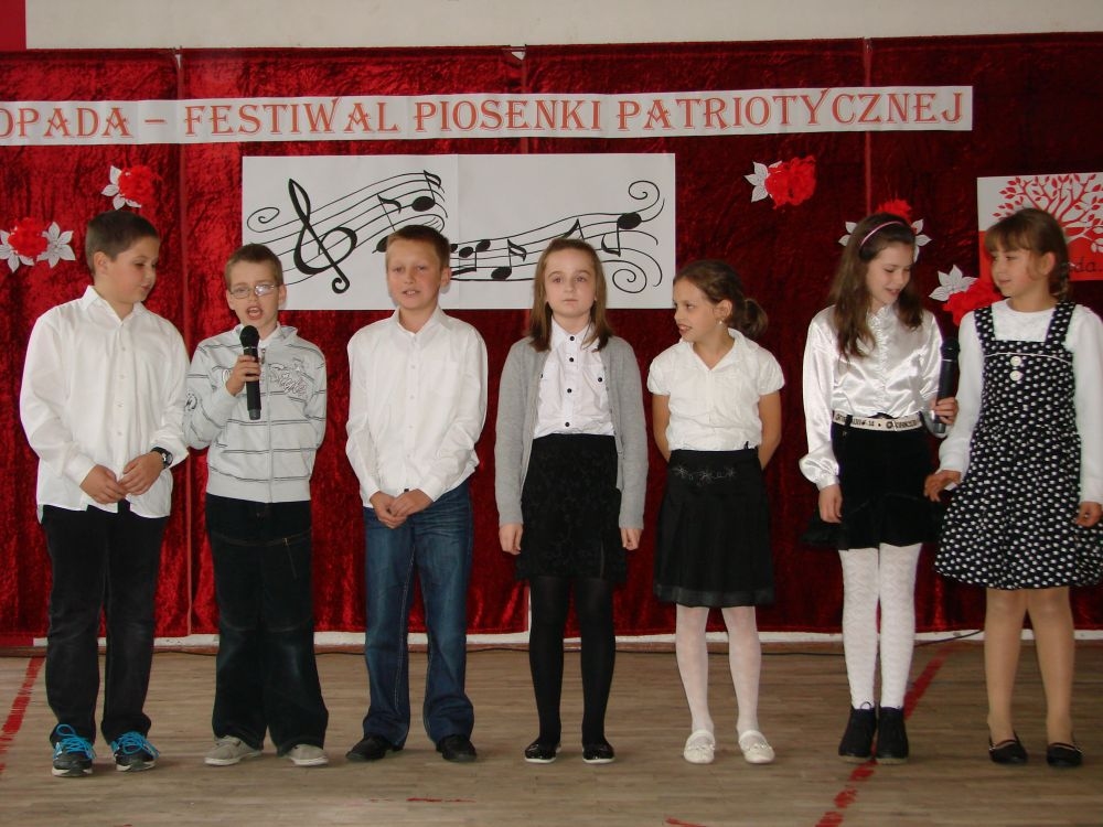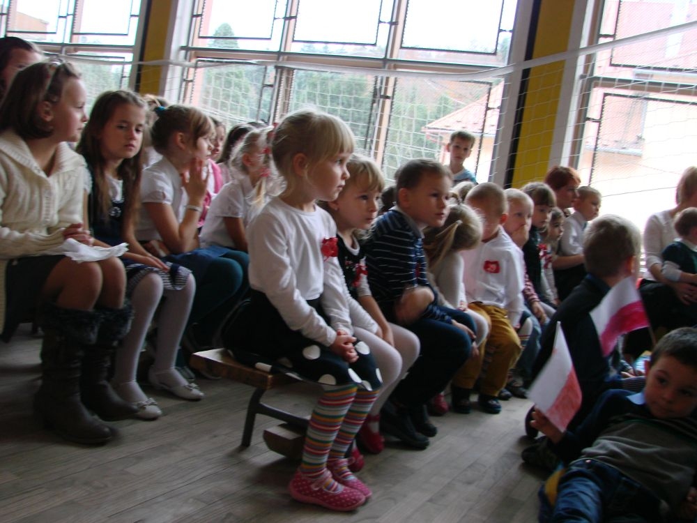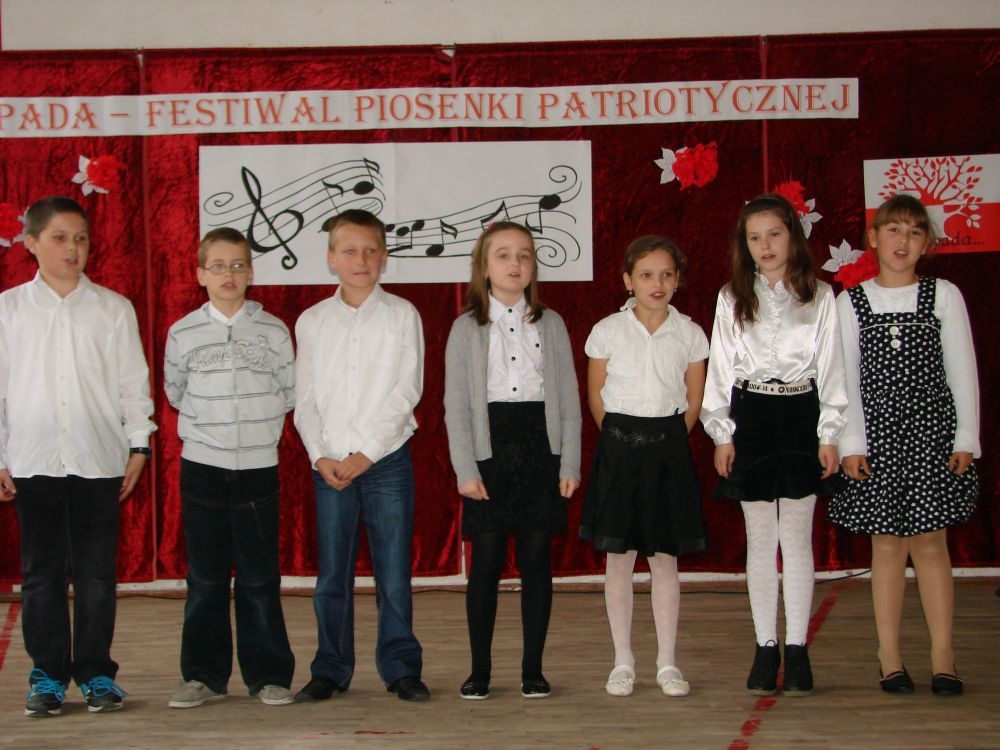11 listopada obchodzimy Święto Niepodległości. Tradycyjnie, jak co roku, społeczność Szkoły Podstawowej w Kosarzyskach aktywnie włączyła się w obchody 96 rocznicy odzyskania przez Polskę niepodległości. Dzień ten świętowaliśmy w poczuciu radości i dumy. Cała społeczność szkolna przyszła w tym dniu ubrana na galowo, aby podkreślić ważność uroczystości. Wychowawcy zadbali również o dodatkowe elementy - kotyliony, flagi, czy wstążeczki w kolorach biało - czerwonych. W tym roku uroczystość przebiegała inaczej niż zwykle. Pani Aleksandra Dzięgiel i pani Monika Łączek - Bołoz zaproponowały, aby po raz pierwszy odbył się Festiwal Piosenki Patriotycznej. Już dwa tygodnie przed uroczystością wszyscy uczniowie naszej szkoły poznawali teksty i melodie piosenek. Aż w końcu nadszedł ten oczekiwany przez wszystkich dzień, w którym odbyła się niecodzienna lekcja historii. W festiwalu wzięły udział wszystkie dzieci, począwszy od przedszkola, poprzez zerówkę, klasy I-III oraz klasy IV-VI. Repertuar spotkania był bardzo różnorodny. Całą uroczystość rozpoczęliśmy wspólnie odśpiewanym Mazurkiem Dąbrowskiego. Następnie uczniowie śpiewali pieśni artystyczne, patriotyczne i legionowe, które były przeplatane wierszami oraz ważnymi wydarzeniami z dziejów Polski. Głos zabrał również Pan Dyrektor Marian Dobosz, który podkreślił znaczenie i ważność listopadowego święta. Wspomniał też o symbolu miłości do ojczyzny, walki o wolność, czy symbolu wiary i zwycięstwa. Na zakończenie wszyscy uczestnicy uroczystości zaśpiewali "Rotę", wspólnie "zanosząc błaganie: Tak nam dopomóż Bóg".
