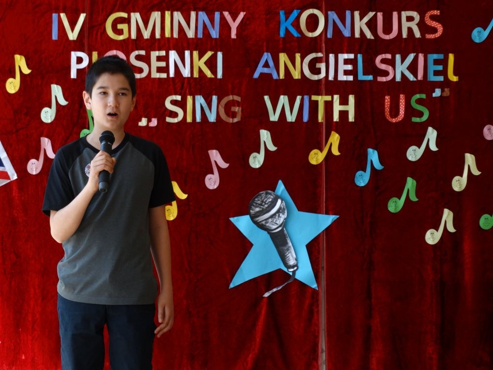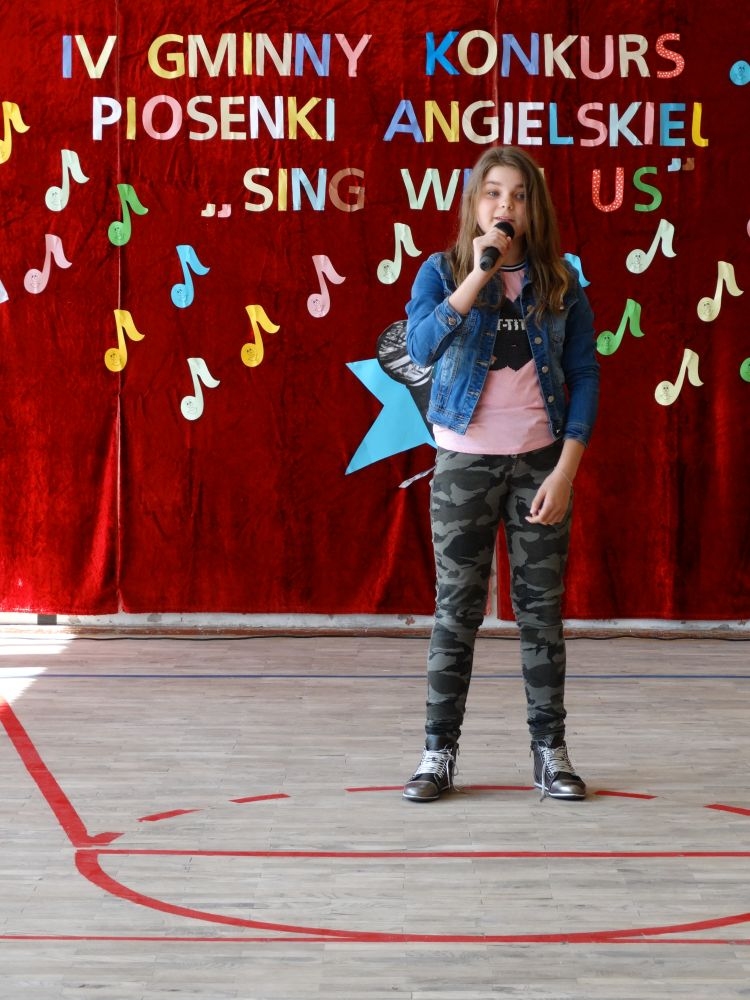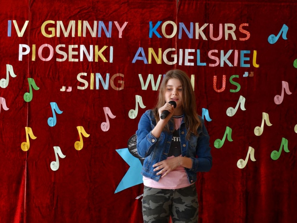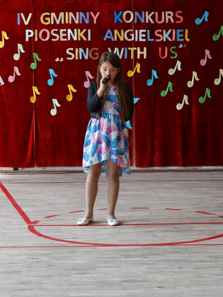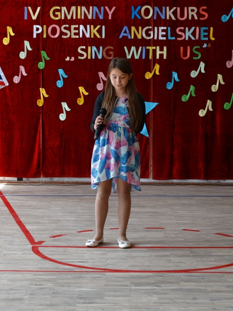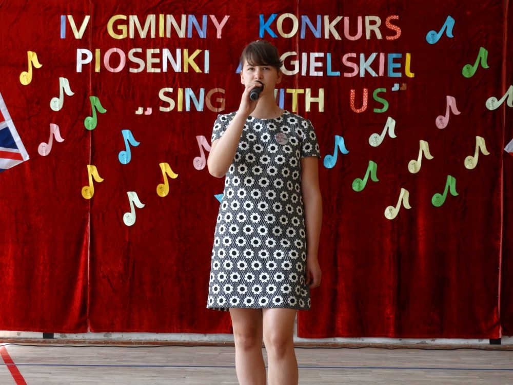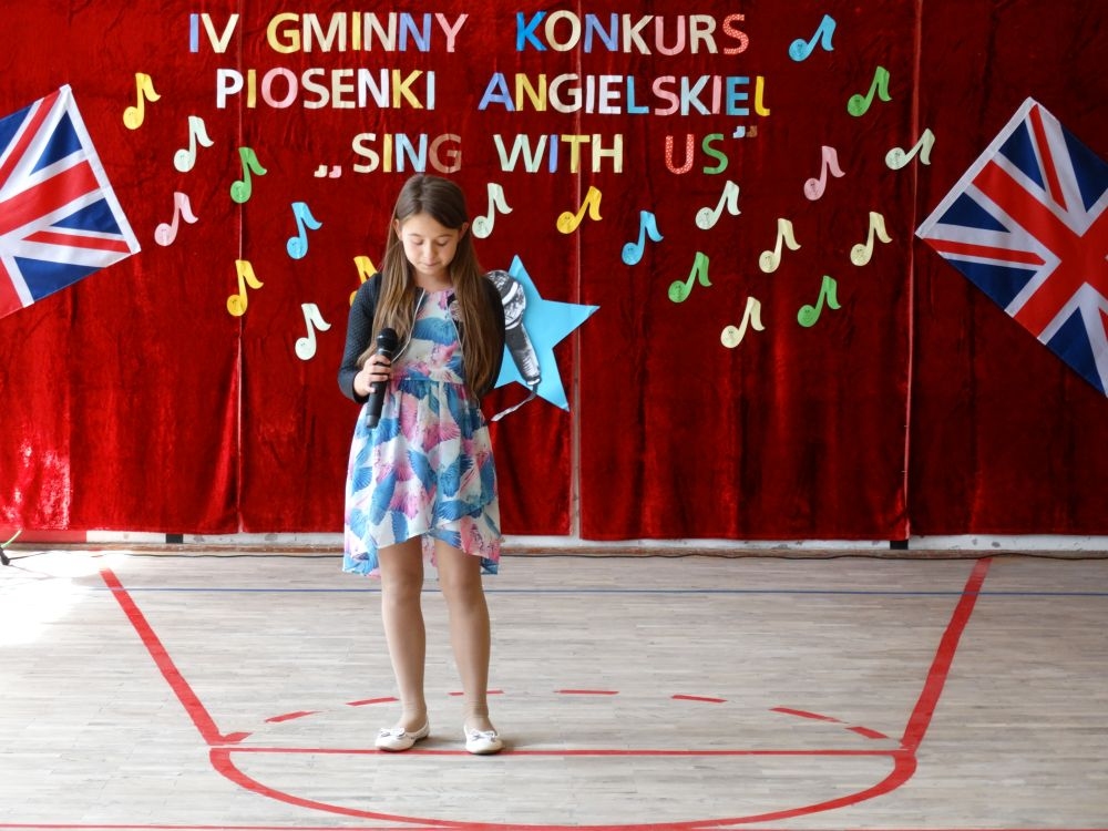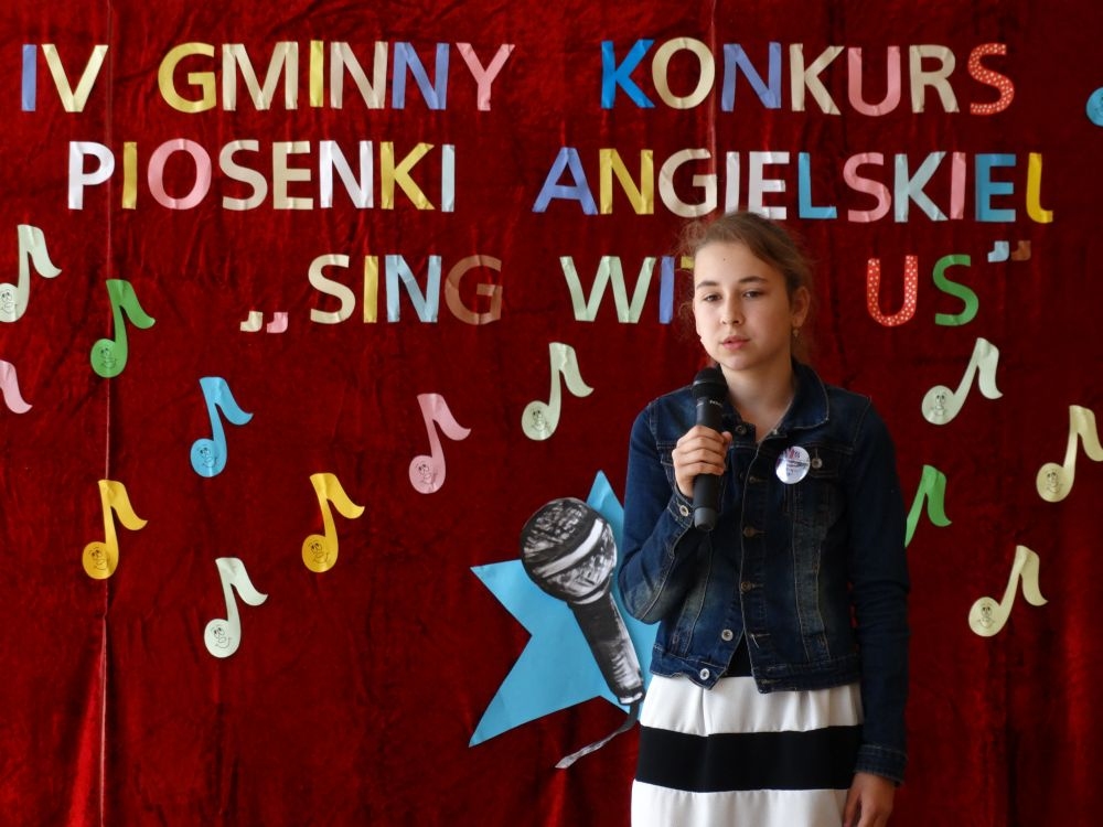 O tym, że każdy śpiewać może, trochę lepiej lub trochę gorzej, przekonaliśmy się na IV gminnym konkursie piosenki angielskiej „ Sing with Us” . Dnia 29 maja uczniowie ze wszystkich szkół w naszej gminie zaprezentowali przed jurorami swoje muzyczne oraz językowe umiejętności. Każdy z uczestników musiał zaśpiewać wybrany przez siebie utwór w języku angielskim. Stres towarzyszył na pewno każdemu z nich, ale była przy tym również dobra zabawa i miła atmosfera. Wszyscy wspierali się wzajemnie brawami i życzliwymi uśmiechami.