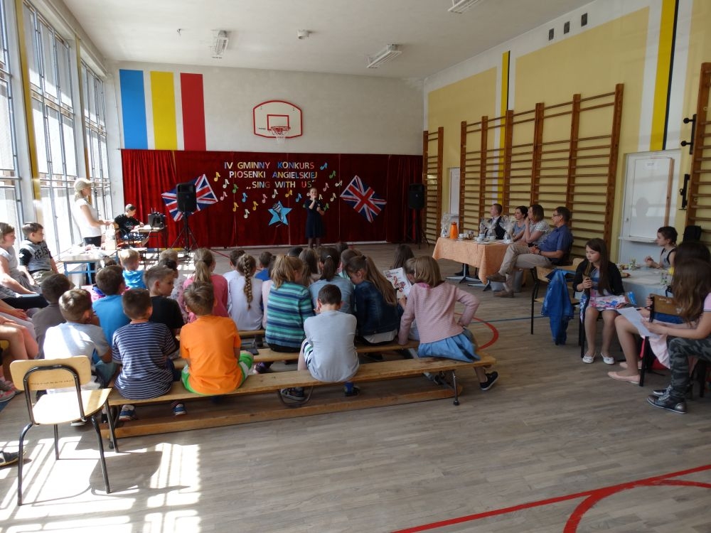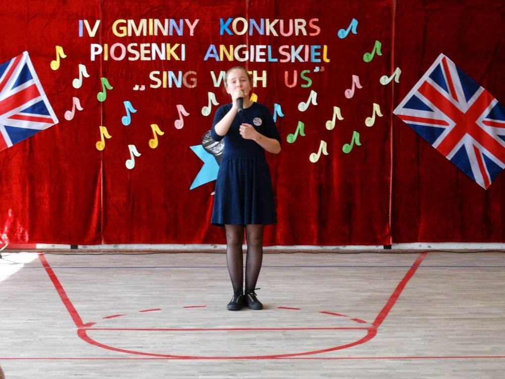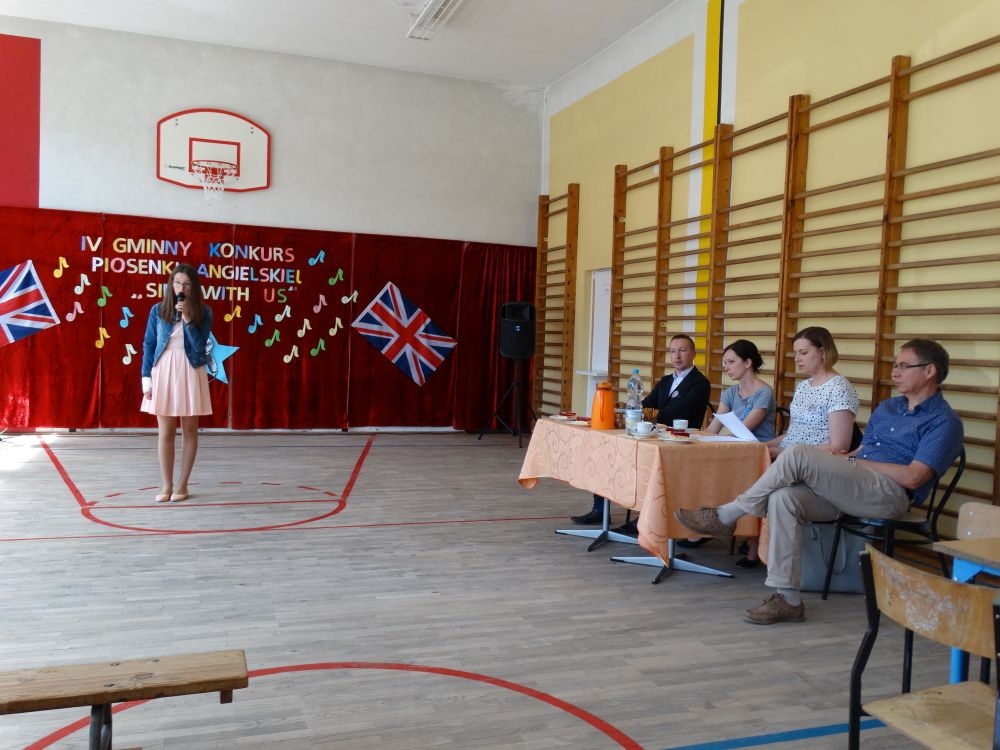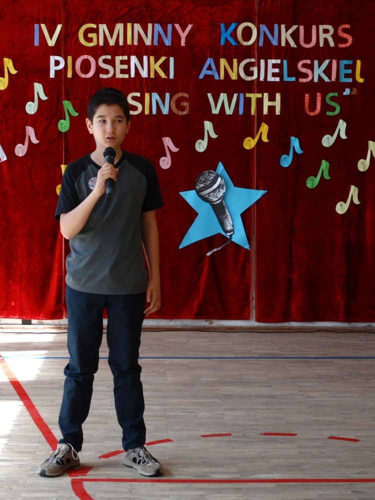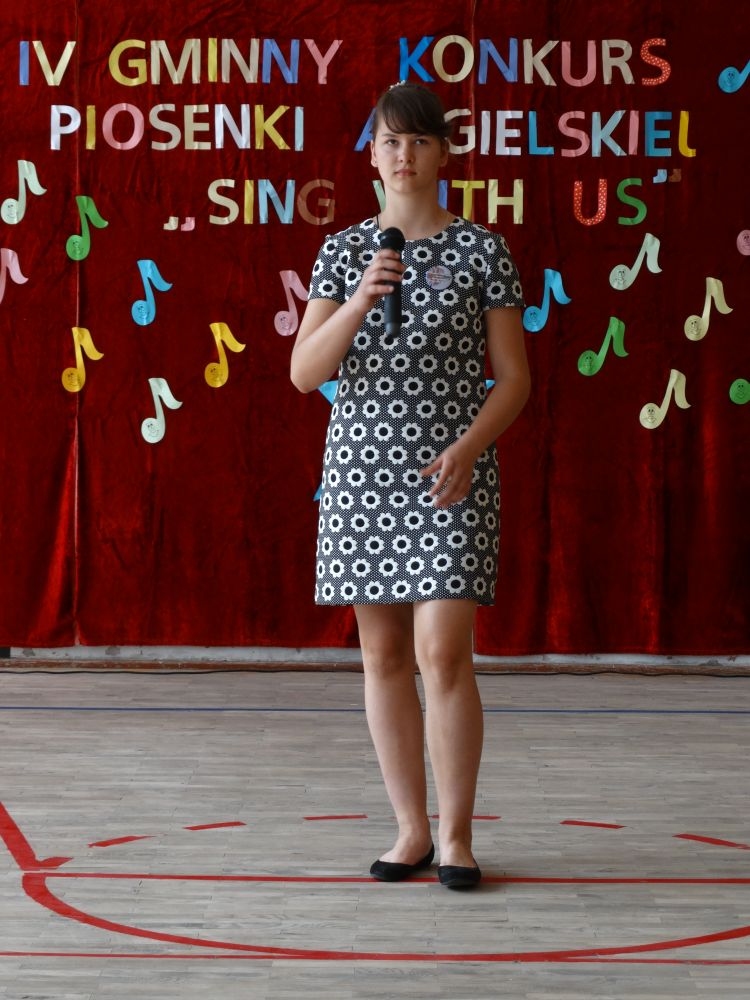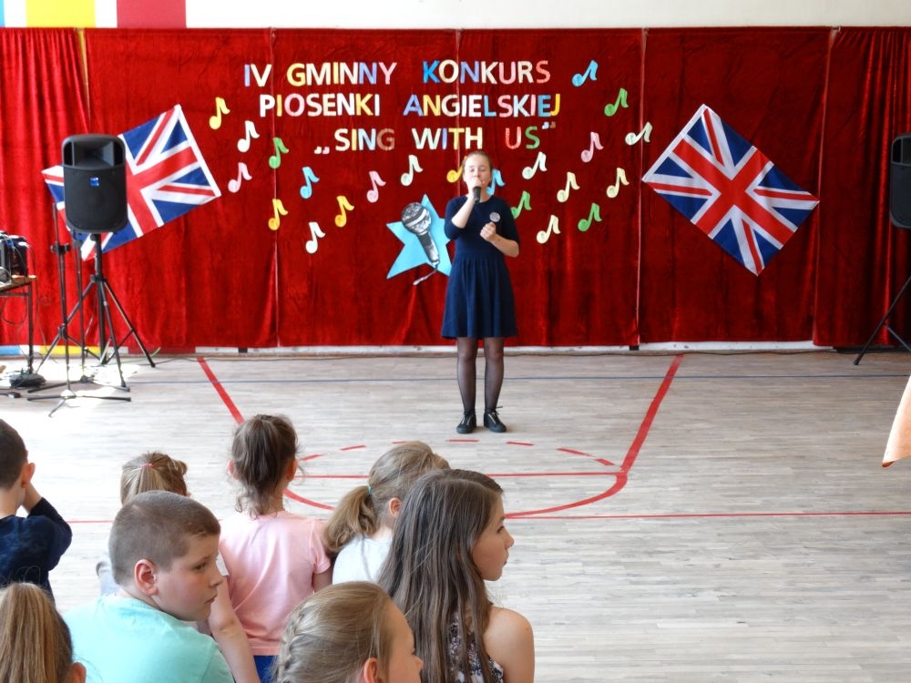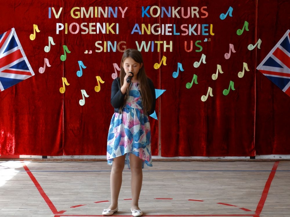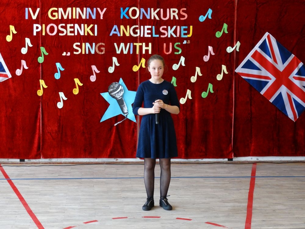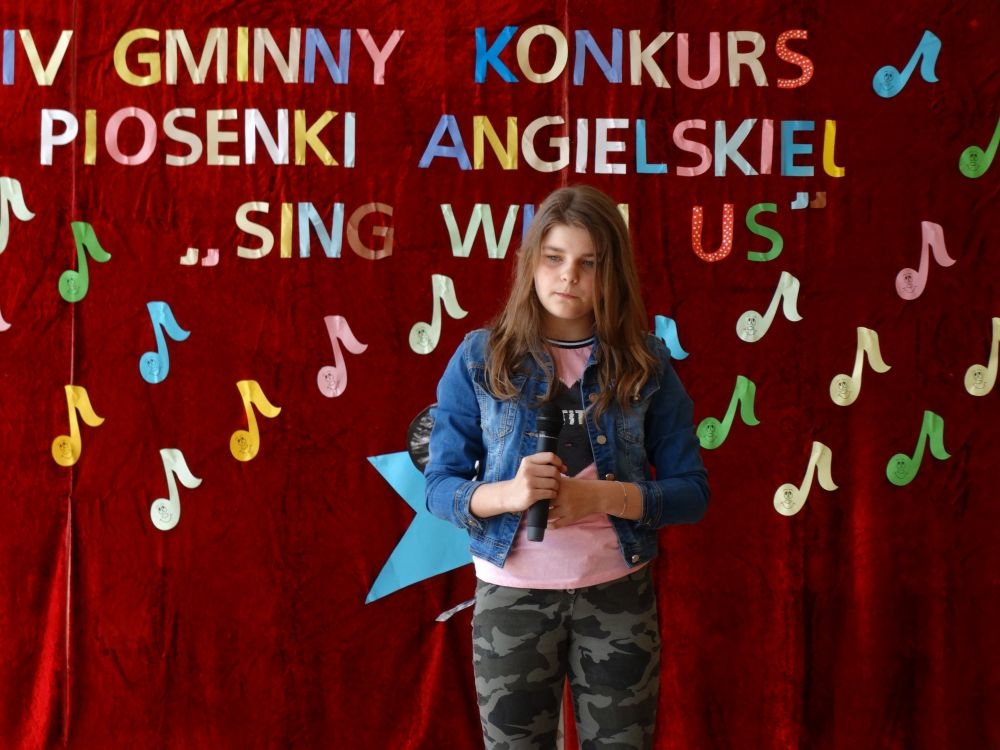 O tym, że każdy śpiewać może, trochę lepiej lub trochę gorzej, przekonaliśmy się na IV gminnym konkursie piosenki angielskiej „ Sing with Us” . Dnia 29 maja uczniowie ze wszystkich szkół w naszej gminie zaprezentowali przed jurorami swoje muzyczne oraz językowe umiejętności. Każdy z uczestników musiał zaśpiewać wybrany przez siebie utwór w języku angielskim. Stres towarzyszył na pewno każdemu z nich, ale była przy tym również dobra zabawa i miła atmosfera. Wszyscy wspierali się wzajemnie brawami i życzliwymi uśmiechami.