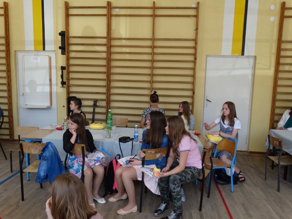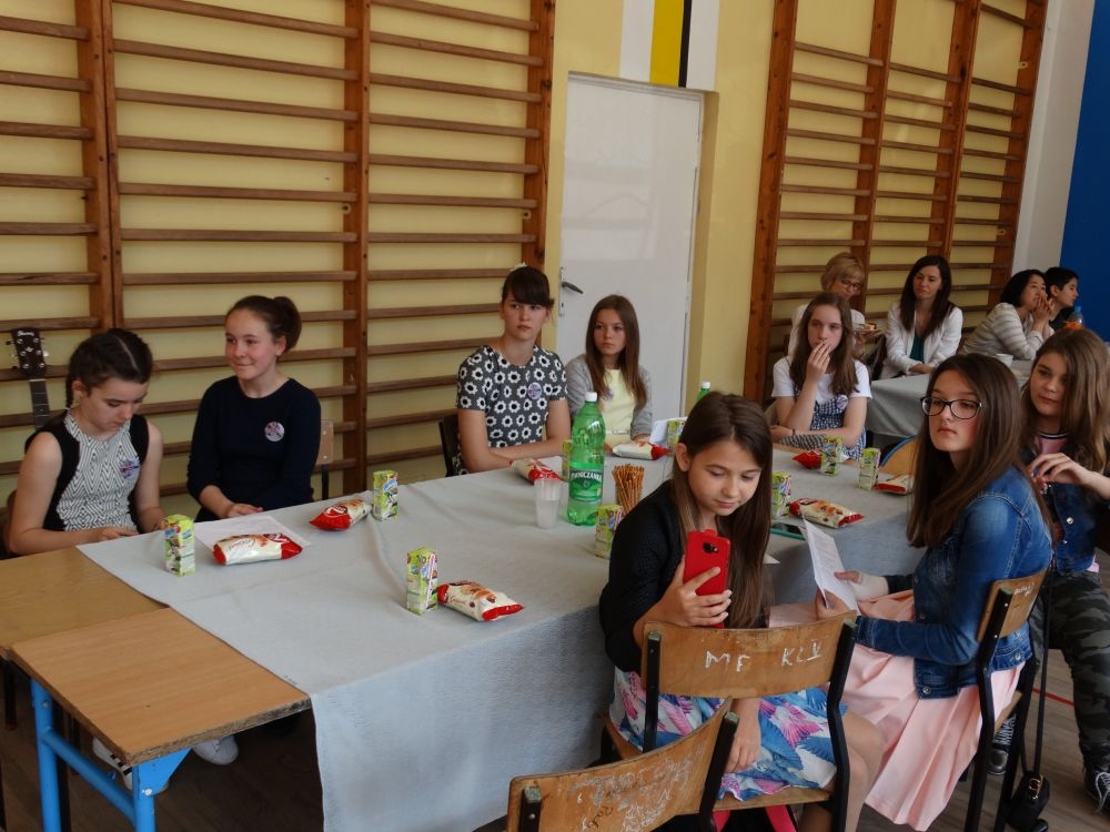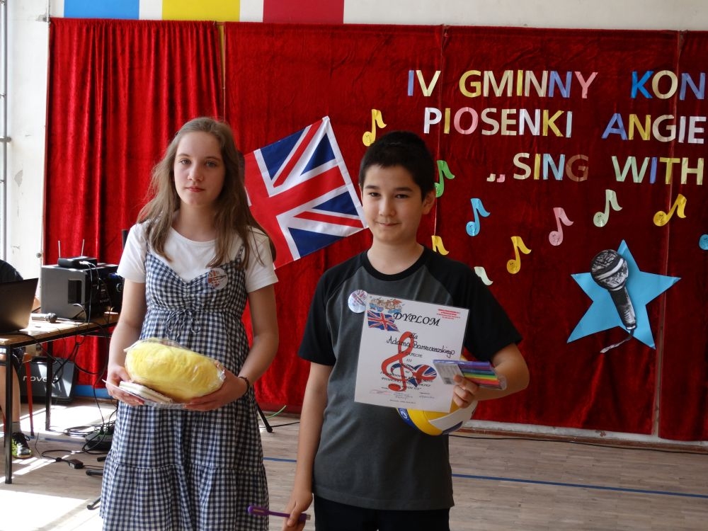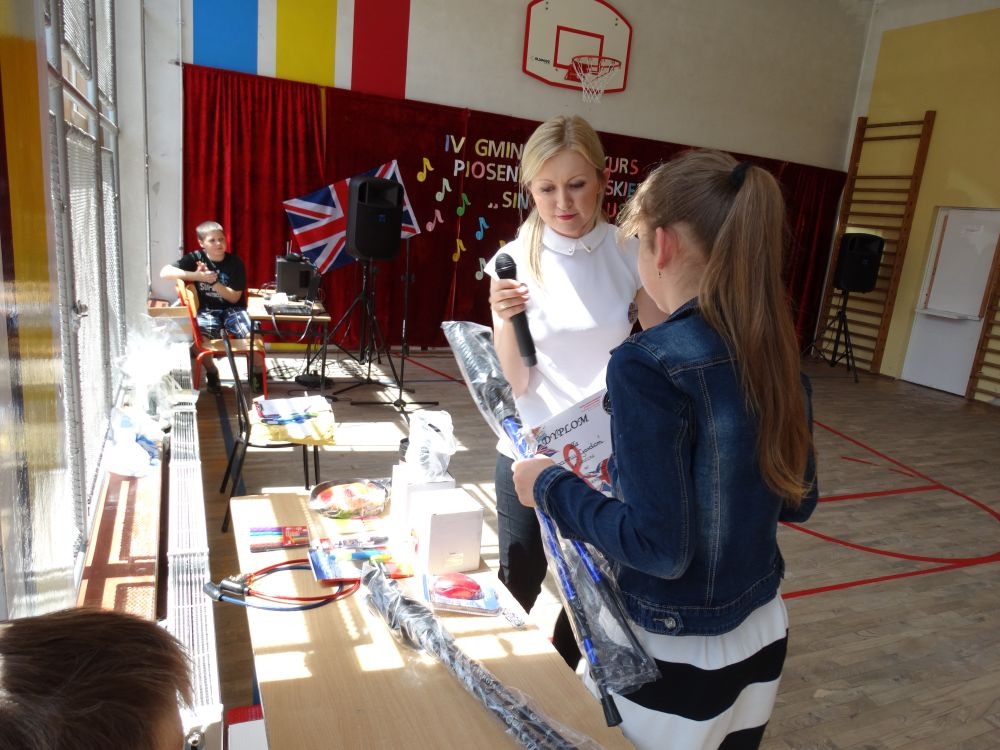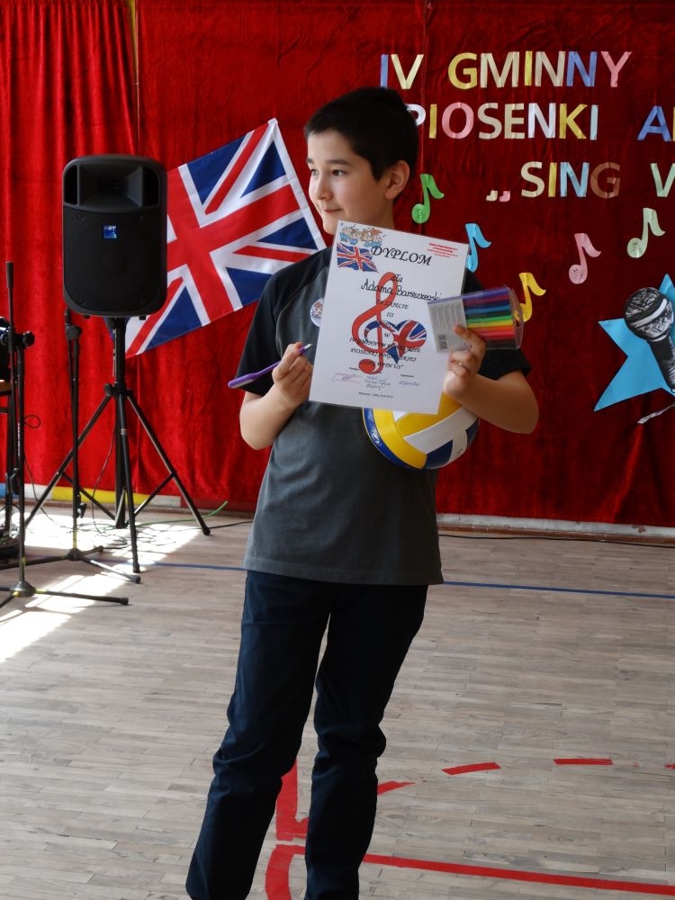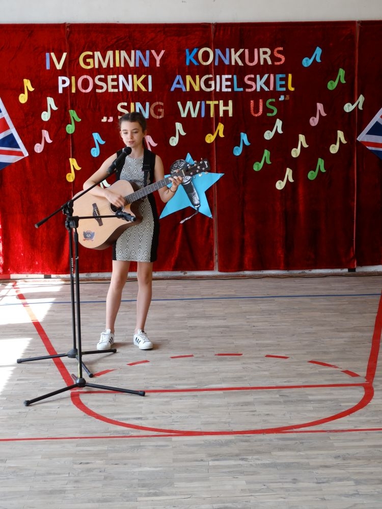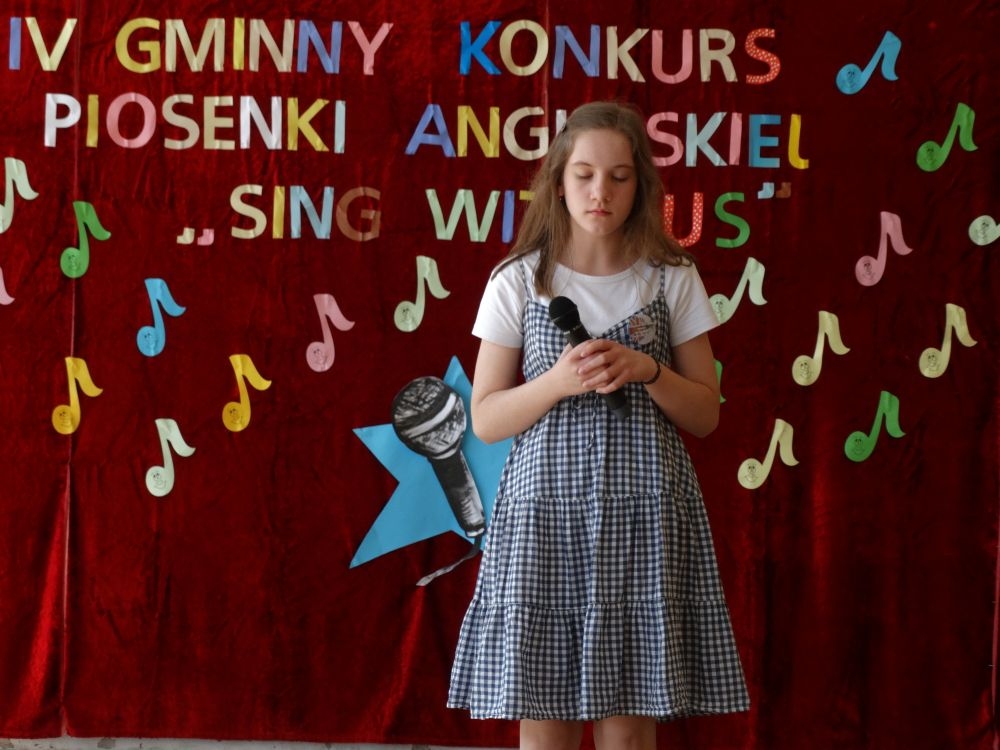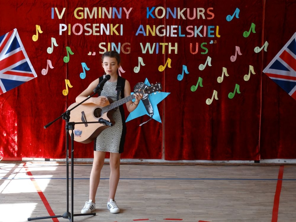O tym, że każdy śpiewać może, trochę lepiej lub trochę gorzej, przekonaliśmy się na IV gminnym konkursie piosenki angielskiej „ Sing with Us” . Dnia 29 maja uczniowie ze wszystkich szkół w naszej gminie zaprezentowali przed jurorami swoje muzyczne oraz językowe umiejętności. Każdy z uczestników musiał zaśpiewać wybrany przez siebie utwór w języku angielskim. Stres towarzyszył na pewno każdemu z nich, ale była przy tym również dobra zabawa i miła atmosfera. Wszyscy wspierali się wzajemnie brawami i życzliwymi uśmiechami.