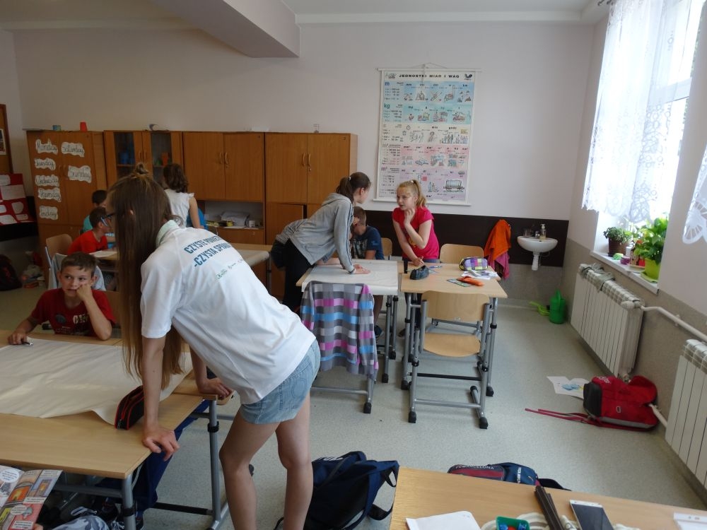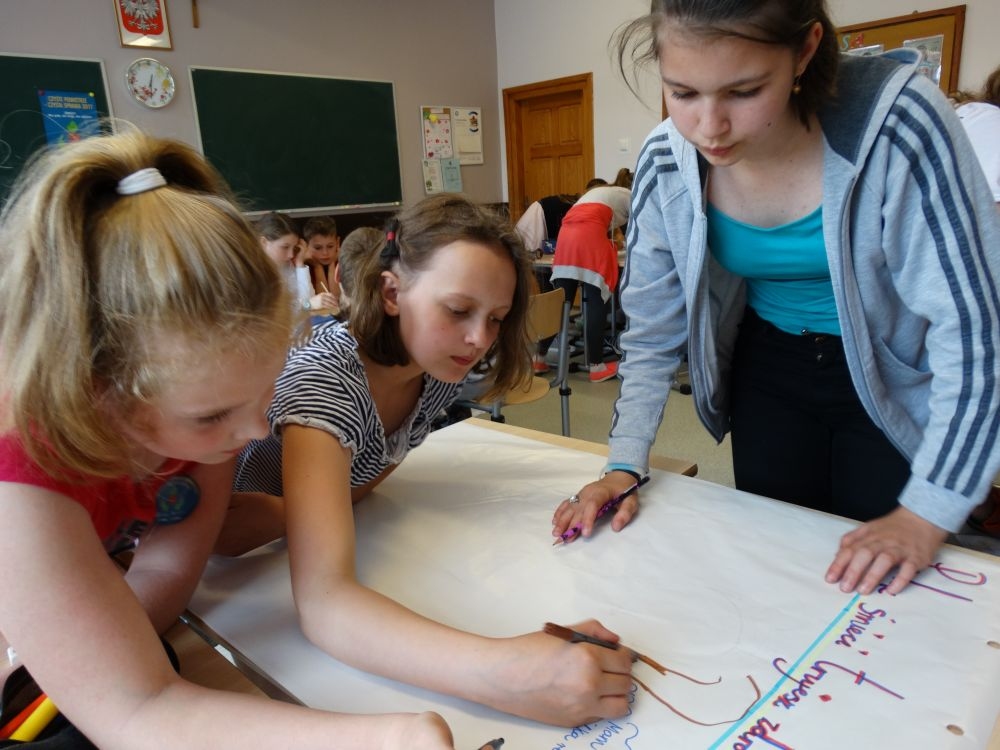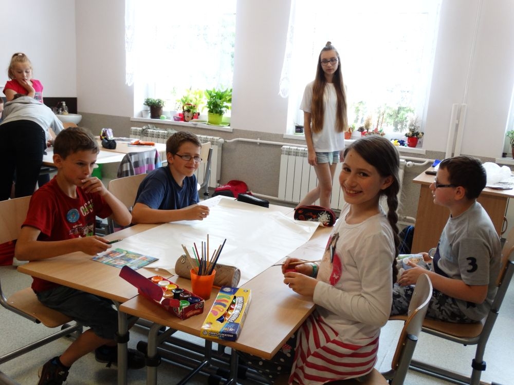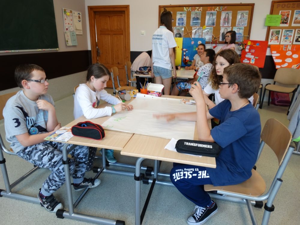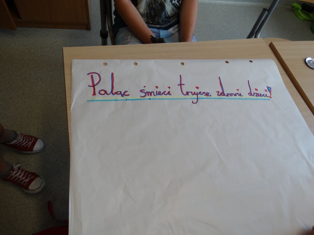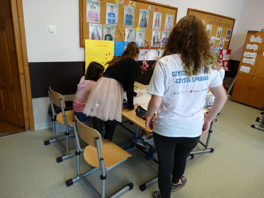 Dnia 30.05.2017 uczniowie klasy piątej wzięli udział w bardzo interesujących warsztatach ,,Czyste powietrze – czysta sprawa!”.Miały one na celu zwrócenie uwagi dzieci na problem zanieczyszczonego powietrza, jego skutków dla zdrowia ludzi. Podsuwały też pomysły, jak zapobiegać jego dalszemu zatruciu. Te ciekawe zajęcia prowadzili wolontariusze z Centrum KANA z Nowego Sącza. Uczniowie pracowali w grupach najbardziej nowoczesnymi metodami. Wymieniali swoje spostrzeżenia, wykonywali plakaty, rozwiązywali krzyżówki ,podawali własne propozycje rozwiązania tego palącego problemu ,jakim jest coraz bardziej ,,trujące” powietrze. Powyższe warsztaty podniosły świadomość uczestników na temat degradacji środowiska, uwrażliwiły ich na to zagadnienie. Były wspaniałą lekcją ekologii. Dziękujemy !