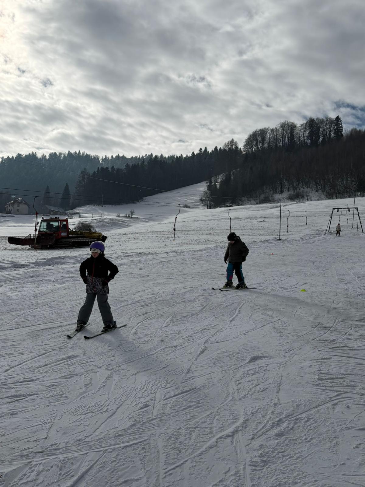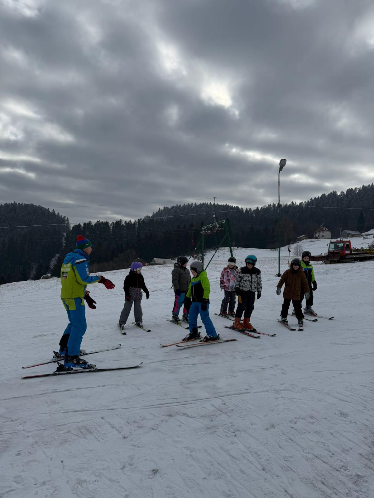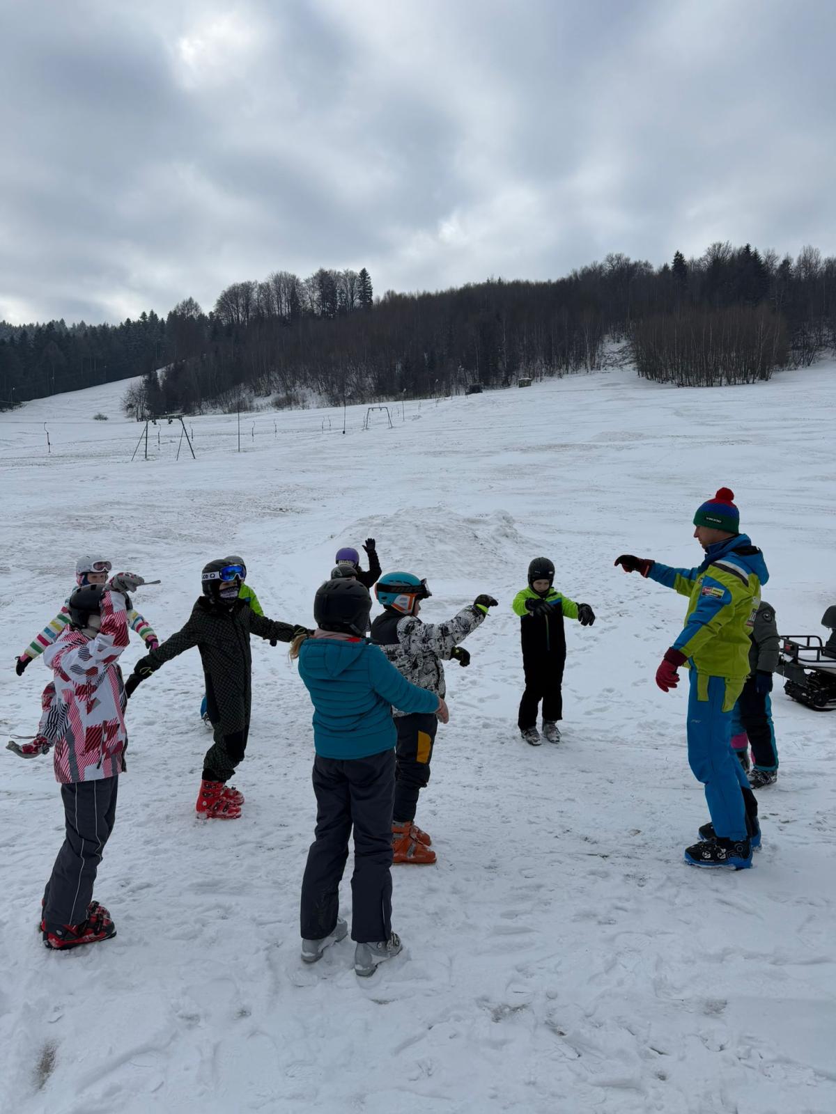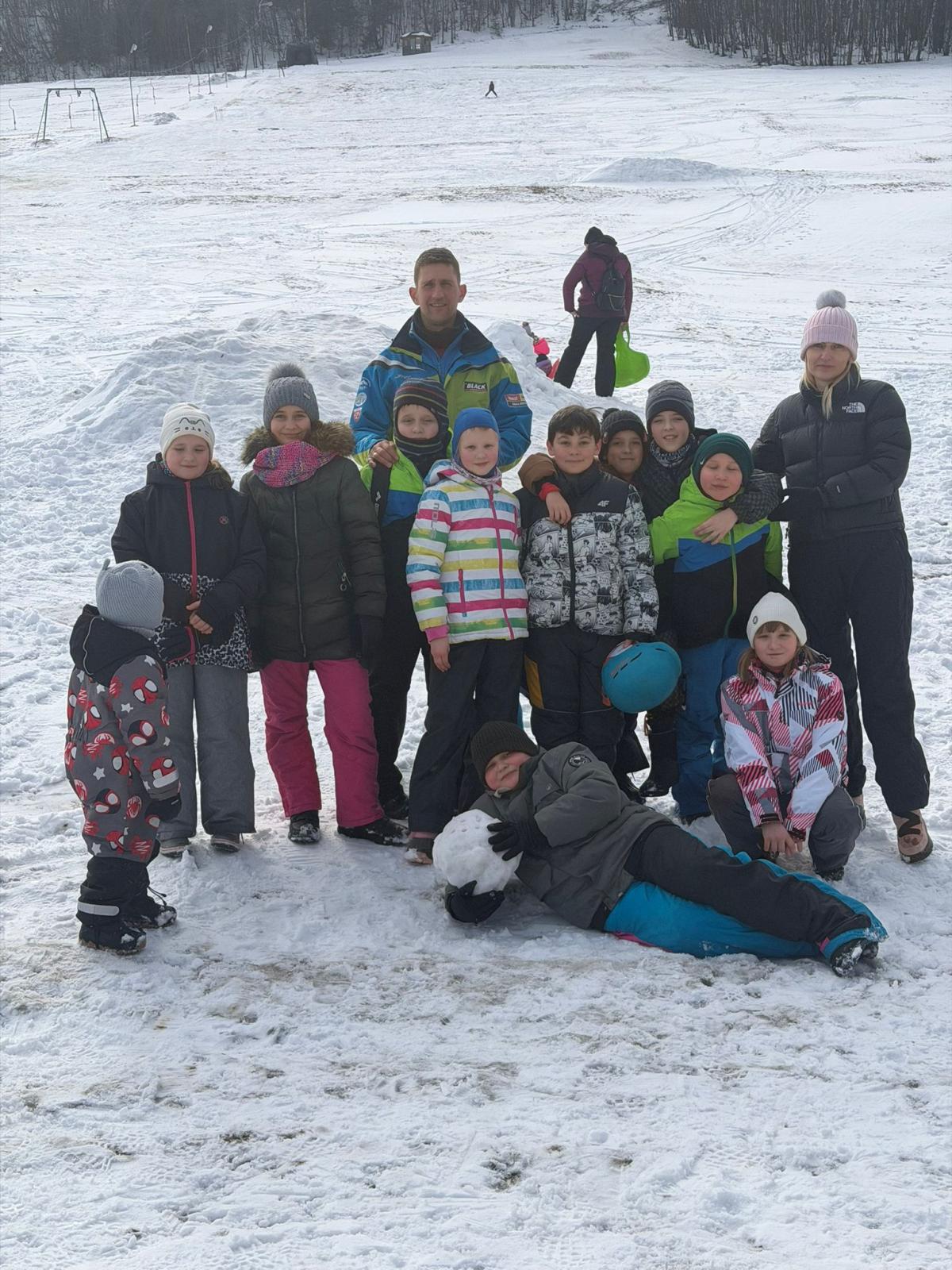 Uczniowie klasy czwartej wzięli udział w nauce jazdy na stoku narciarskim - Sucha Dolina. Wyjazd był doskonałą okazją do aktywnego spędzenia czasu na świeżym powietrzu oraz nauki nowych umiejętności. Dla wielu uczestników był to pierwszy kontakt z narciarstwem. Pod okiem pana Filipa Malika uczniowie poznawali podstawy jazdy – prawidłową postawę, technikę hamowania oraz wykonywanie pierwszych skrętów. Choć początki bywały trudne, nie brakowało determinacji i wzajemnego wsparcia. Z każdą minutą widać było wyraźne postępy, a pod koniec wyprawy większość uczniów potrafiła samodzielnie zjechać z łagodnego stoku. Po sportowych emocjach na uczestników czekało wspólne pieczenie kiełbasek. Był to czas odpoczynku, rozmów i dzielenia się wrażeniami z pierwszych narciarskich doświadczeń. Ciepła herbata i pieczone kiełbaski smakowały wyjątkowo po intensywnym dniu na śniegu. Wyjazd nie odbyłby się bez wsparcia rodziców, którzy zapewnili transport oraz aktywnie włączyli się w opiekę nad uczniami. Dzięki ich zaangażowaniu wydarzenie przebiegło sprawnie i bezpiecznie. Wyprawa ta była nie tylko lekcją sportu, ale także okazją do integracji i budowania relacji. Uczniowie wrócili zmęczeni, ale pełni radości i nowych doświadczeń.