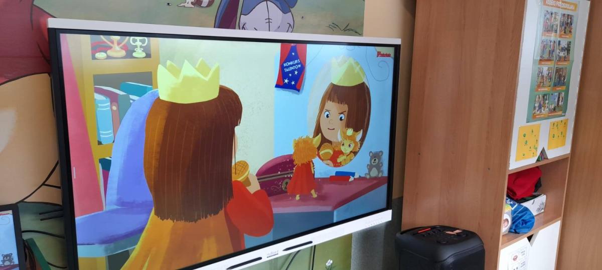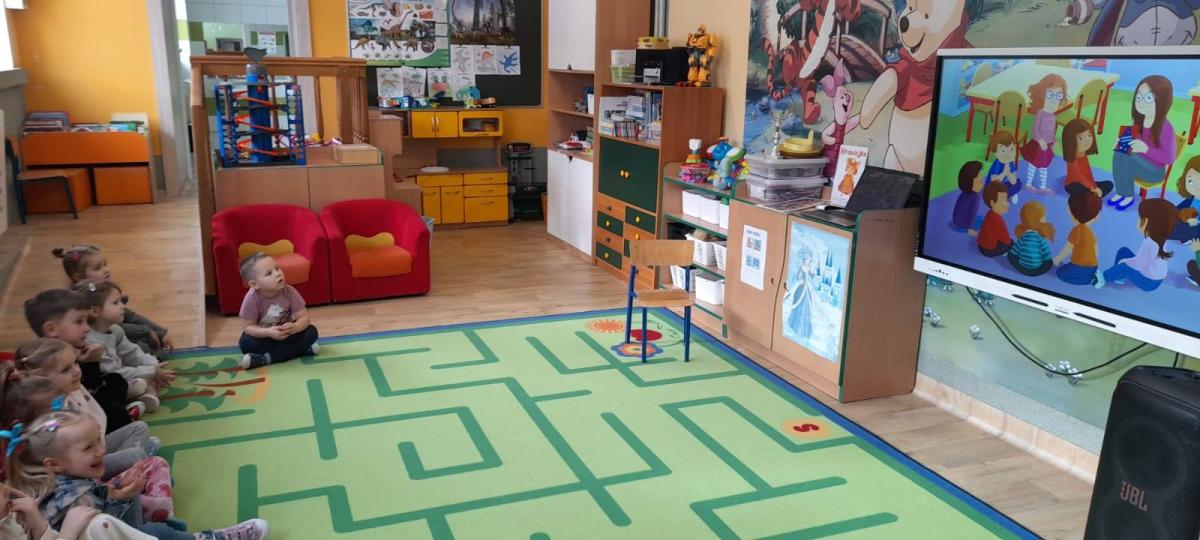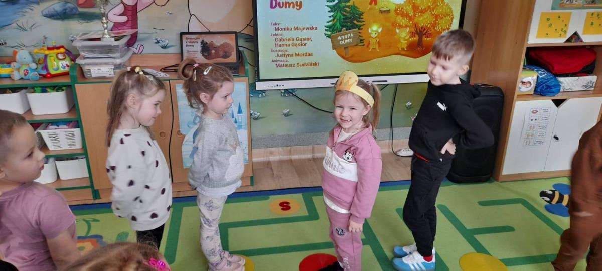Dzieci obejrzały animację do bajki, pt.,,Brawojka z Wyspy Dumy", a następnie uczestniczyły w zabawie integracyjnej - ,,Złota korona" .