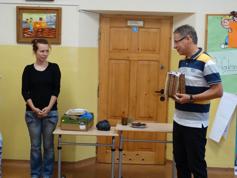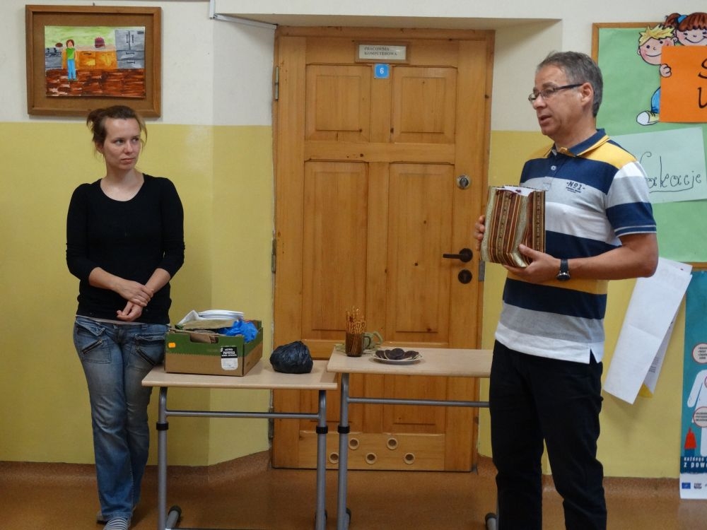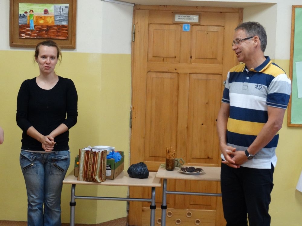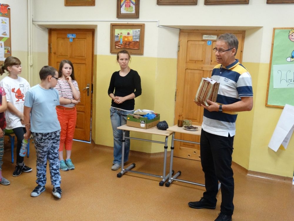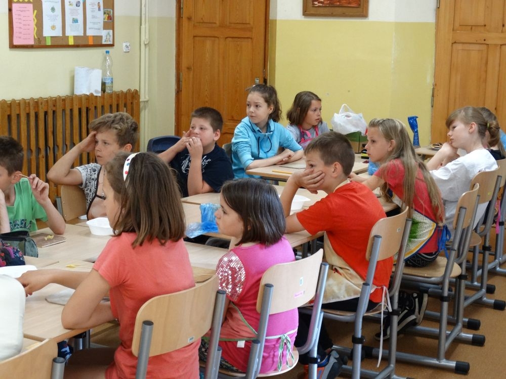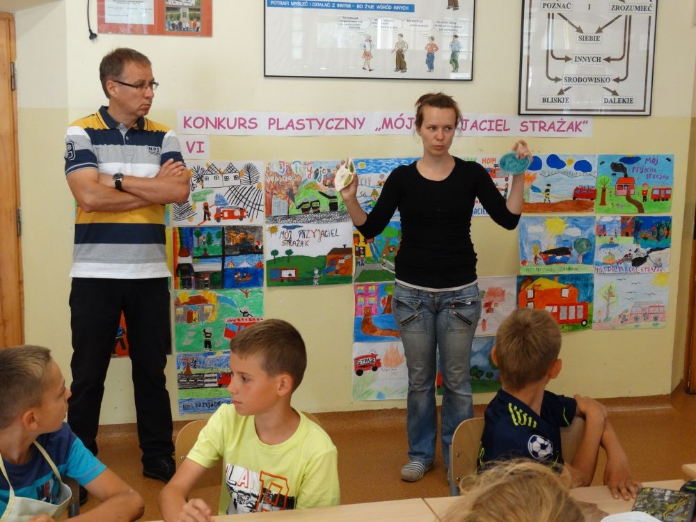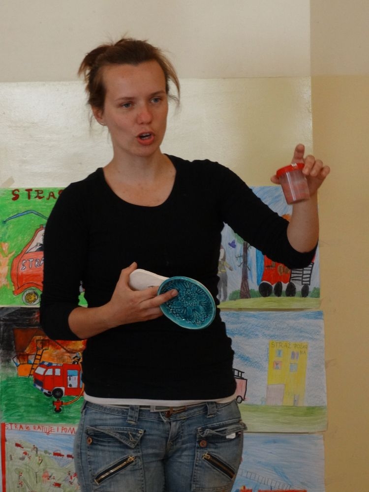 W piękny, słoneczny poranek, 21 czerwca w Szkole Podstawowej pojawił się specjalny gość. Była to pani Justyna Deryng – właścicielka pracowni ceramicznej, radna Miasta i Gminy Piwniczna – Zdrój. Nasza artystka poprowadziła dla uczniów klas IV – VI niecodzienne zajęcia lepienia z gliny. Na początku spotkania pani Justyna wyjaśniła dzieciom, jak należy obchodzić się z gliną. Później omówiła, krok po kroku, poszczególne etapy pracy a zarazem świetnej zabawy. Podczas spotkania praca wrzała. Dzieci bardzo starannie ugniatały glinę, po czym powstawały piękne gliniane arcydzieła: kubki, kubeczki, miski, miseczki… Największą atrakcją było ozdabianie prac za pomocą szyszek, makaronu i wykałaczek. Mali „rzeźbiarze” stworzyli dzieła o różnorodnych wzorach i kształtach. Efekt był cudowny! Widać było, że lepienie sprawia im wiele radości i satysfakcji z wykonywanej rzeźby. Sama zabawa gliną była dla naszych uczniów przyjemnością, a kiedy powstały ich małe dzieła, byli z siebie bardzo dumni. Mamy nadzieję, iż lepienia z gliny na stale zagoszczą w szkolnym kalendarzu i będą cyklicznym wydarzeniem w naszej szkole.