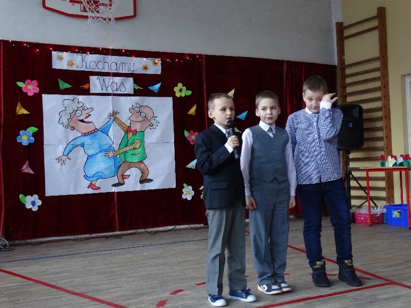 Dzień Babci i Dziadka – 23.01.2018.W tym dniu zaprosiliśmy do szkoły nasze Babcie i Dziadków by mogli zobaczyć swoje pociechy w ciekawych występach wcielając się w różne role. Były dla nich wiersze i piosenki. Ponadto składaliśmy im życzenia dając własnoręcznie wykonane laurki. Byli bardzo uradowani ,że mogli się spotkać z nami i rodziną. Dyrektor szkoły przypomniał o roli jaką spełniają babcie i dziadkowie w swoich rodzinach i ,że są niejednokrotnie niezastąpieni. Pomagają i wspierają i wychowawczo swoim doświadczeniem młodsze pokolenie.