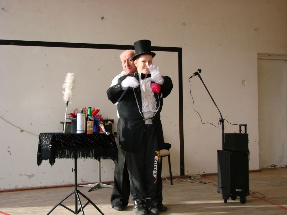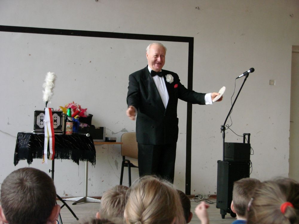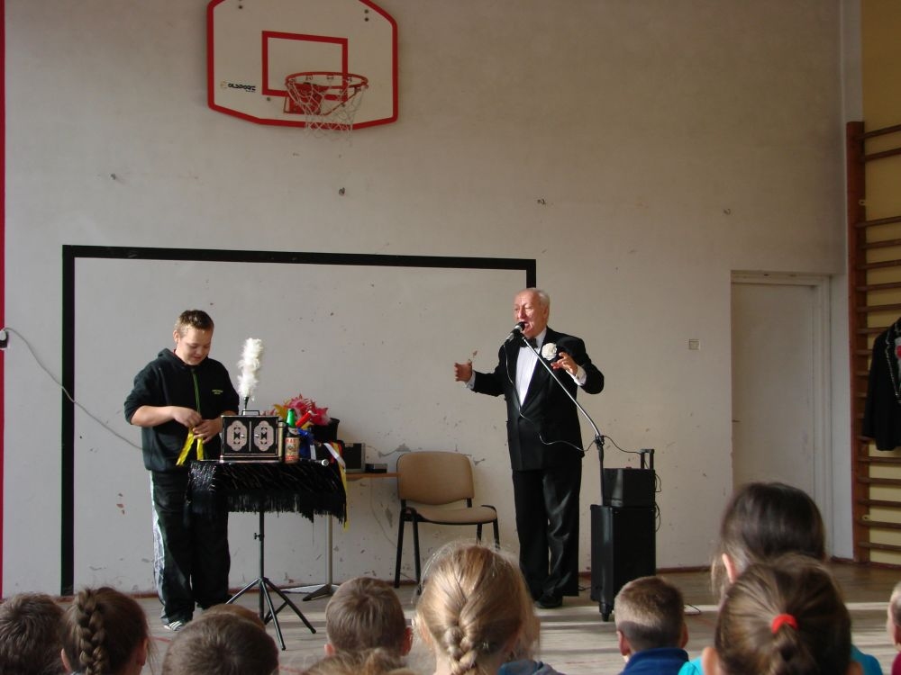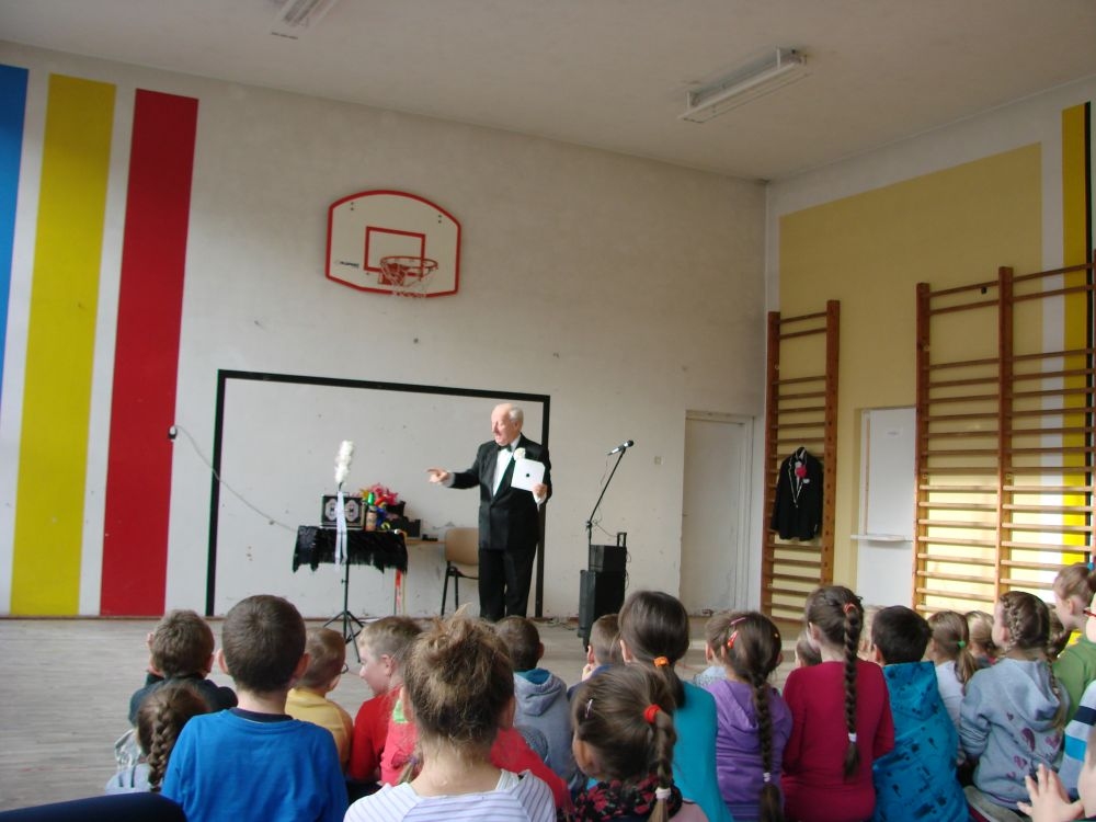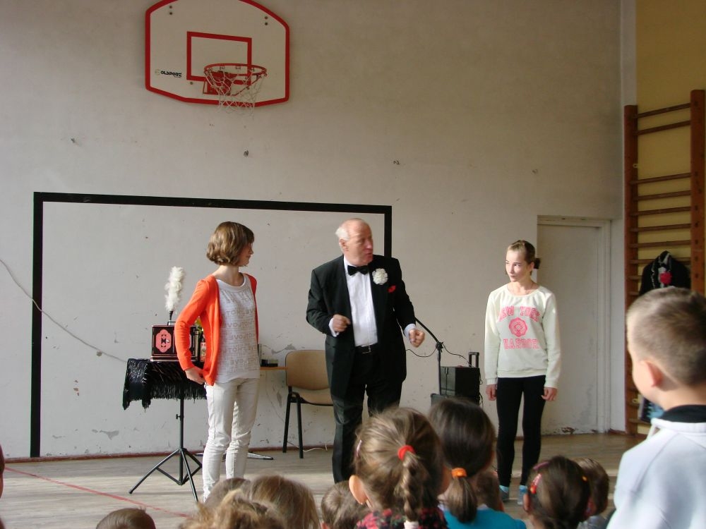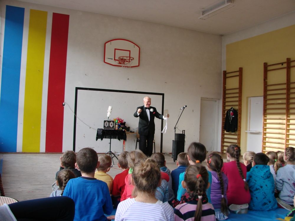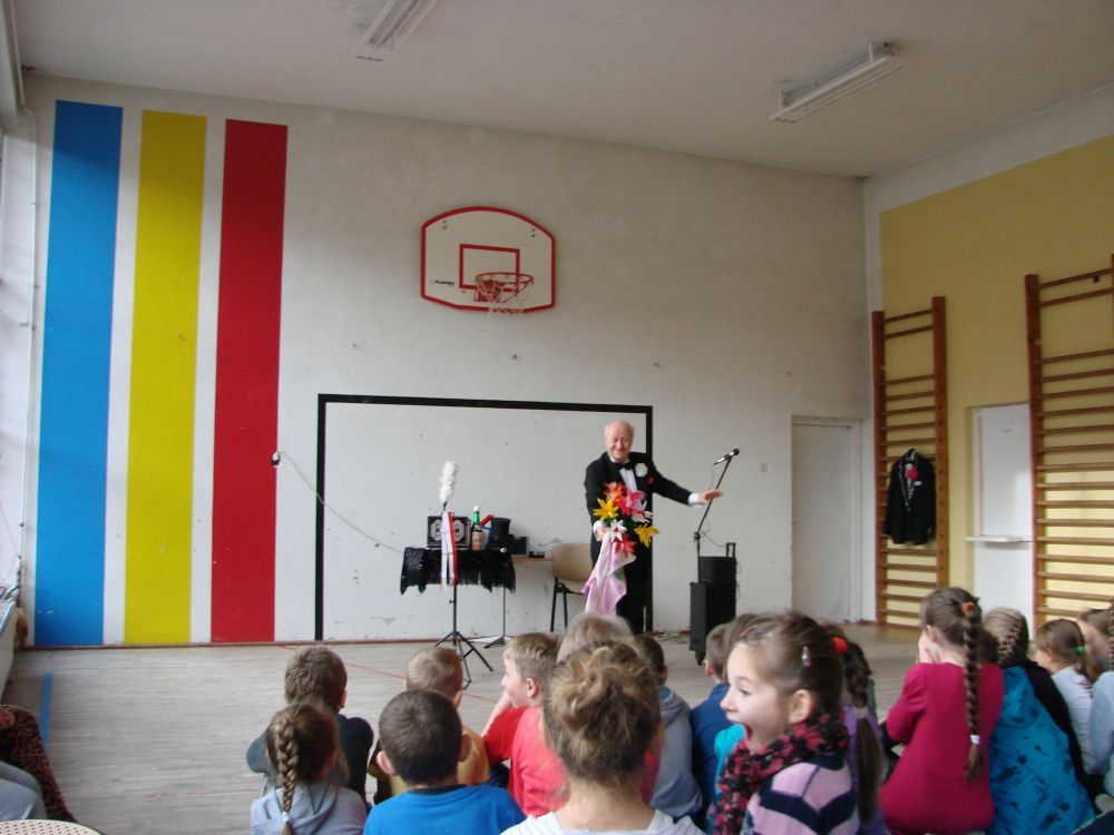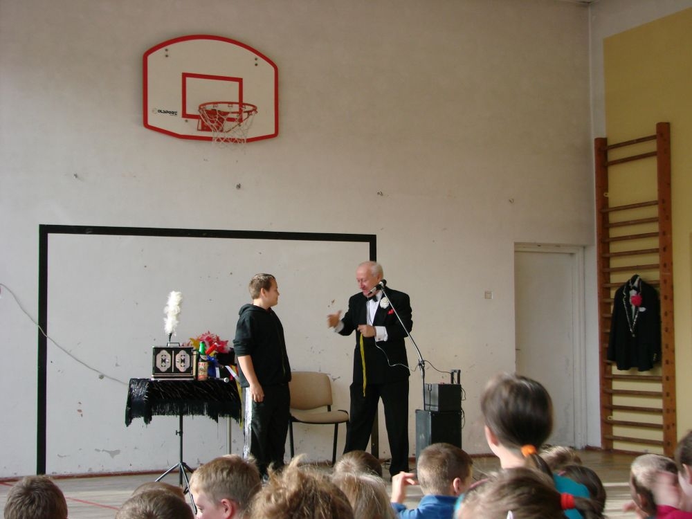 Wczesnym rankiem- 12 listopada, a więc zaraz po dłuższej przerwie listopadowej zadumy i powagi nad Świętem Niepodległości, w naszej szkole (Kosarzyska) pojawił się niespotykany gość, który zaciekawiał dzieci, uczył bawiąc i spowodował, że maluchy i starsi śmiali się niemal do łez. A oczekiwanym gościem był.....iluzjonista – artysta niemal estradowy, który w swoich zabawnych prezentacjach iluzjonistycznych wykorzystywał wiele rekwizytów codziennego użytku, w niecodzienny sposób. Naszemu „czarodziejowi” udało się zakłócić logiczne rozumowanie niektórych widzów, chociaż nie w zupełności. Podzielił się bowiem z młodymi, bacznymi obserwatorami tajemnicą wykonania wybranych sztuczek. Trzeba przyznać panu magikowi spryt, szybkość, precyzję i.... niesamowite poczucie humoru w jego występie. I co ważne- od razu „czarodziej” rozwiał obawy niektórych widzów związane z magią w sensie czarów, form wróżbiarstwa, astrologii, jasnowidztwa, posługiwanie się medium, odwoływanie się do zła, korzystania z horoskopów. Nasz gość- iluzjonista, to starszy pan, który swoimi zabawnymi sztuczkami spowodował, że dzieci spędziły miło czas i powróciły do ławek szkolnych z pomysłami na twórcze spędzanie czasu wolnego. Takie nieszkodliwe „czary- mary; hokus- pokus”, jest jak najbardziej wskazane dla lepszego samopoczucia, relaksu i pobudzenia myślenia.