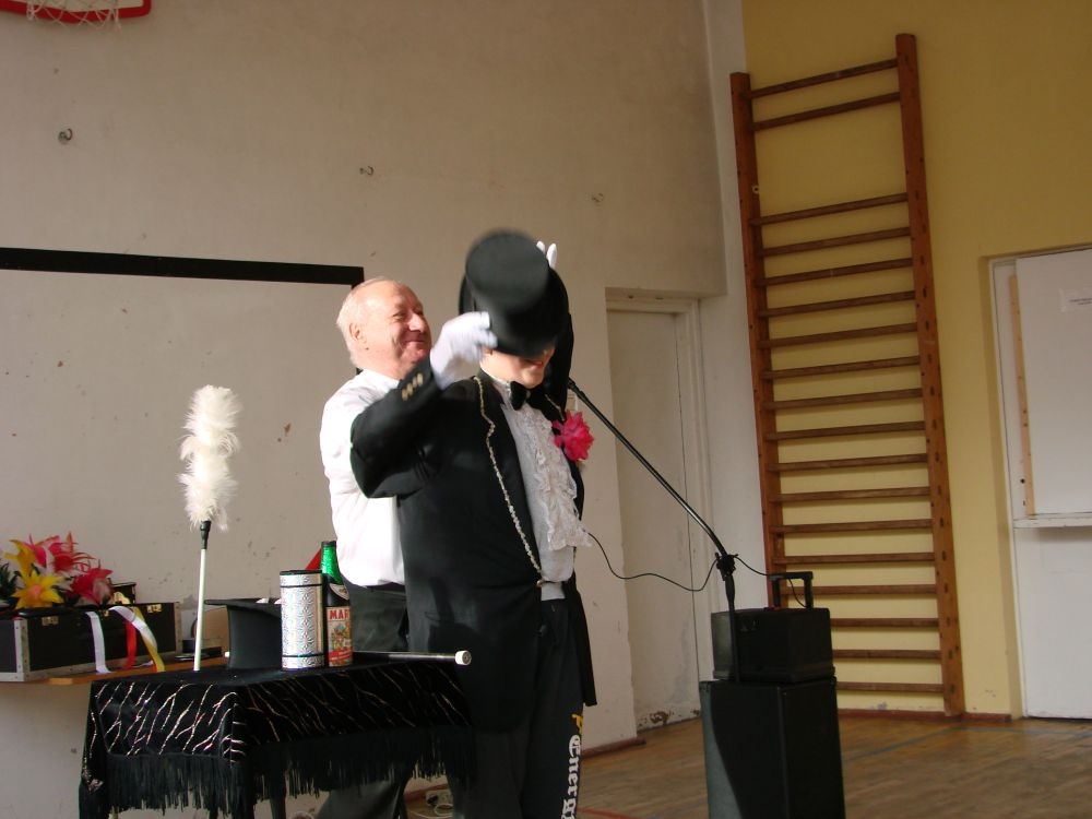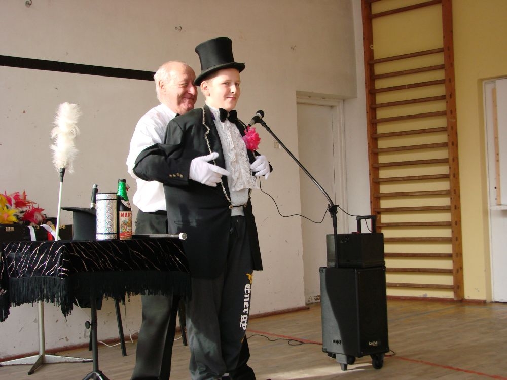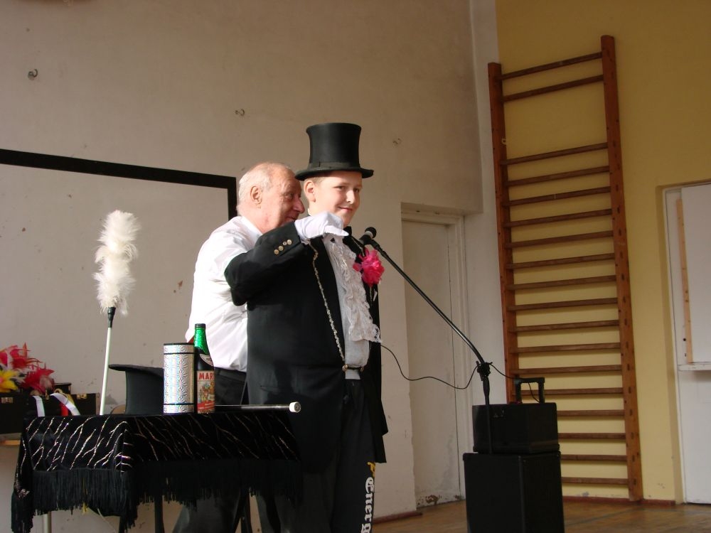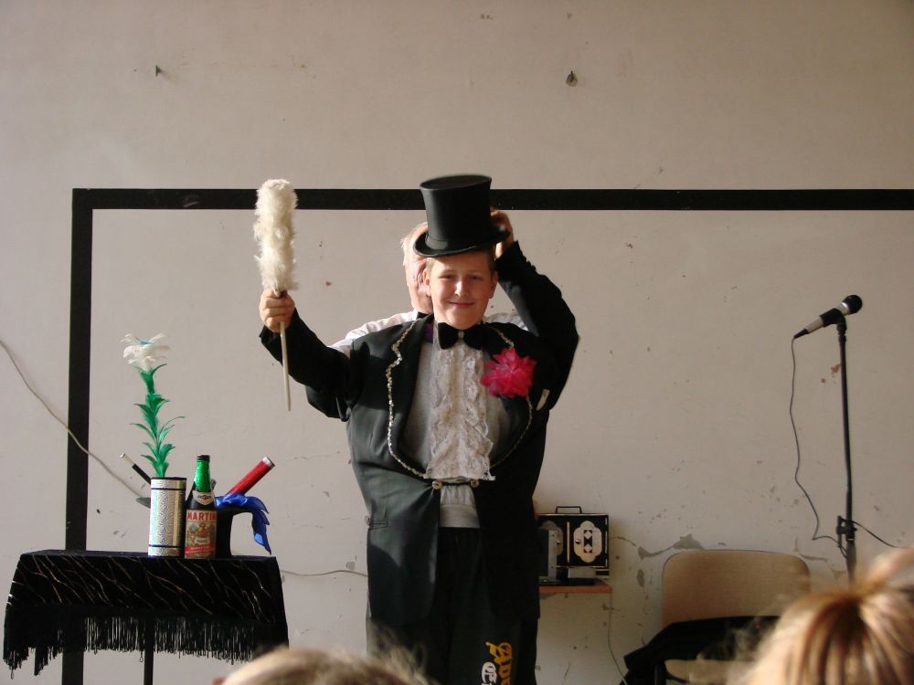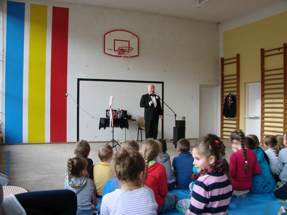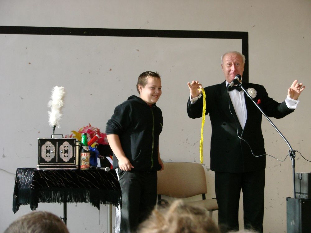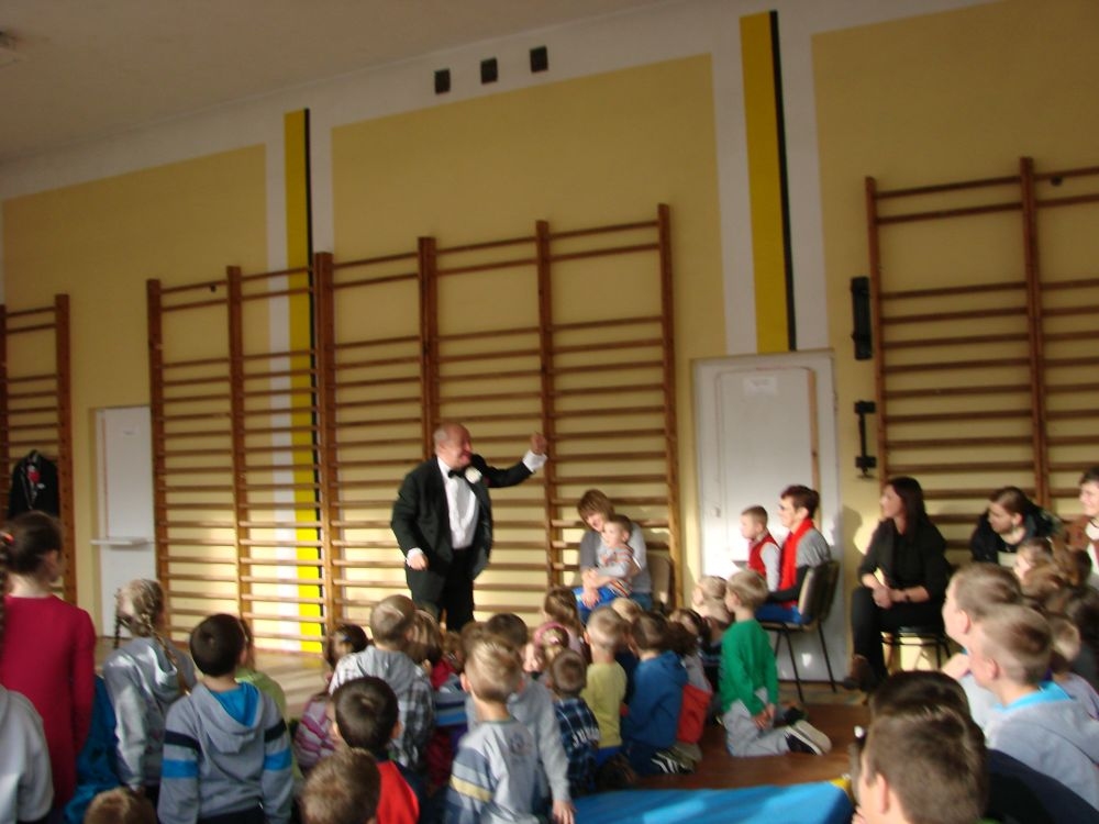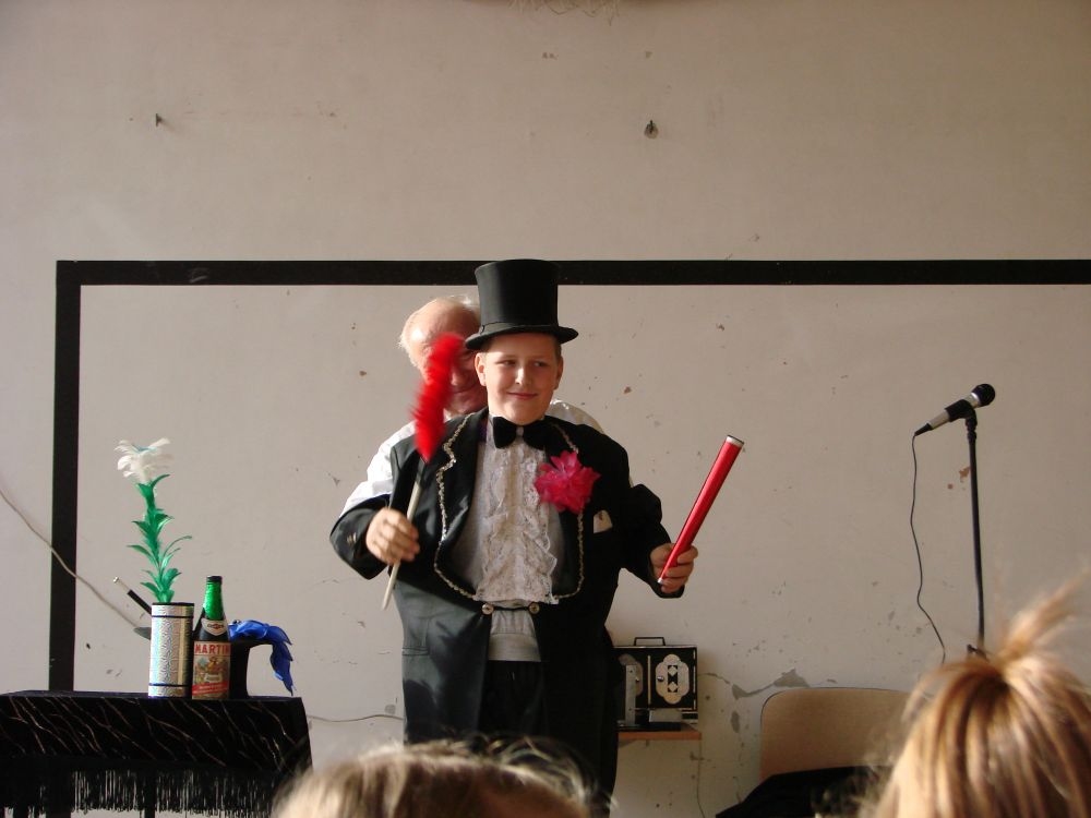 Wczesnym rankiem- 12 listopada, a więc zaraz po dłuższej przerwie listopadowej zadumy i powagi nad Świętem Niepodległości, w naszej szkole (Kosarzyska) pojawił się niespotykany gość, który zaciekawiał dzieci, uczył bawiąc i spowodował, że maluchy i starsi śmiali się niemal do łez. A oczekiwanym gościem był.....iluzjonista – artysta niemal estradowy, który w swoich zabawnych prezentacjach iluzjonistycznych wykorzystywał wiele rekwizytów codziennego użytku, w niecodzienny sposób. Naszemu „czarodziejowi” udało się zakłócić logiczne rozumowanie niektórych widzów, chociaż nie w zupełności. Podzielił się bowiem z młodymi, bacznymi obserwatorami tajemnicą wykonania wybranych sztuczek. Trzeba przyznać panu magikowi spryt, szybkość, precyzję i.... niesamowite poczucie humoru w jego występie. I co ważne- od razu „czarodziej” rozwiał obawy niektórych widzów związane z magią w sensie czarów, form wróżbiarstwa, astrologii, jasnowidztwa, posługiwanie się medium, odwoływanie się do zła, korzystania z horoskopów. Nasz gość- iluzjonista, to starszy pan, który swoimi zabawnymi sztuczkami spowodował, że dzieci spędziły miło czas i powróciły do ławek szkolnych z pomysłami na twórcze spędzanie czasu wolnego. Takie nieszkodliwe „czary- mary; hokus- pokus”, jest jak najbardziej wskazane dla lepszego samopoczucia, relaksu i pobudzenia myślenia.