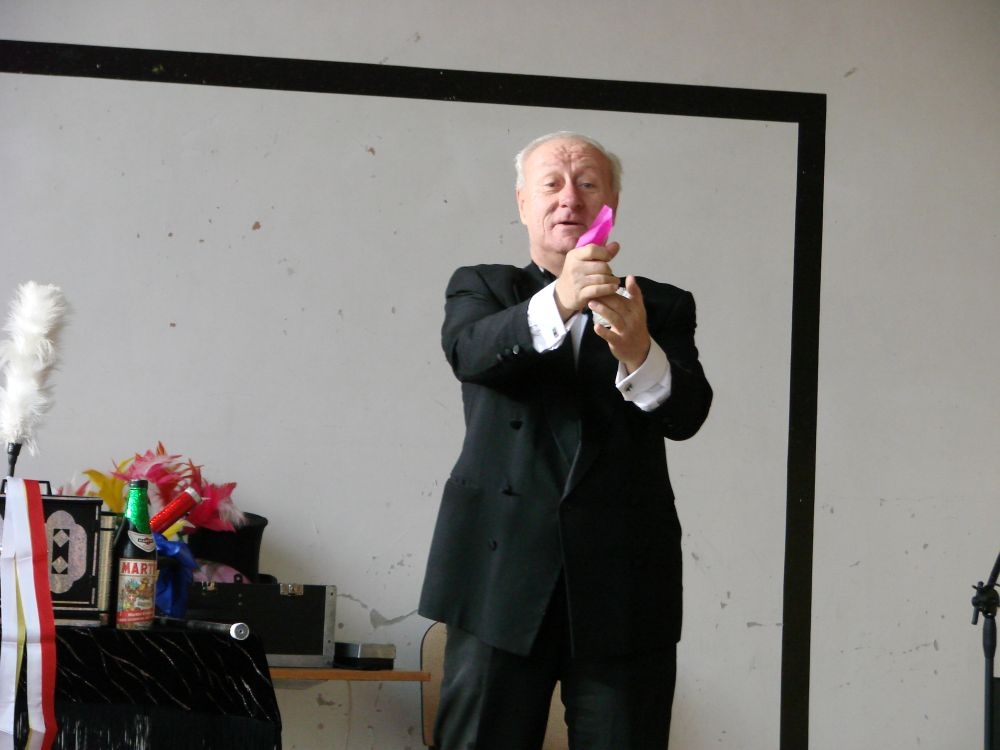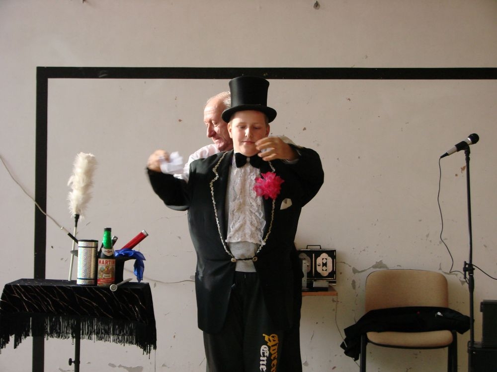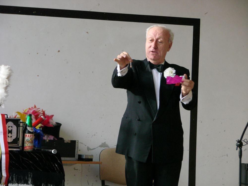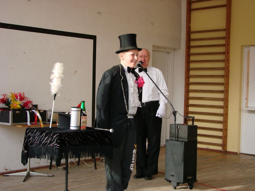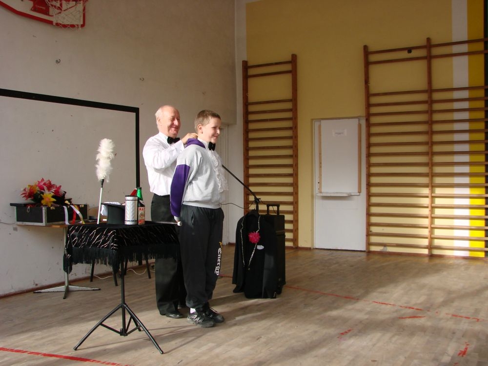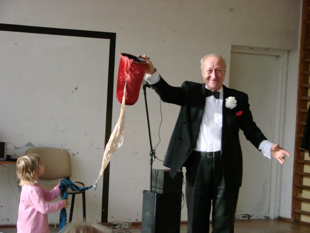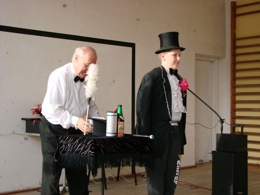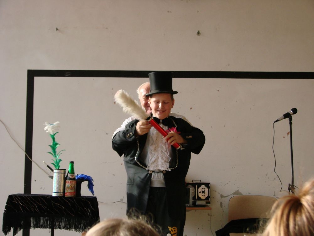 Wczesnym rankiem- 12 listopada, a więc zaraz po dłuższej przerwie listopadowej zadumy i powagi nad Świętem Niepodległości, w naszej szkole (Kosarzyska) pojawił się niespotykany gość, który zaciekawiał dzieci, uczył bawiąc i spowodował, że maluchy i starsi śmiali się niemal do łez. A oczekiwanym gościem był.....iluzjonista – artysta niemal estradowy, który w swoich zabawnych prezentacjach iluzjonistycznych wykorzystywał wiele rekwizytów codziennego użytku, w niecodzienny sposób. Naszemu „czarodziejowi” udało się zakłócić logiczne rozumowanie niektórych widzów, chociaż nie w zupełności. Podzielił się bowiem z młodymi, bacznymi obserwatorami tajemnicą wykonania wybranych sztuczek. Trzeba przyznać panu magikowi spryt, szybkość, precyzję i.... niesamowite poczucie humoru w jego występie. I co ważne- od razu „czarodziej” rozwiał obawy niektórych widzów związane z magią w sensie czarów, form wróżbiarstwa, astrologii, jasnowidztwa, posługiwanie się medium, odwoływanie się do zła, korzystania z horoskopów. Nasz gość- iluzjonista, to starszy pan, który swoimi zabawnymi sztuczkami spowodował, że dzieci spędziły miło czas i powróciły do ławek szkolnych z pomysłami na twórcze spędzanie czasu wolnego. Takie nieszkodliwe „czary- mary; hokus- pokus”, jest jak najbardziej wskazane dla lepszego samopoczucia, relaksu i pobudzenia myślenia.
