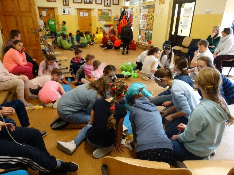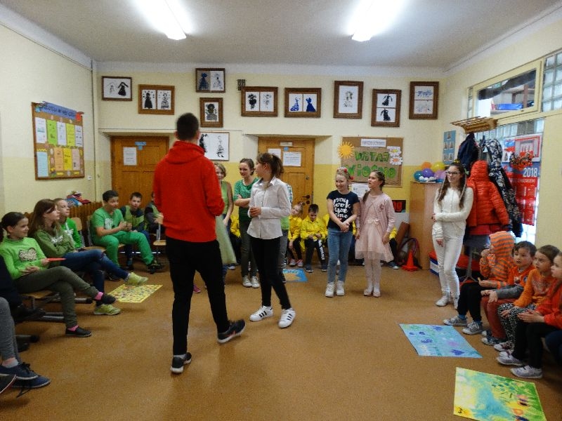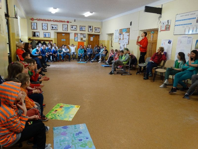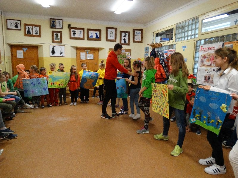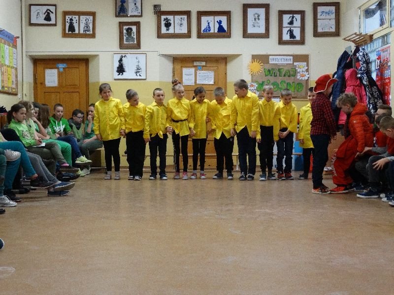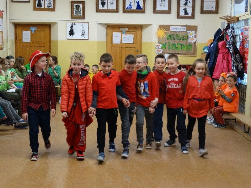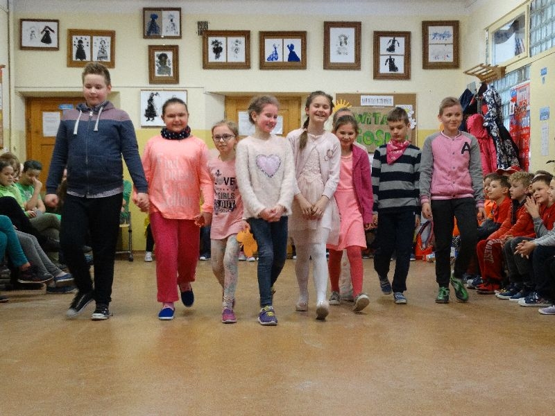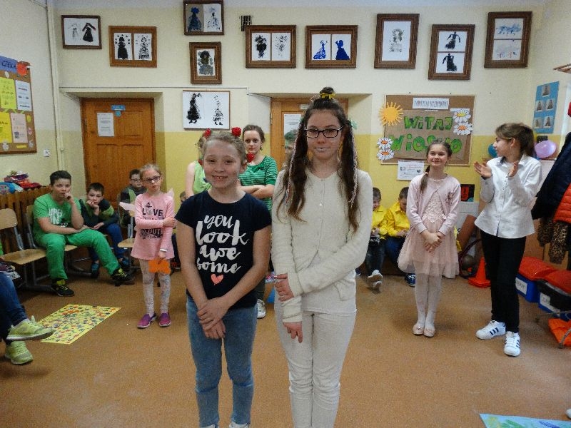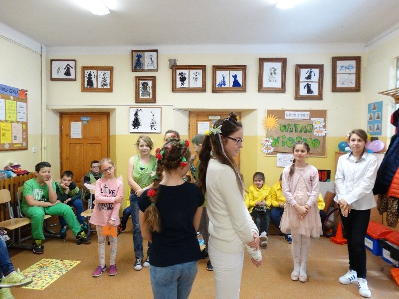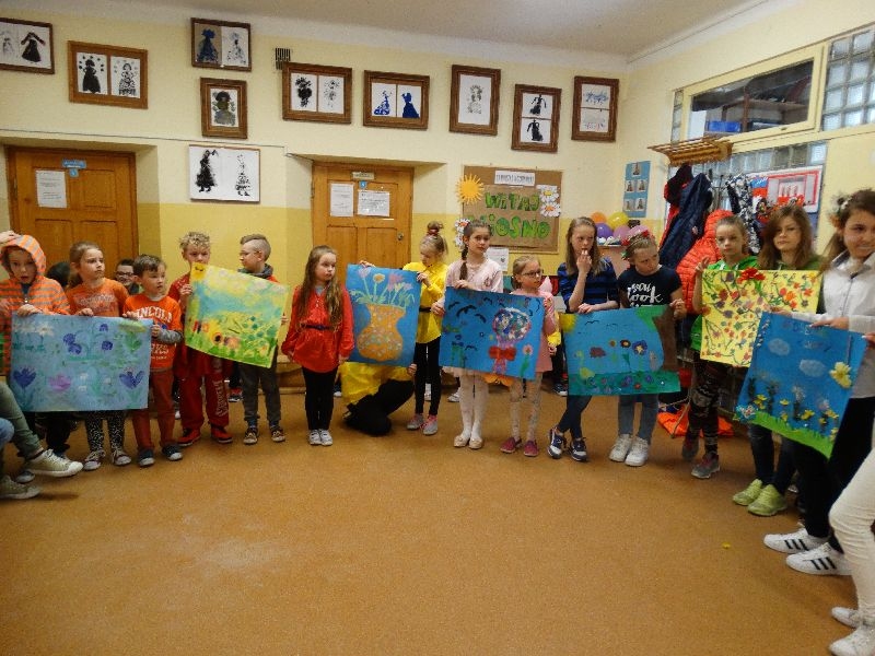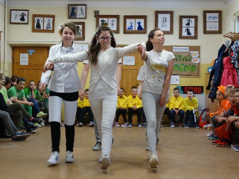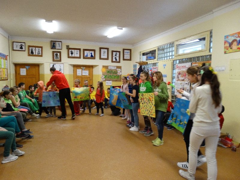 W tym dniu przywitaliśmy wiosnę w naszej szkole. Z tej okazji przez 2 godziny trwał tzw. festiwal wiosenny połączony z różnymi konkursami. Najpierw był pokaz mody wiosennej .Następnie oglądaliśmy najciekawszą fryzurę z elementami wiosny. W dalszej kolejności każda z klas malowała kwiaty wiosenne na plakacie. Chętni uczniowie ułożyli także wiersze związane z wiosną .Na koniec należało się popisać sprawnością w dmuchaniu balonika ,który miał się utrzymać jak dłużej w powietrzu. Zabawa była udana, było dużo śmiechu i radości. Scenariusz i prowadzenie było przygotowane przez opiekuna samorządu szkolnego p.Filipa Malika