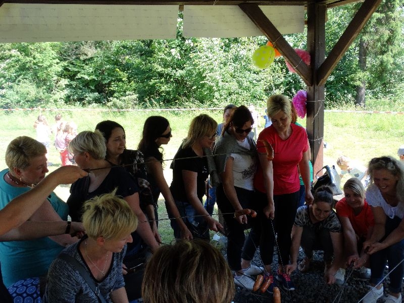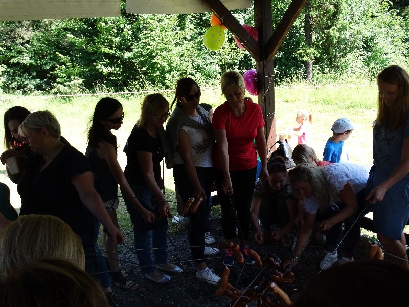 Po uroczystych występach zaprosiliśmy gości na poczęstunek. Kiełbaska własnoręcznie usmażona smakowała wyśmienicie, a promienie słoneczka ogrzały jeszcze bardziej wzruszone serca Mam, szczęśliwe ze swych pociech i doceniające ich wkład w przygotowaniu tej uroczystości.