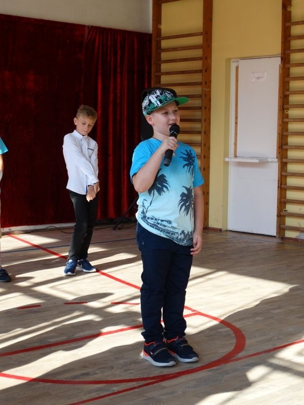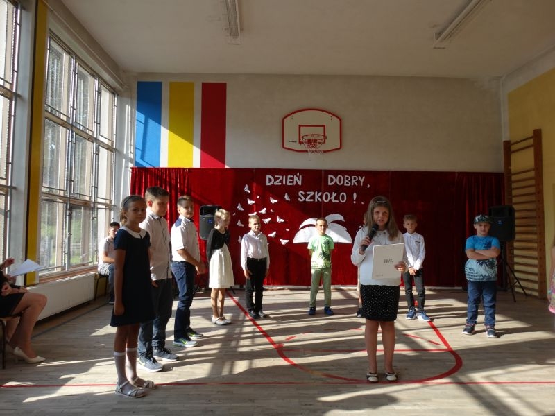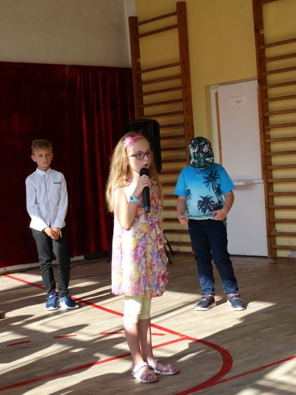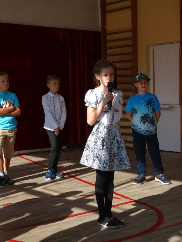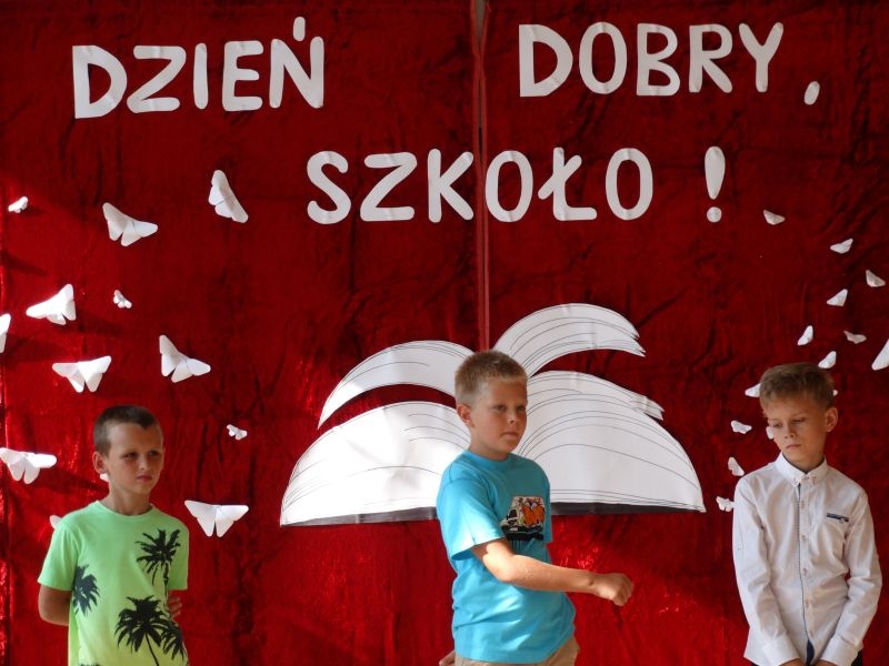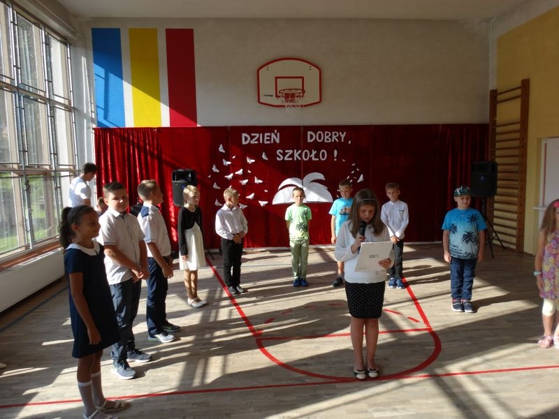 W tym dniu rozpoczęliśmy nowy rok szkolny 2018-2019.To kolejny rok reformy oświatowej w których będą pełne klasy ośmioklasowe i w czerwcu pojawią się pierwsi absolwenci tych szkół. Dyrektor szkoły przywitał wszystkich uczniów po wakacjach i życzył im jak najlepszych wyników w nauce. Skierował także słowa do nauczycieli życząc im wytrwałości i cierpliwości oraz satysfakcji z pracy zawodowej. Odnosząc się do rodziców życzył im bardzo dobrej współpracy ze szkoła i prosił by wspierali szkołę w różnych działaniach. Przypomniał też o kolejnej rocznicy wybuchu II wojny światowej i o miejscach pamięci narodowej na terenie Kosarzysk. Prosił by w tych miejscach zapalić symboliczny znicz i uczcić pamięć poległych za ojczyznę.