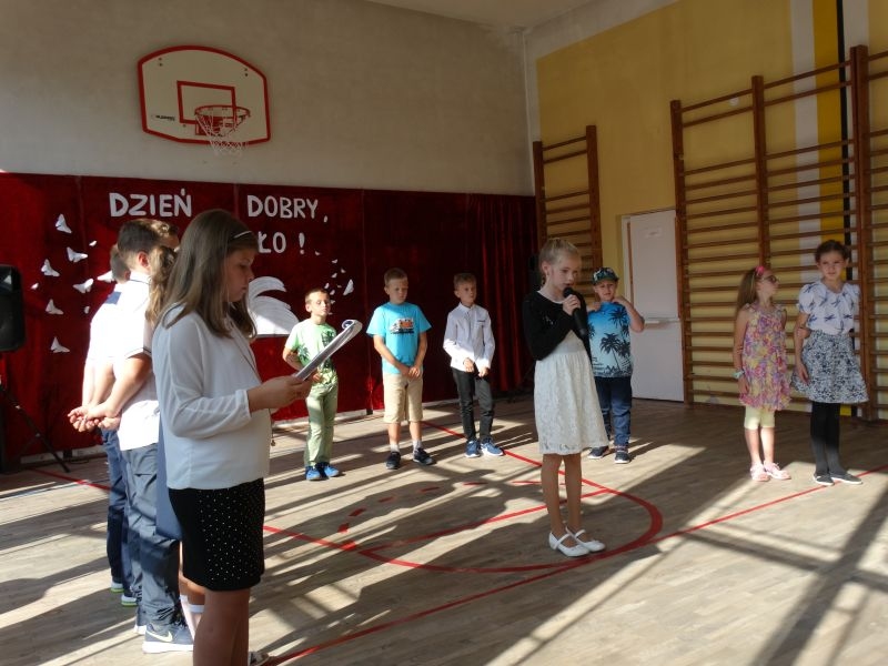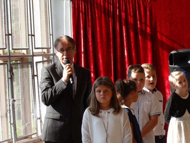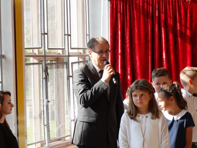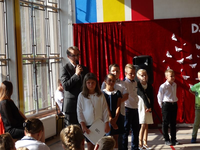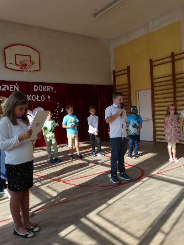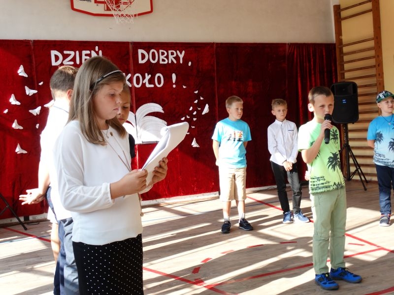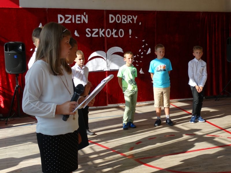 W tym dniu rozpoczęliśmy nowy rok szkolny 2018-2019.To kolejny rok reformy oświatowej w których będą pełne klasy ośmioklasowe i w czerwcu pojawią się pierwsi absolwenci tych szkół. Dyrektor szkoły przywitał wszystkich uczniów po wakacjach i życzył im jak najlepszych wyników w nauce. Skierował także słowa do nauczycieli życząc im wytrwałości i cierpliwości oraz satysfakcji z pracy zawodowej. Odnosząc się do rodziców życzył im bardzo dobrej współpracy ze szkoła i prosił by wspierali szkołę w różnych działaniach. Przypomniał też o kolejnej rocznicy wybuchu II wojny światowej i o miejscach pamięci narodowej na terenie Kosarzysk. Prosił by w tych miejscach zapalić symboliczny znicz i uczcić pamięć poległych za ojczyznę.