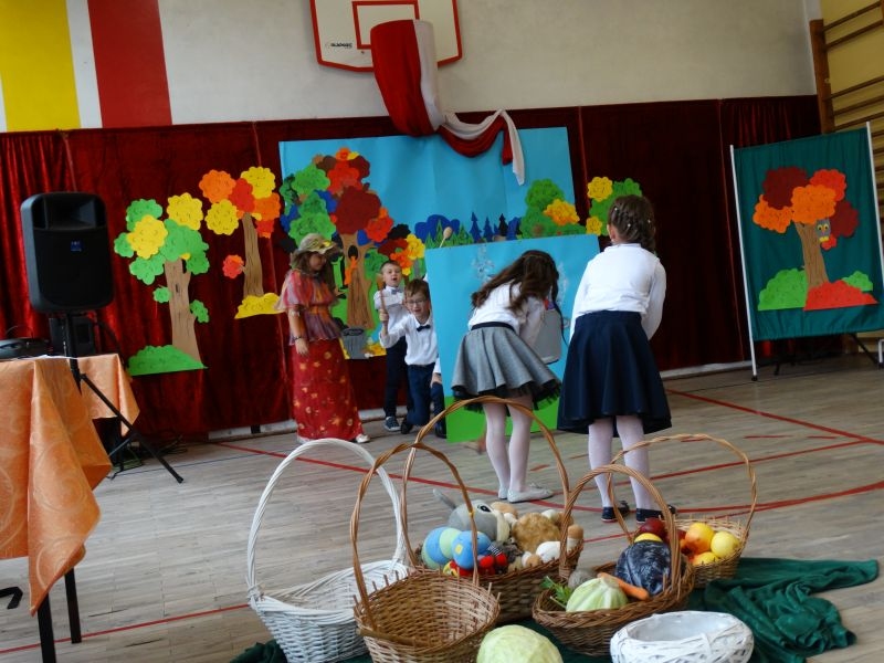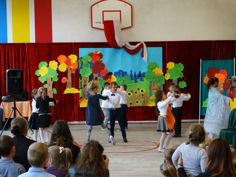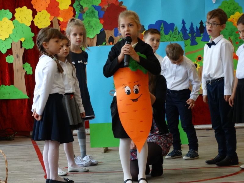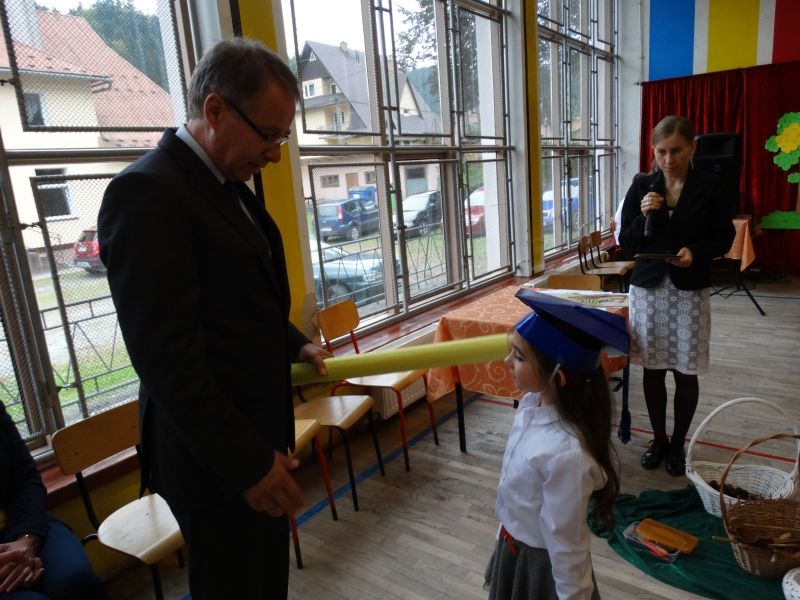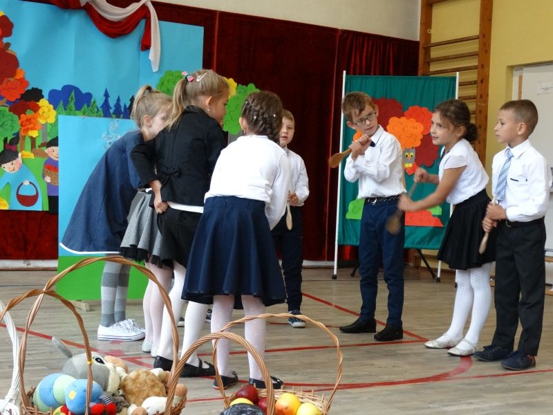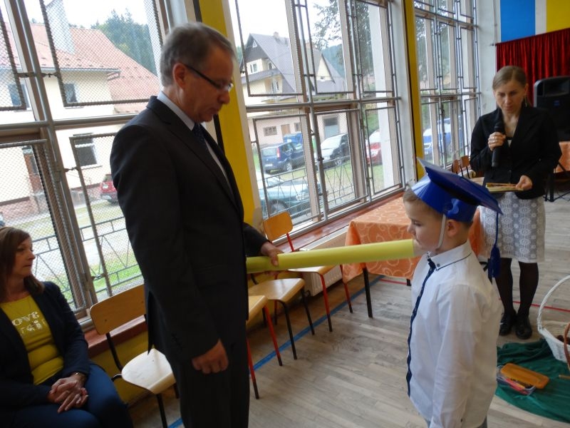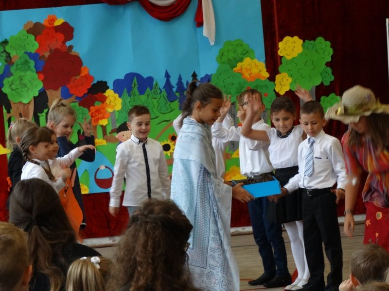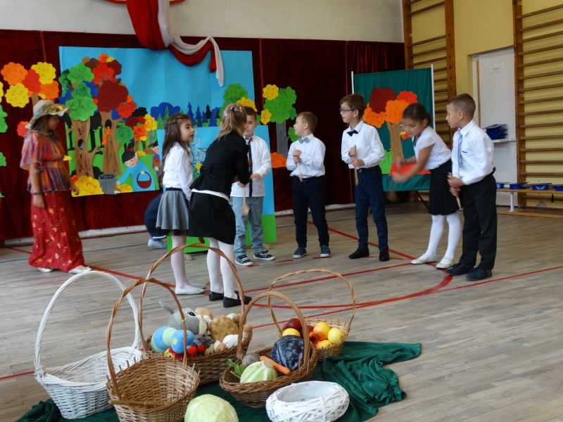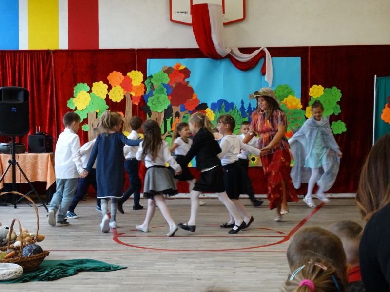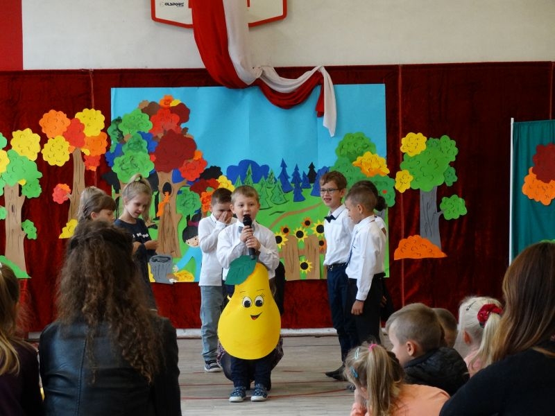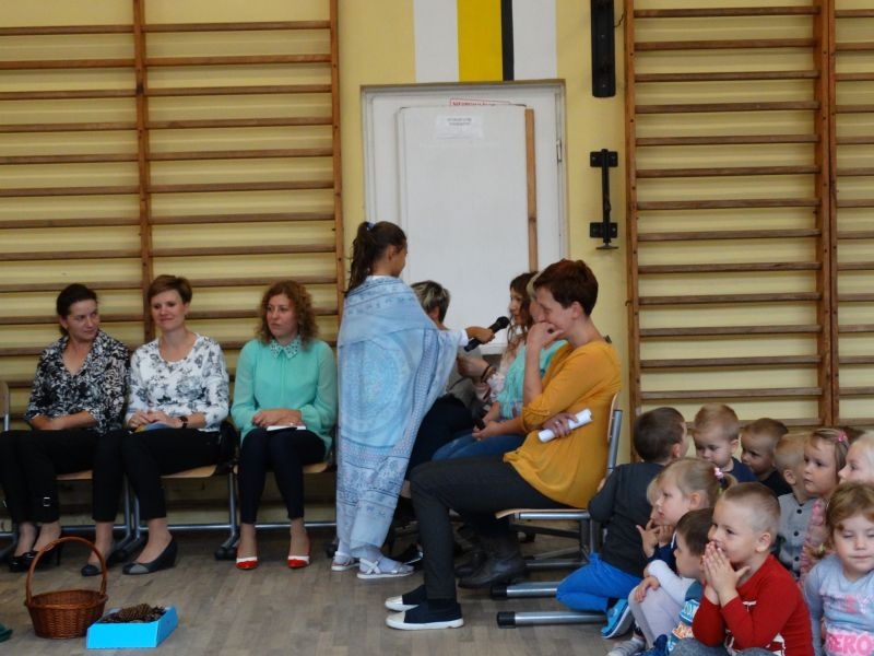 W dniu 27 września odbyła się w naszej szkole uroczystość Ślubowania klasy I. Do grona „nowych uczniów” dołączyło 5 dziewczynek i 4 chłopców. Uczniowie pokazali się od jak najlepszej strony. Przedstawiając zalety Jesieni, którą zaprosili na swoją uroczystość opowiedzieli o zdrowym stylu życia, witaminach ukrytych w owocach i warzywach. W przedstawieniu wziął udział również Wiatr, który poprowadził dzieci przez leśne tajemnice zwierząt gromadzących zapasy na zimę. Dzieci przeliczały dary jesieni, recytowały wiersze, tańczyły polkę, walczyka, krakowiaka, oberka…. śpiewając przy tym głośno i donośnie. Przeżywający zmagania swoich pociech Rodzice także w pewnym momencie dołączyli się do przedstawienia wykonując zadania przygotowane przez dzieci, jak również zadając zagadki każdemu z pierwszoklasistów. Po przedstawieniu, Pan Dyrektor - Marian Dobosz , pasował każdego z osobna na Ucznia naszej szkoły. Posłużył się w tej czynności ogromnym ołówkiem, który zostanie w pamięci każdego przywołanego do „katedry Przywódcy” szkoły. Dzieci z dumą wypowiedziały słowa ślubowania…. Na koniec otrzymały mnóstwo niespodzianek od swoich młodszych i starszych kolegów i koleżanek. Gościły się także podczas uroczystości w klasie.