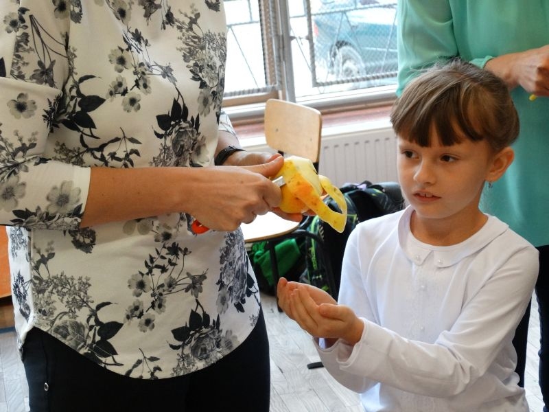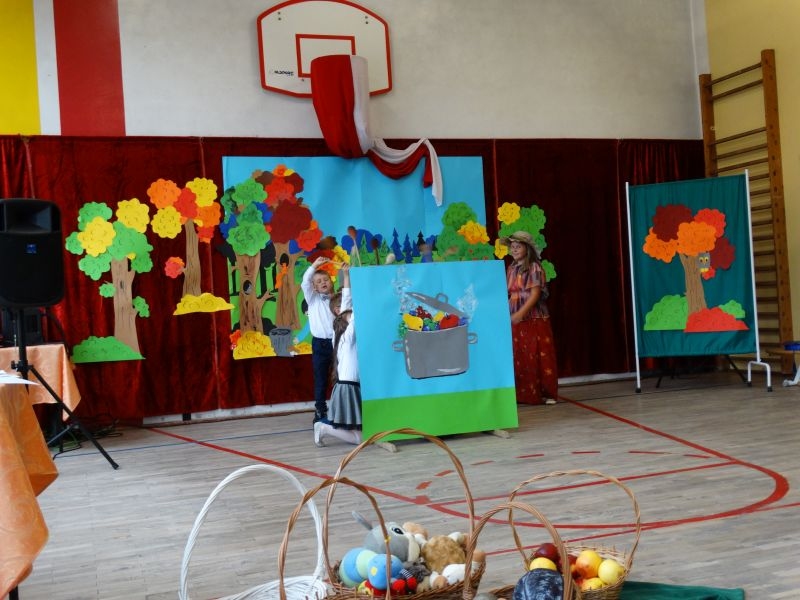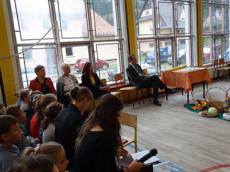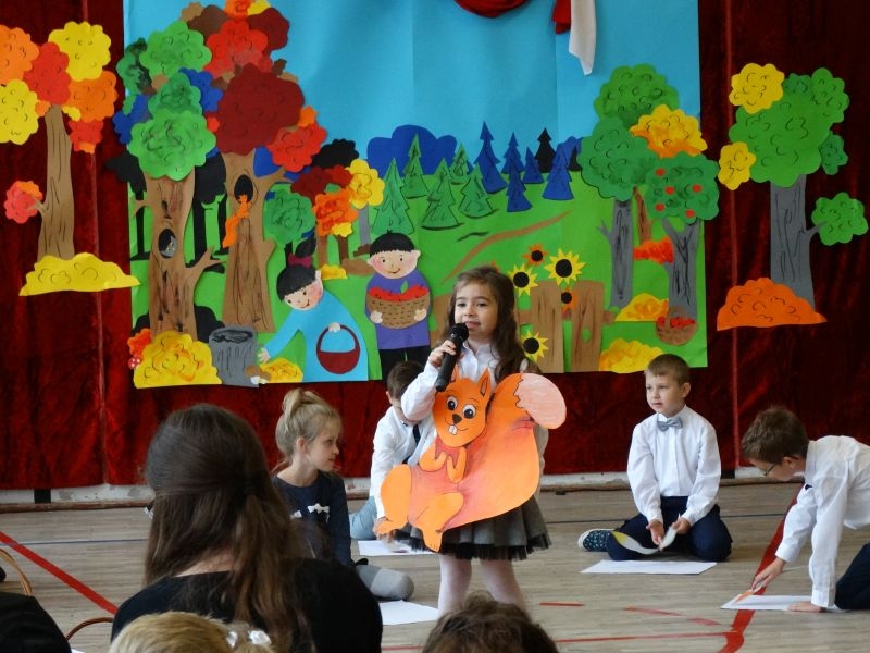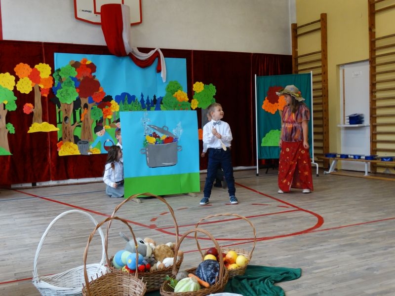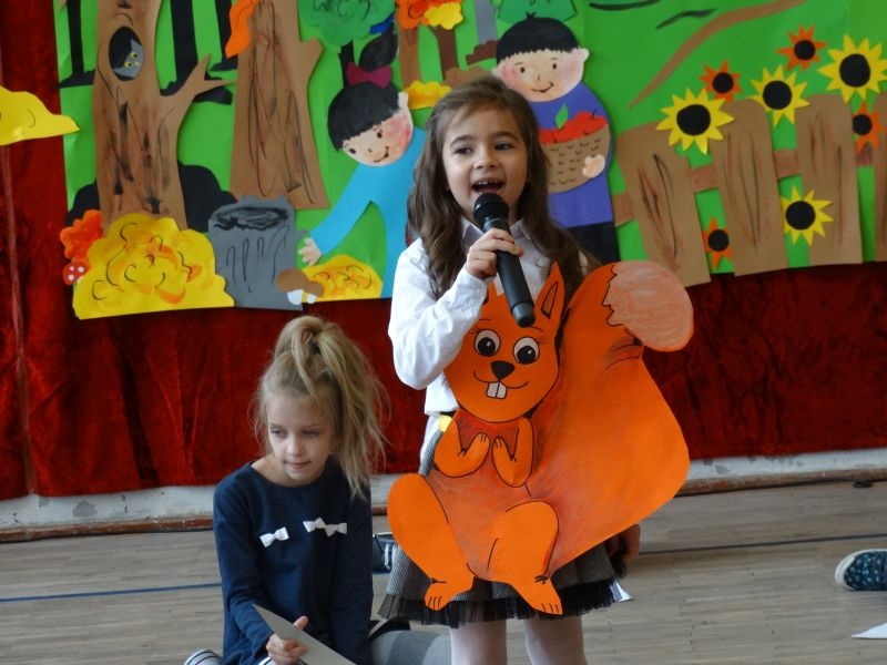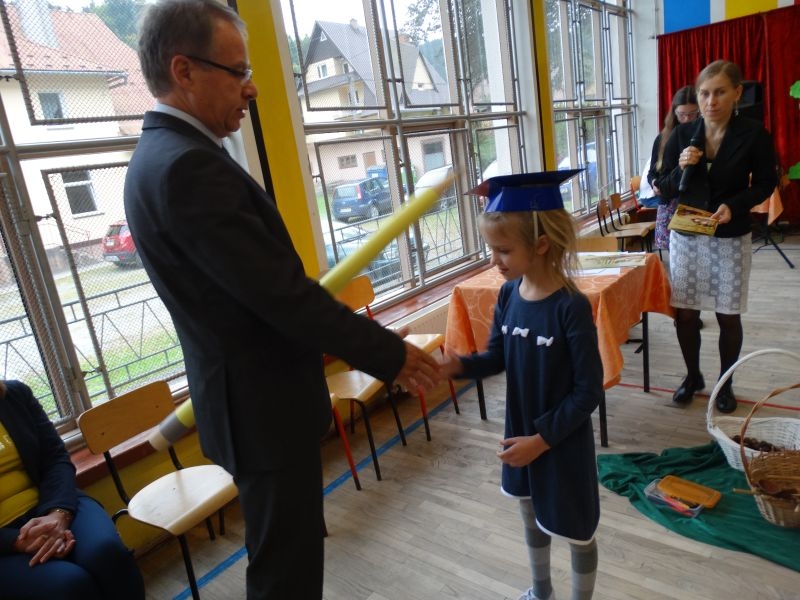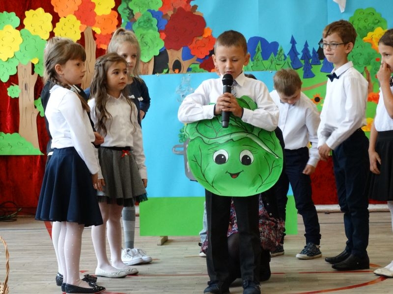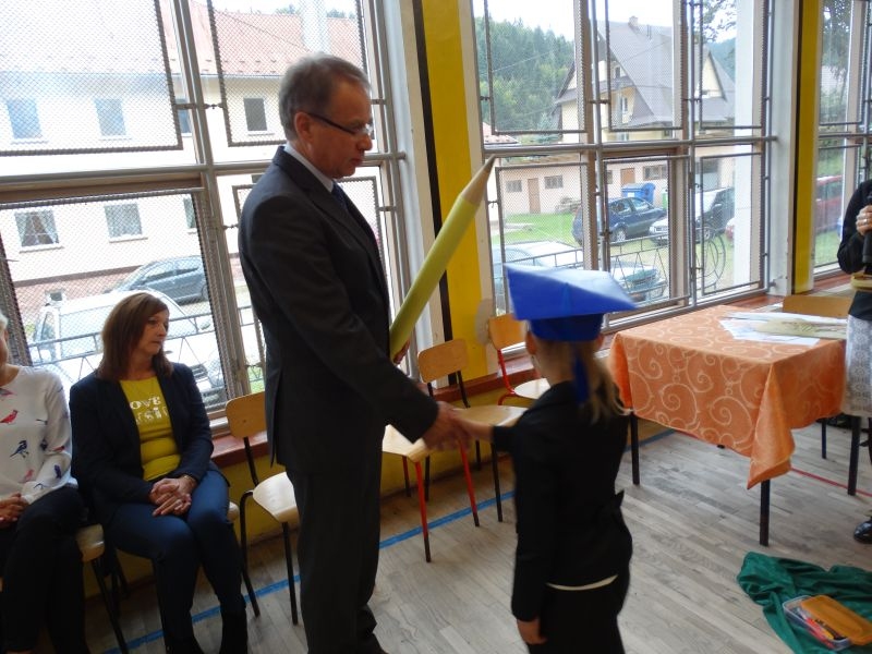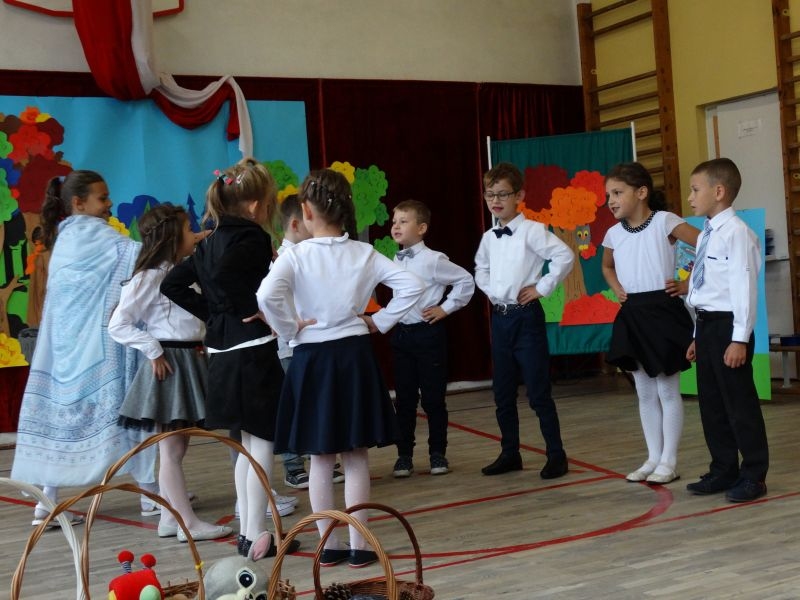 W dniu 27 września odbyła się w naszej szkole uroczystość Ślubowania klasy I. Do grona „nowych uczniów” dołączyło 5 dziewczynek i 4 chłopców. Uczniowie pokazali się od jak najlepszej strony. Przedstawiając zalety Jesieni, którą zaprosili na swoją uroczystość opowiedzieli o zdrowym stylu życia, witaminach ukrytych w owocach i warzywach. W przedstawieniu wziął udział również Wiatr, który poprowadził dzieci przez leśne tajemnice zwierząt gromadzących zapasy na zimę. Dzieci przeliczały dary jesieni, recytowały wiersze, tańczyły polkę, walczyka, krakowiaka, oberka…. śpiewając przy tym głośno i donośnie. Przeżywający zmagania swoich pociech Rodzice także w pewnym momencie dołączyli się do przedstawienia wykonując zadania przygotowane przez dzieci, jak również zadając zagadki każdemu z pierwszoklasistów. Po przedstawieniu, Pan Dyrektor - Marian Dobosz , pasował każdego z osobna na Ucznia naszej szkoły. Posłużył się w tej czynności ogromnym ołówkiem, który zostanie w pamięci każdego przywołanego do „katedry Przywódcy” szkoły. Dzieci z dumą wypowiedziały słowa ślubowania…. Na koniec otrzymały mnóstwo niespodzianek od swoich młodszych i starszych kolegów i koleżanek. Gościły się także podczas uroczystości w klasie.
