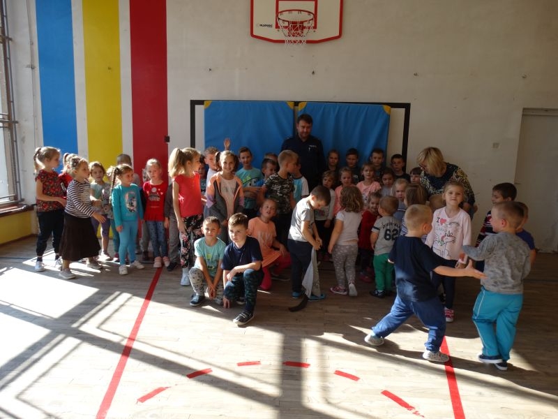 W spotkaniu uczestniczyły dzieci i nauczyciele z punktu przedszkolnego, oddziału przedszkolnego oraz klas I – III. Do tej wizyty dzieci przygotowywały się na zajęciach, podczas których poznawały niektóre znaki drogowe oraz zasady bezpiecznego poruszania się po drodze.