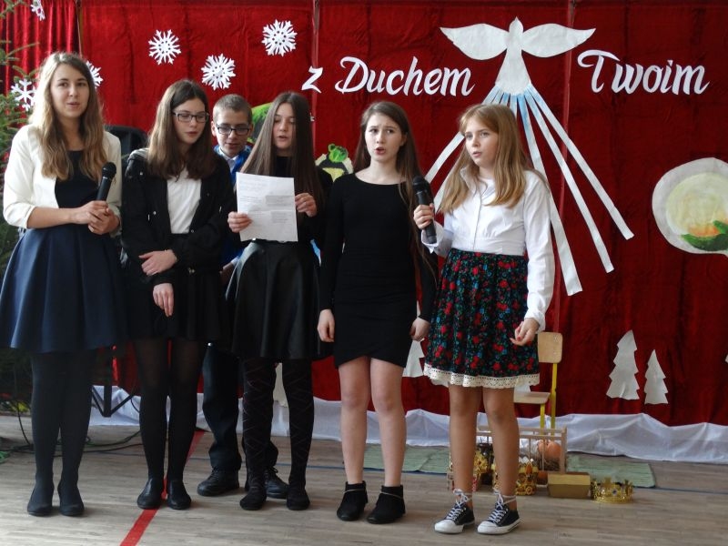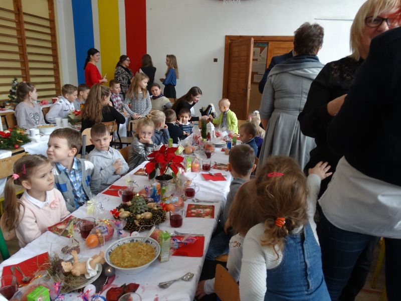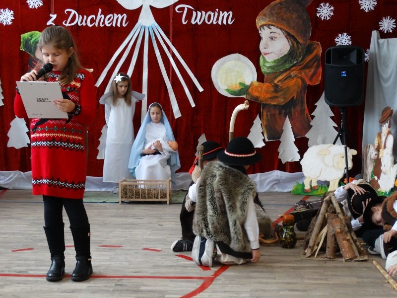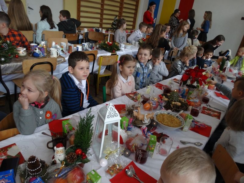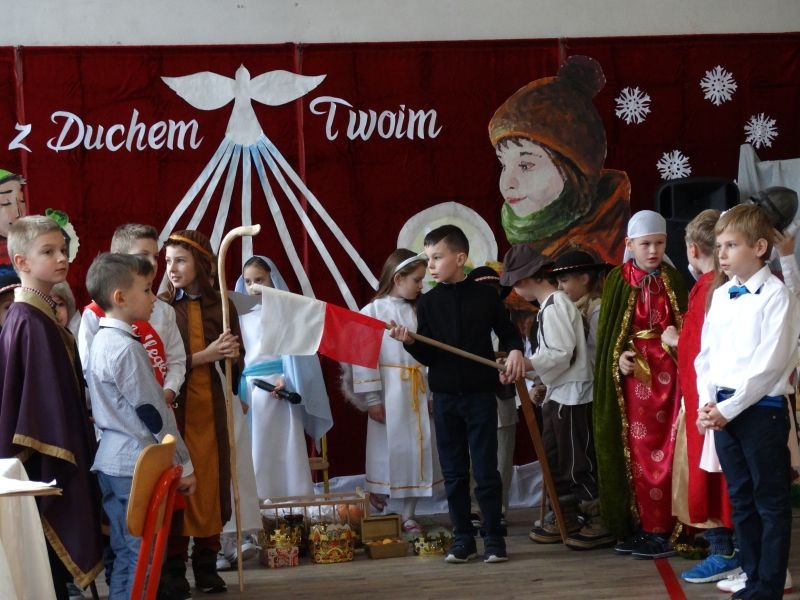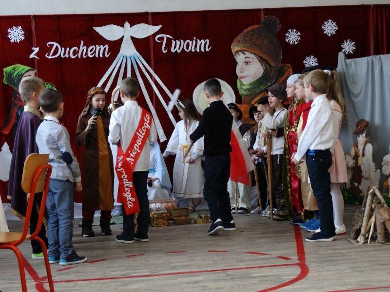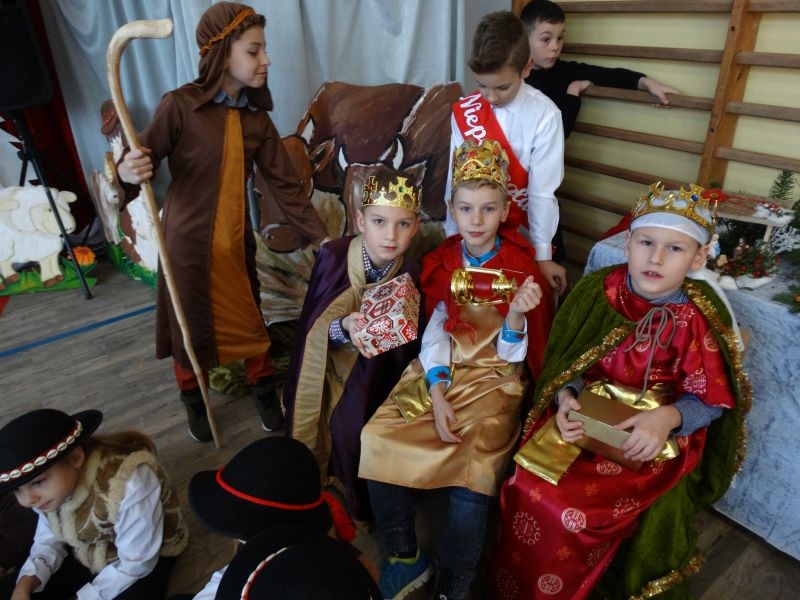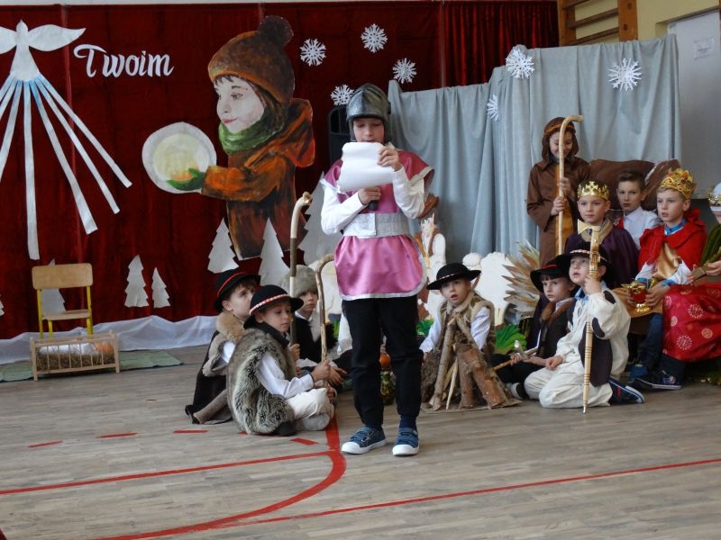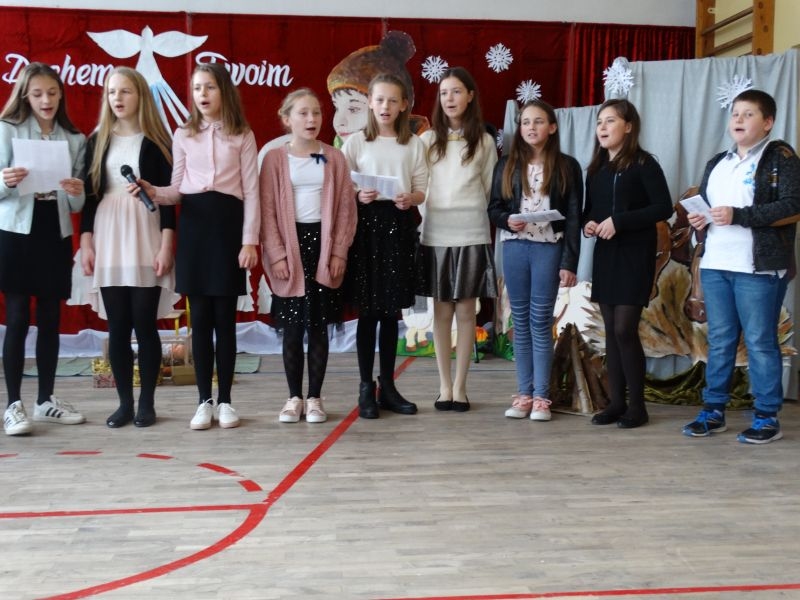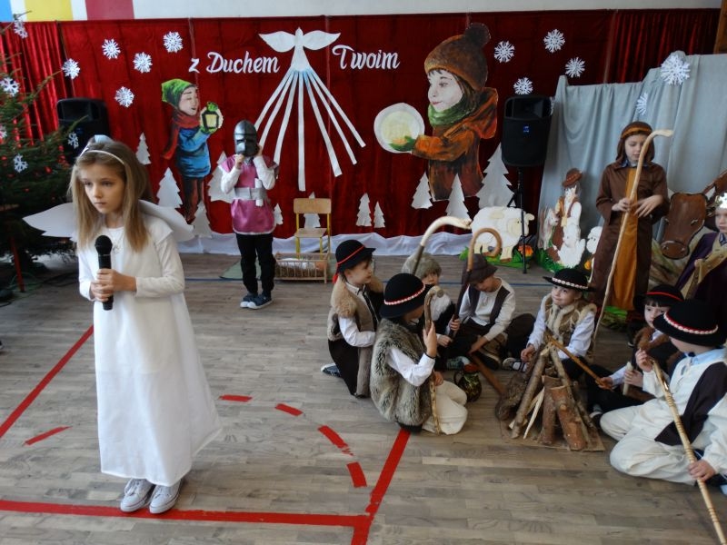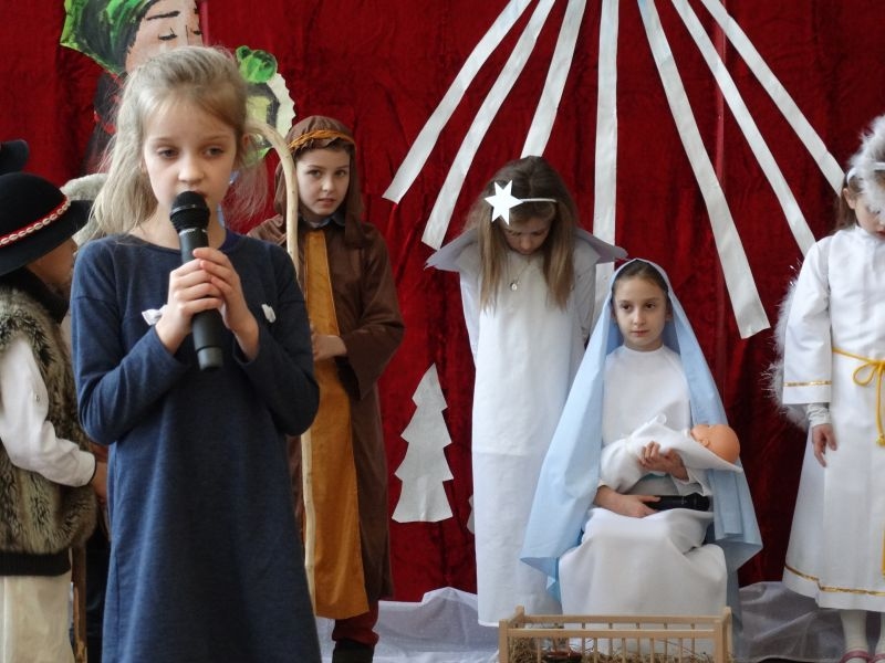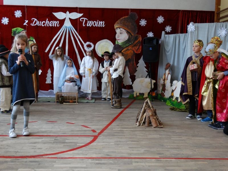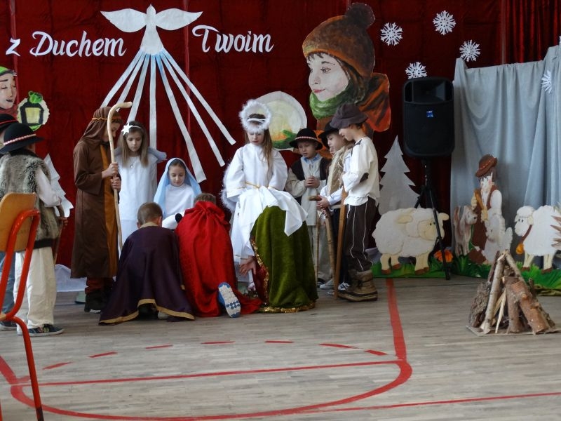 W dniu 21.12.2018 r. w naszej szkole odbyły się tradycyjne Jasełka ,które obrazowały nadejście nowonarodzonego Jezusa Chrystusa. Przedstawiła je młodsza grupa uczniów, która została przygotowana przy współpracy nauczycieli z klas młodszych. Koordynowała to wszystko siostra Agnieszka. Następnie połamano się tradycyjnym opłatkiem składając sobie wzajemnie życzenia świąteczno – noworoczne. W dalszej kolejności odbyła się chyba największa wigilia szkolna w MiG Piwniczna Zdrój bo zasiadło do stołu około 150 uczestników. Zaprezentowano świąteczne stroiki konkursowe i nagrodzono najlepsze.Na koniec każda z klas zaśpiewała po jednej wybranej kolędzie.