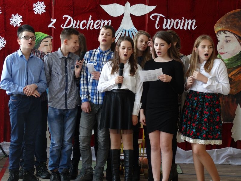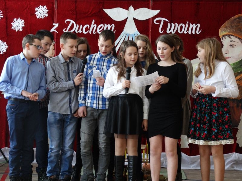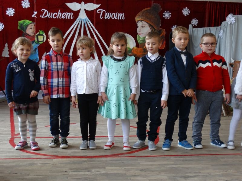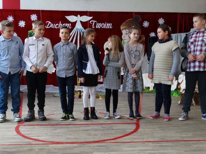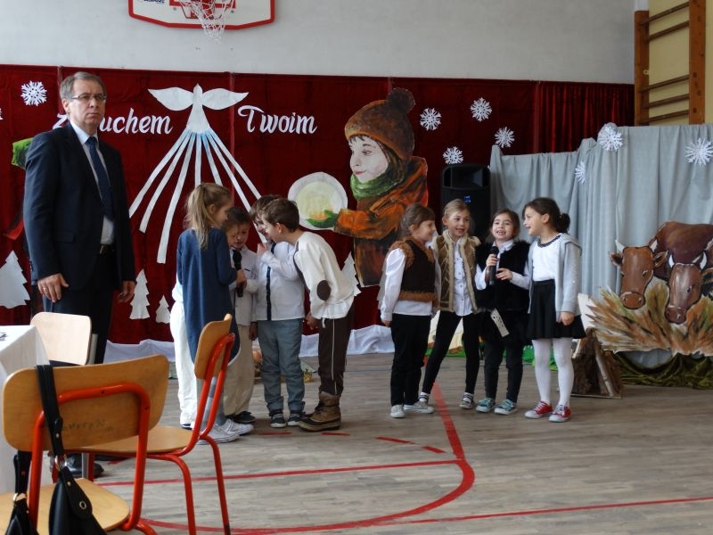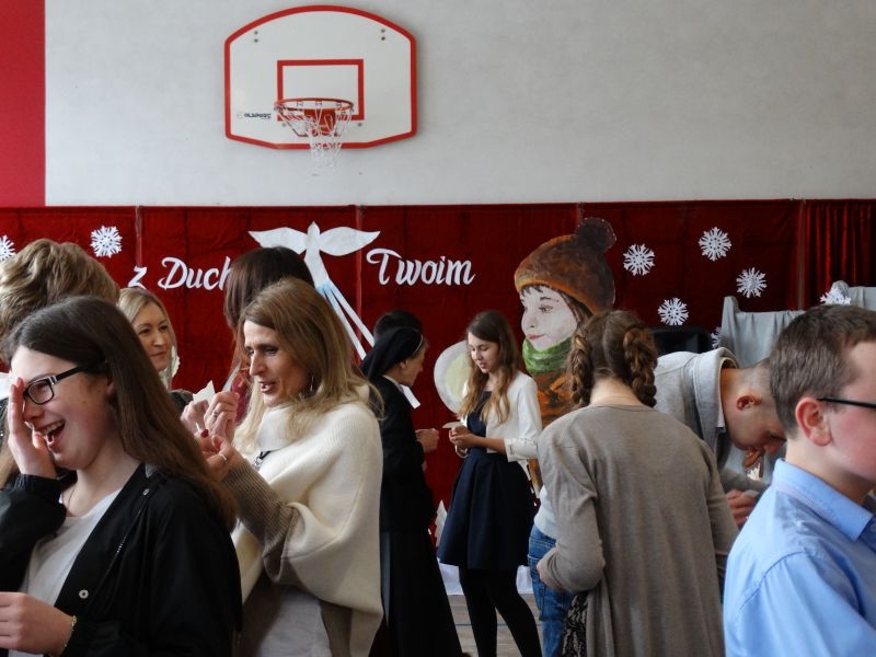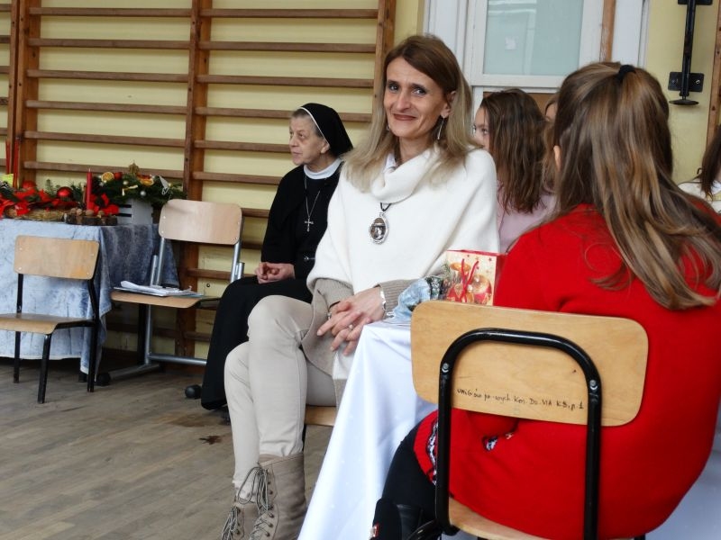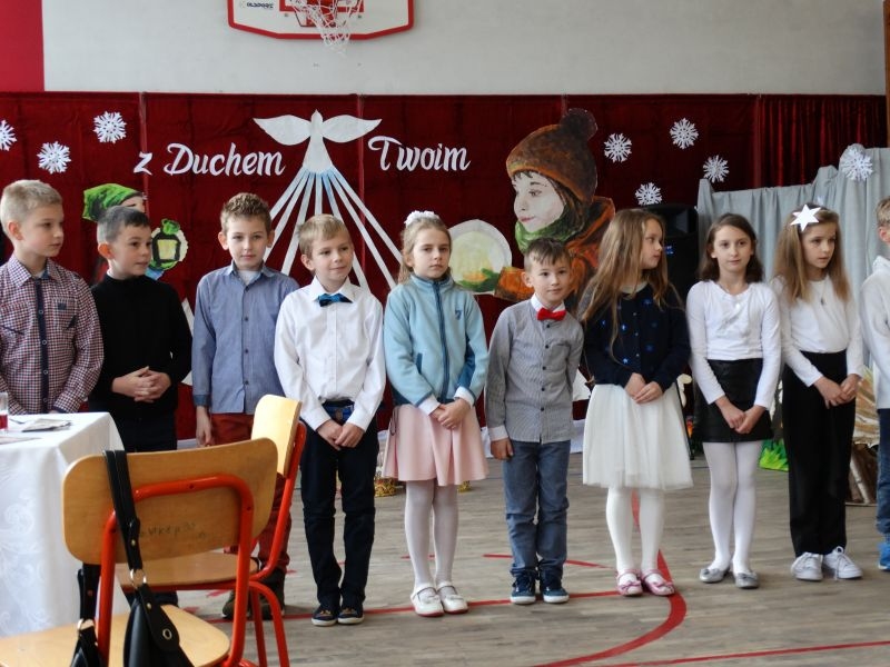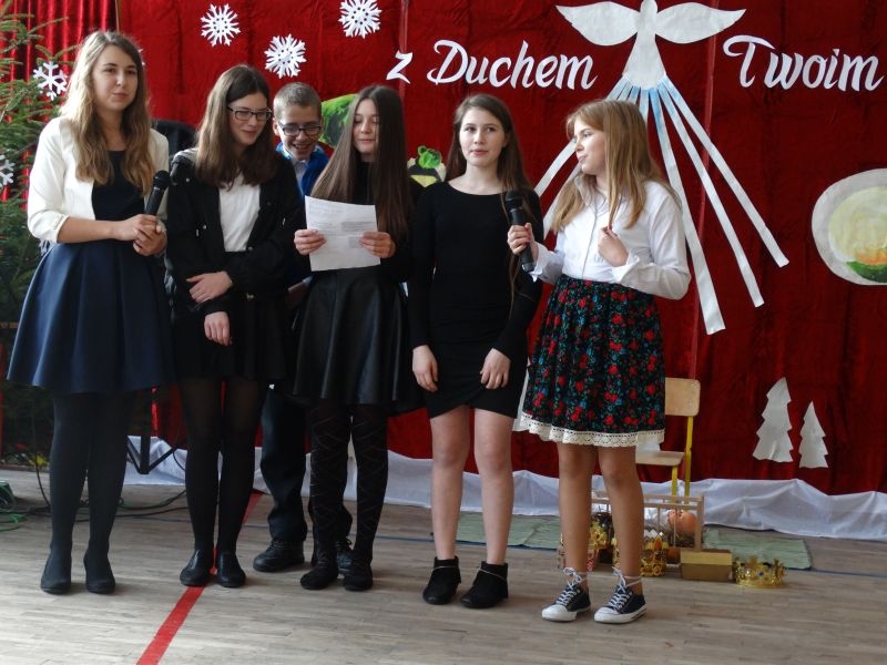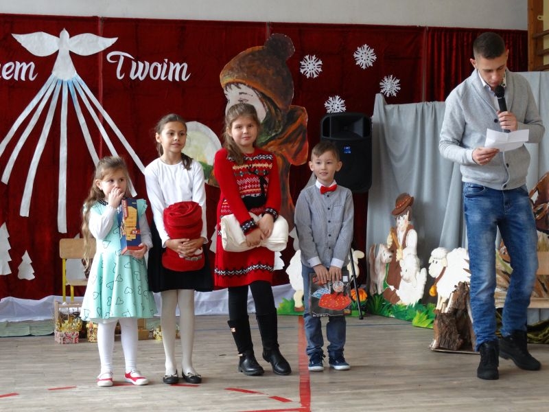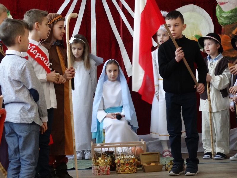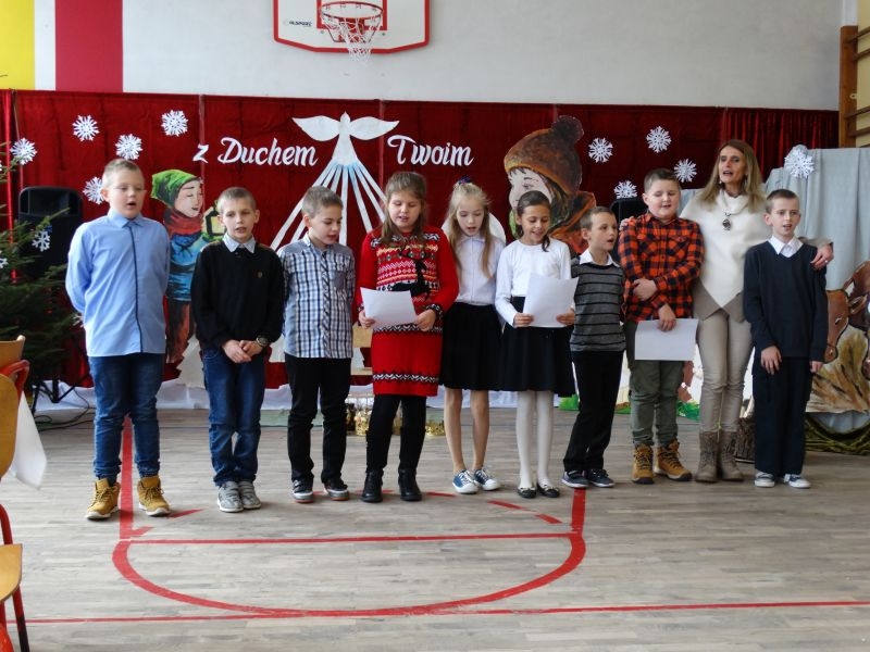 W dniu 21.12.2018 r. w naszej szkole odbyły się tradycyjne Jasełka ,które obrazowały nadejście nowonarodzonego Jezusa Chrystusa. Przedstawiła je młodsza grupa uczniów, która została przygotowana przy współpracy nauczycieli z klas młodszych. Koordynowała to wszystko siostra Agnieszka. Następnie połamano się tradycyjnym opłatkiem składając sobie wzajemnie życzenia świąteczno – noworoczne. W dalszej kolejności odbyła się chyba największa wigilia szkolna w MiG Piwniczna Zdrój bo zasiadło do stołu około 150 uczestników. Zaprezentowano świąteczne stroiki konkursowe i nagrodzono najlepsze.Na koniec każda z klas zaśpiewała po jednej wybranej kolędzie.