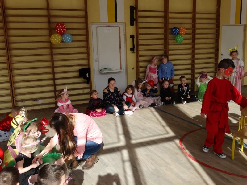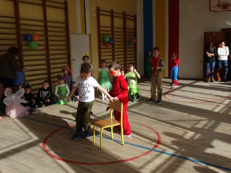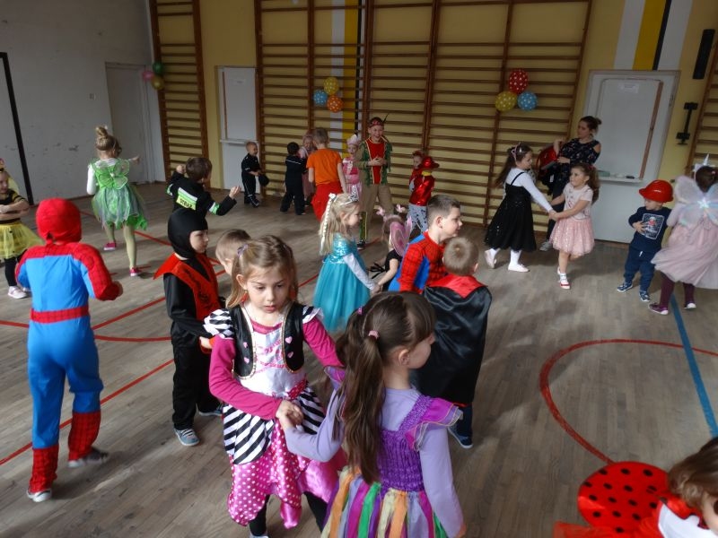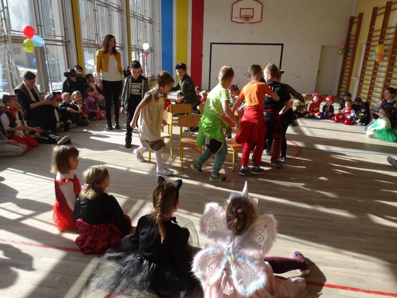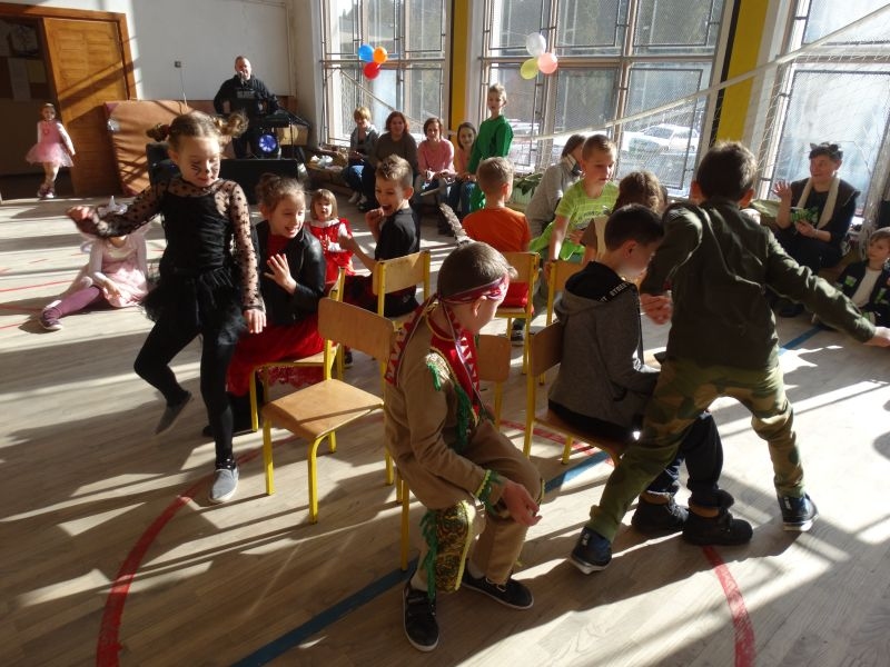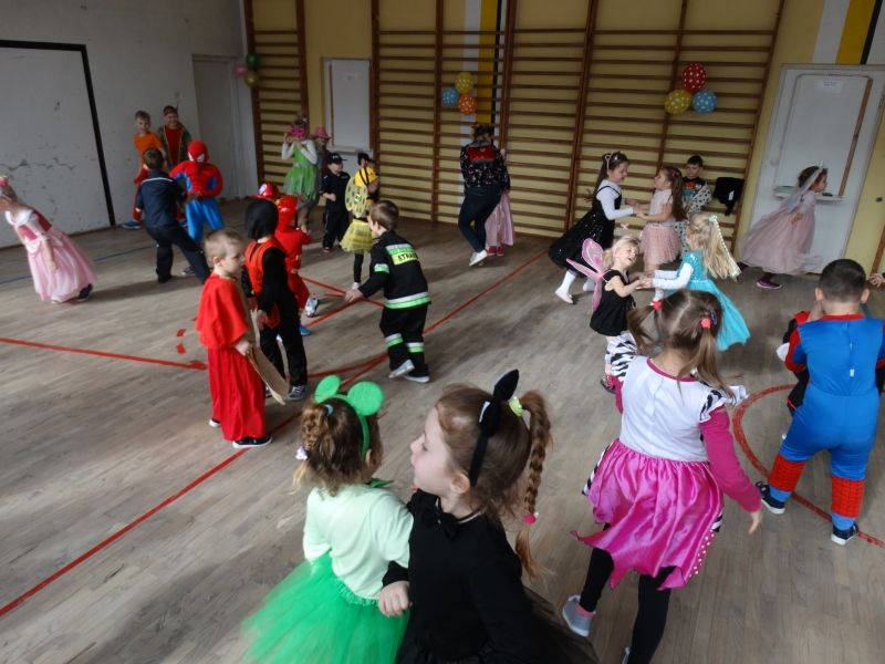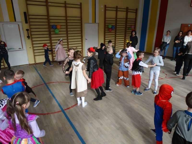 Karnawałowa uczta, zapusty, ostatki, to tradycyjne staropolskie nazwy karnawału, którego określenie wywodzi się od łacińsko-włoskiego słowa „Carnavale”. W wielu krajach Europy, a już zwłaszcza we Włoszech, które są kolebką zabaw karnawałowych, nazywano tak czas liczony od Nowego Roku aż do dnia poprzedzającego środę popielcową. Czas ten upływał zawsze na ucztach, zabawach i maskaradach. Tak więc zabawowych uciech nie mogło zabraknąć w naszej szkole. Ostatki odbyły się tutaj dwa dni przed Tłustym Czwartkiem. Impreza była zorganizowana dla uczniów klas młodszych, jak również dla Zerówkowiczów i Przedszkolaków. Jak co roku nie zabrakło „człowieka orkiestry” w osobie Pana Mariusza Chronowkiego, który śpiewał, grał, tańczył i organizował konkursy. Każdy mały uczestnik zabawy przygotował strój godny podziwu, akceptacji publiczności i oczywiście nagrody. Zabawowym harcom towarzyszyły suto przygotowane stoły, którymi zajęli się Rodzice naszych dzieci. Więc jak to nasz polski karnawał głosi: „najedz się do syta” – po ucztach przy stole, dzieci miały najedzone brzuszki, a kalorie spalać mogły na bieżąco. Jakie potrawy gościły u nas? Ano były to oczywiście ciasta, ciasteczka, galaretki, kanapeczki, a nawet pizza… Co natomiast jedzono w Ostatki przed laty? W tym szczególnym dniu zjadano wiele obficie kraszonego jadła: tłustej kaszy ze skwarkami, kapusty z mięsem i słoniną, boczku oraz kiełbasy, a także słodkich racuchów, blinów, jak również przysmaków delikatniejszych, do których zaliczano pączki i chrust. Chrust i pączki, po dzień dzisiejszy stanowią ulubione przysmaki karnawałowe, które znane były w miastach polskich już w XVII wieku. W tym czasie słynęły z nich cukiernie warszawskie, których wyroby trafiały nawet na królewskie stoły. Także i w naszych czasach pączki są typowym, polskim specjałem karnawałowym. Zgodnie z tradycją, w tłusty czwartek nie może ich zabraknąć na żadnym stole. W wielu regionach Polski z kończącym się karnawałem wiązały się obrzędy niszczenia różnych postaci symbolizujących czas zimy- u nas słynna „Marzanna”. Wszystkie zabawy zapustne, kończyły się o północy. Z wybiciem zegara do izby, w której odbywały się tańce, wbiegał chłopiec z rybim szkieletem albo śledziem wyciętym z papieru, zawieszonym na wysokiej żerdzi. Obwieszczał on w ten sposób, że rozpoczyna się Wielki Post, że muszą zakończyć się tańce, że trzeba schować do skrzyń instrumenty muzyczne, a obfite jedzenie zastąpi żur z żytniej mąki, ziemniaki i śledzie. Tym sposobem rozpoczynał się czas ciszy, skupienia, czas przygotowań do Wielkanocy. Tak więc i my przygotujmy się do tego okresu we właściwy sposób, by świętować znów wraz z rodzinami przy wielkanocnym stole.