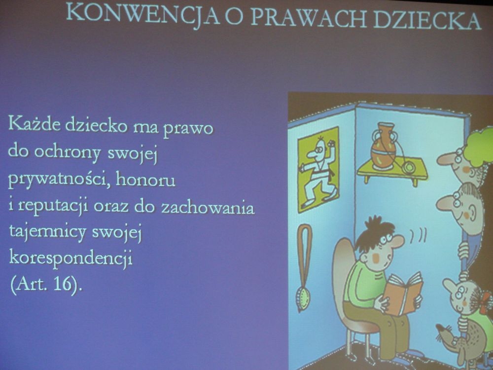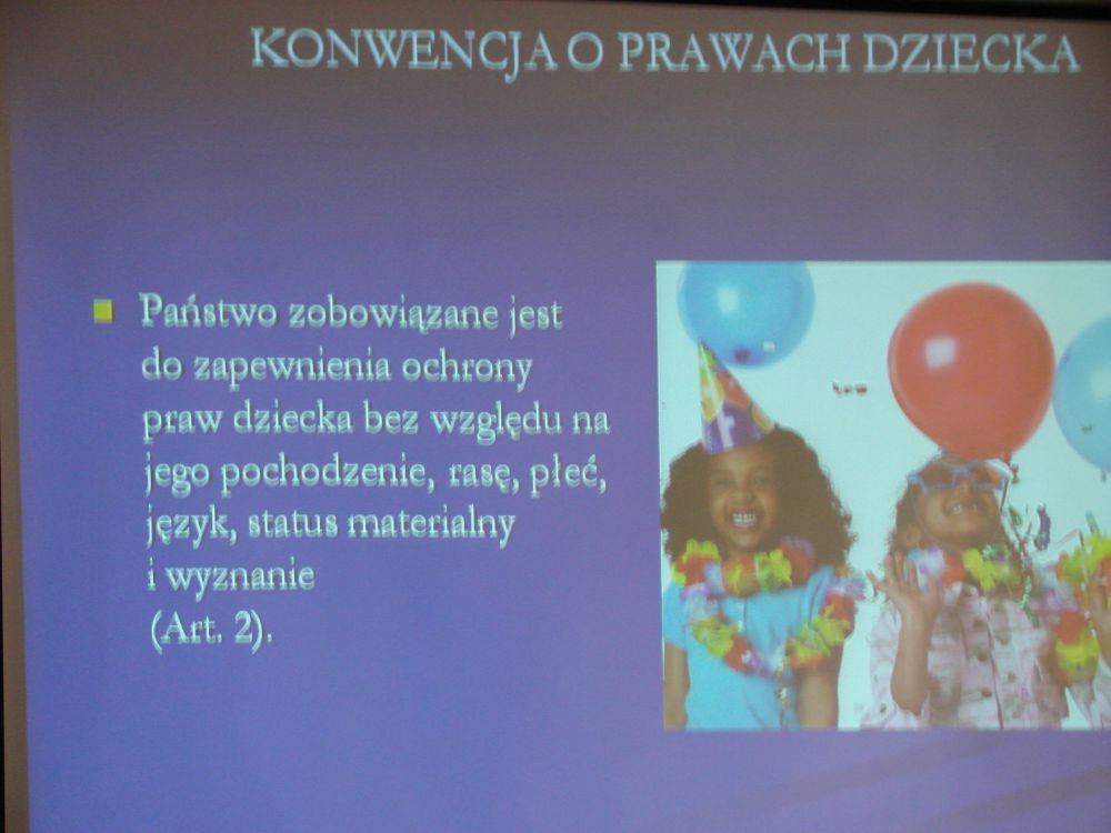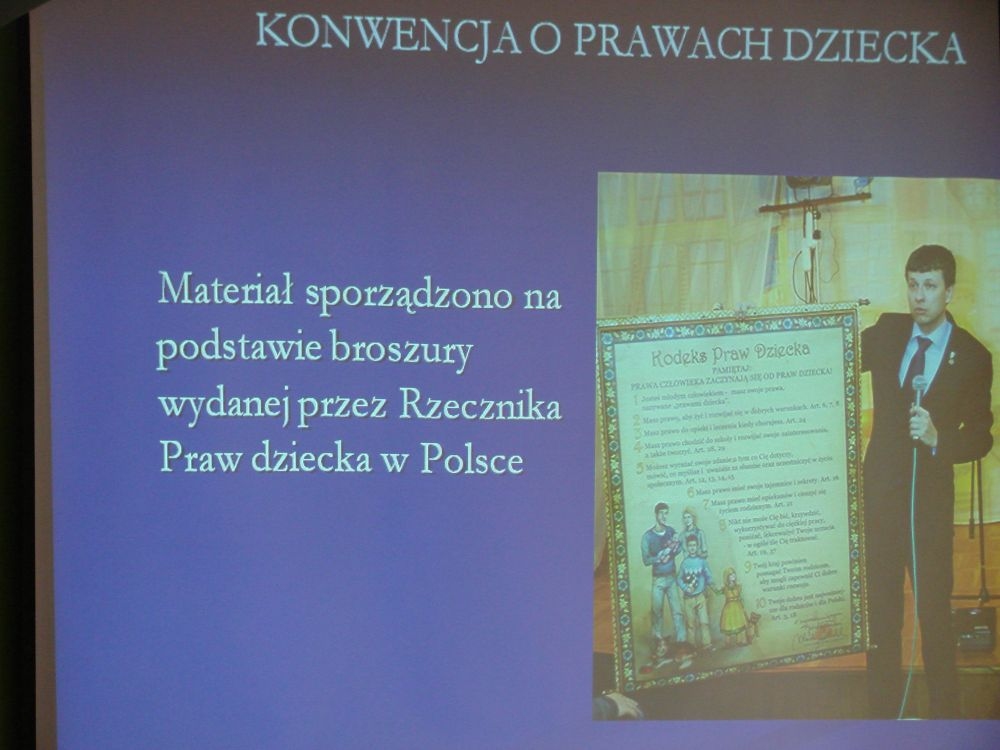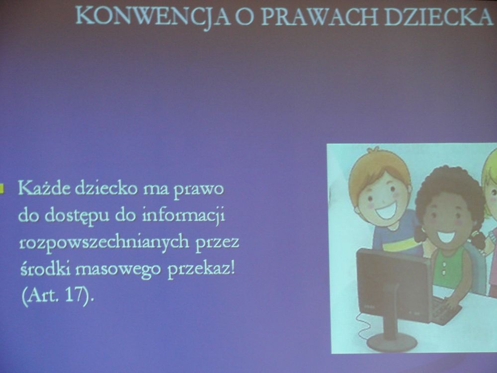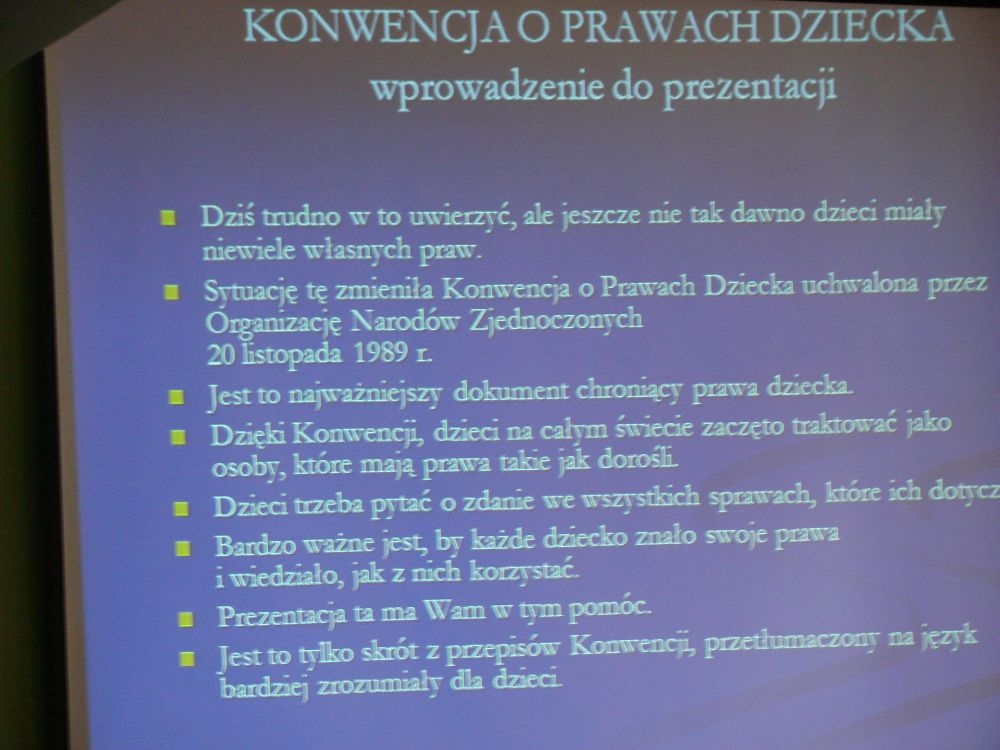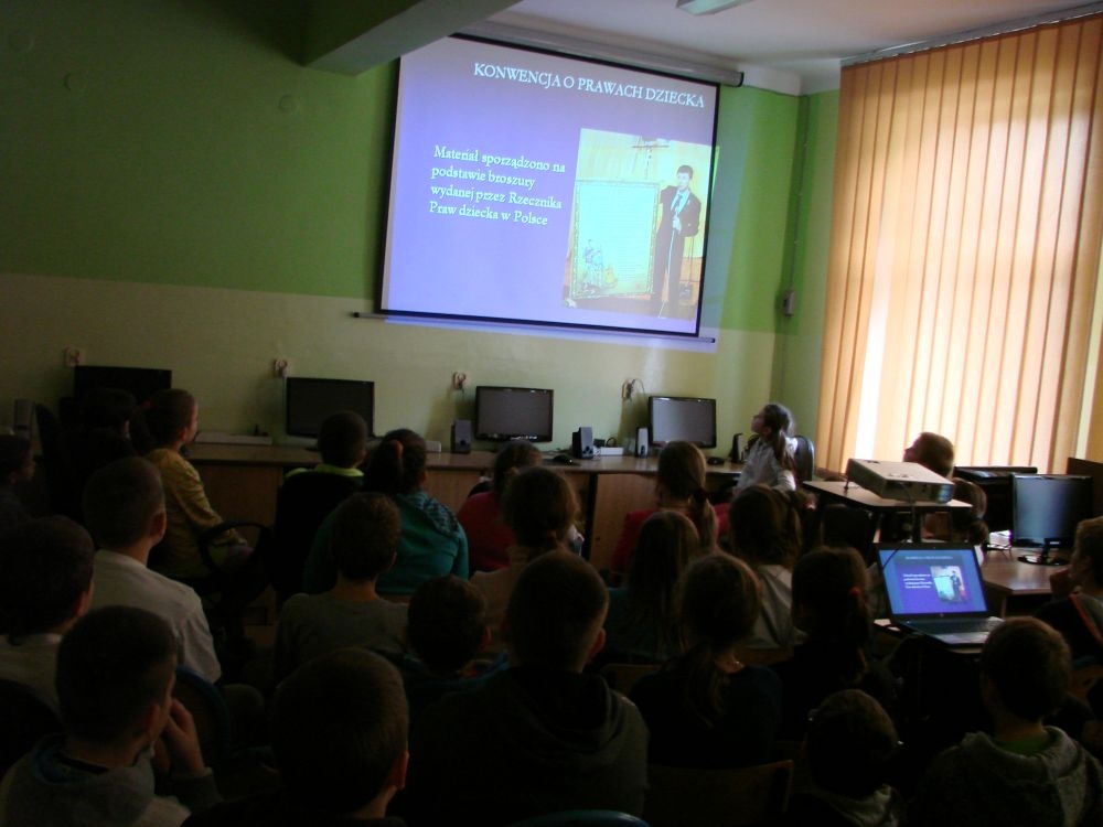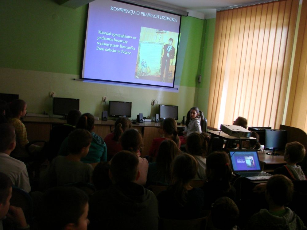 W tym też dniu w naszej szkole odbył się apel, gdzie przypomniano dzieciom o przysługujących im prawach określonych w Konwencji o Prawach Dziecka. Apel podparty był prezentacją multimedialną, w której znalazły się prawa dziecka „w obrazkach”.
