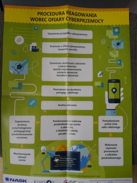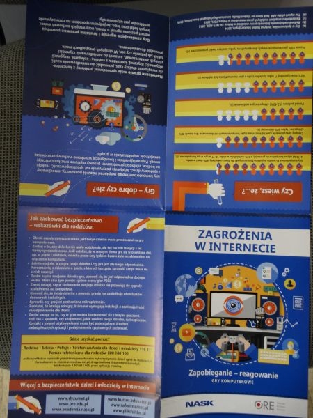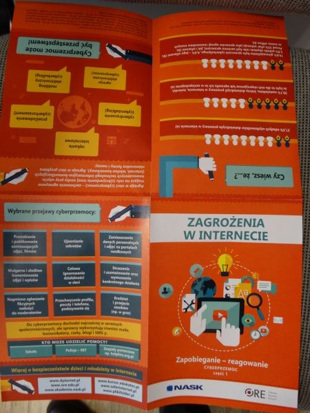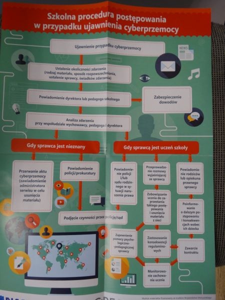 Uczniowie otrzymali też ulotki, które zawierały zagrożenia w Internecie ale także wskazówki jak zapobiegać i reagować w razie potrzeby. Podobne w treści były także ulotki o tematyce gier komputerowych. Materiały te zostały dostarczone przez przedstawicieli Komisariatu Policji w Piwnicznej.