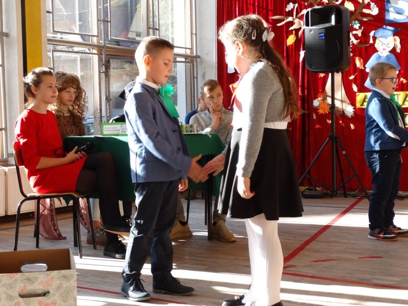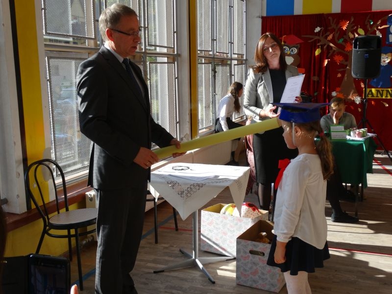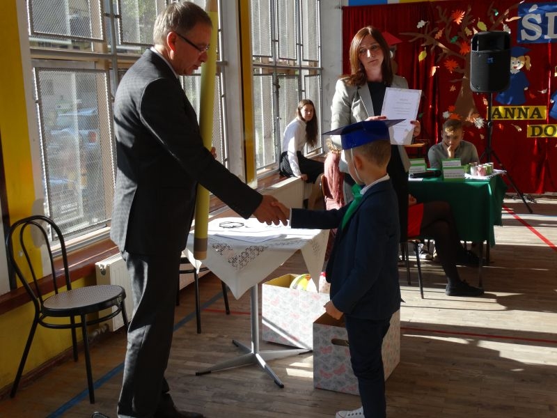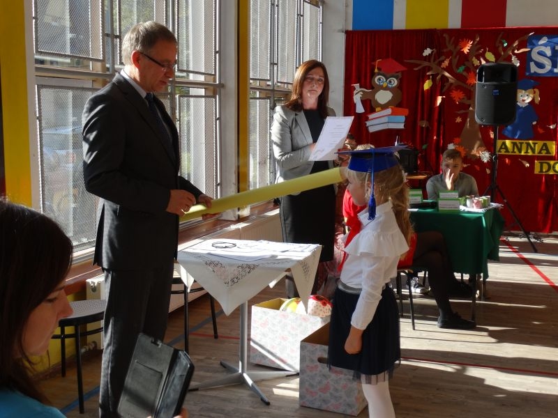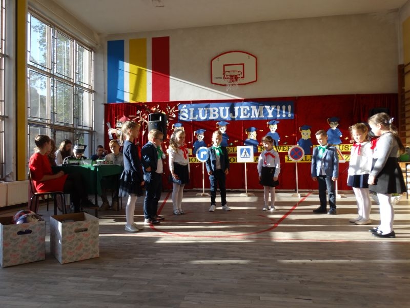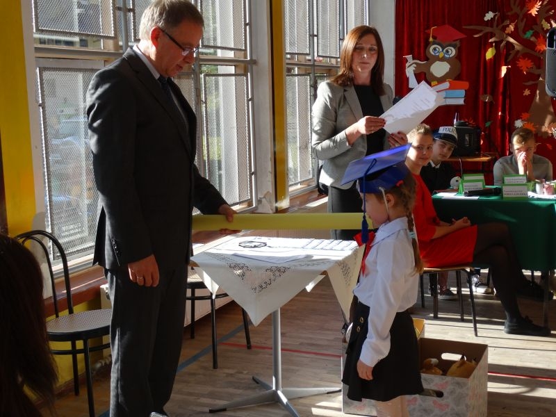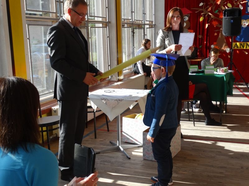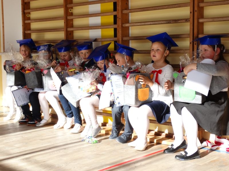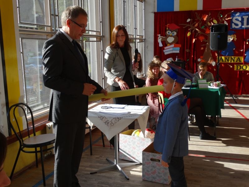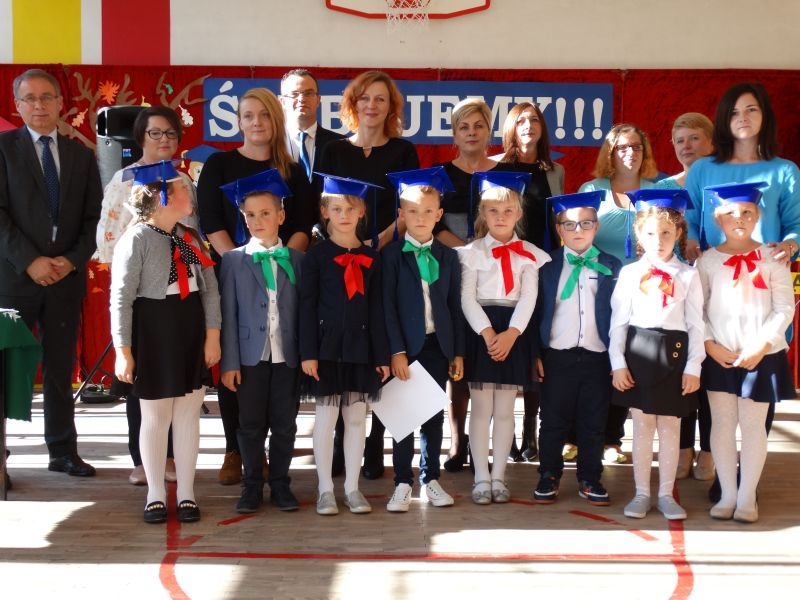 10 października od samego rana w Szkole Podstawowej nr 2 w Kosarzyskach panowała podniosła atmosfera .Dzieci ubrane w świąteczny strój galowy, przepiękna dekoracja na sali gimnastycznej, przygotowany sprzęt nagłaśniający - to wszystko po to, aby ślubowanie pierwszaków wypadło jak najbardziej uroczyście. Ośmioro małych uczniów, w tym pięć dziewczynek i trzech chłopców zaprezentowało się po raz pierwszy na scenie wśród całej społeczności szkolnej oraz wzruszonych rodziców. Znajomość przepisów ruchu drogowego, pięknie zaśpiewane piosenki, przyjaźń i koleżeństwo w grupie rówieśniczej to dowód, że dzieci są gotowe do sumiennej pracy w szkole i wiedzą, że czeka ich więcej obowiązków oraz pilna praca. Występom dzieci przyglądała się komisja, składająca się z uczniów starszych klas, którzy wcielili się w role: Doroty Zawadzkiej – superniani, Magdy Gessler – znawczyni kuchni i smacznego odżywiania , komendanta Policji- czuwającego nad bezpieczeństwem dzieci oraz generała Wojska Polskiego .Dzieci wzięły udział w teście dla Pierwszaka, który zdali celująco. Po części artystycznej w niezwykle podniosłej atmosferze, przed pocztem sztandarowym pierwszacy ślubowali być dobrymi Polakami, godnie reprezentować swoją szkołę, swym zachowaniem i nauką sprawiać radość rodzicom i nauczycielom. Po złożeniu ślubowania pan dyrektor Marian Dobosz dokonał symbolicznego pasowania na ucznia. "Pasuję Cię na ucznia" - mówił pan dyrektor, dotykając ołówkiem - jak czarodziejską różdżką ramion swoich podopiecznych. Nie zabrakło życzeń i prezentów od rodziców oraz wszystkich uczniów. W klasie czekała na pierwszoklasistów niespodzianka , przygotowana przez rodziców- kolorowo udekorowana balonikami i serpentynami sala oraz słodki poczęstunek. Ten dzień , pełen wrażeń i wzruszeń na długo zapadnie w pamięci wszystkich zebranych.. Wszystkim dzieciom życzymy sukcesów w dalszej nauce, a rodzicom zadowolenia ze swoich pociech. Do grona społeczności szkolnej wstąpili: Izabela Broniszewska, Oliwia Jaworska, Emilia Lichoń, Mateusz Maślanka, Anna Pawlik, Dominik Smajdor, Ksawery Wojciechowski oraz Izabela Wójcik.