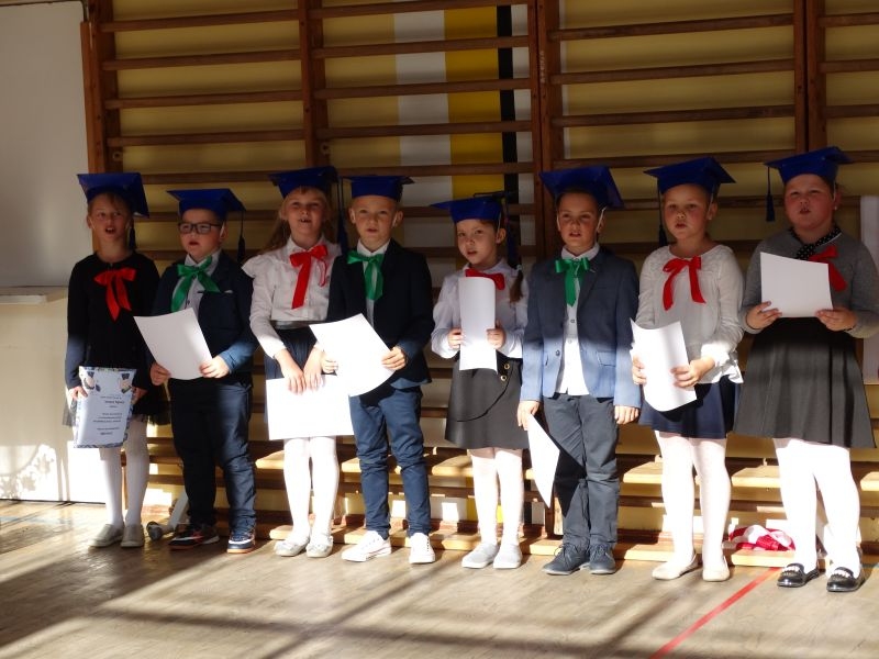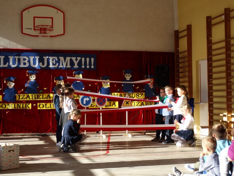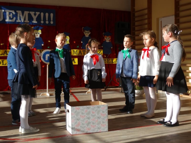 Uczniowie klasy pierwszej przygotowywali się do tej uroczystości od początku roku szkolnego. Dzielnie uczyli się tekstów, wierszy, piosenek i wytrwale ćwiczyli podczas prób.