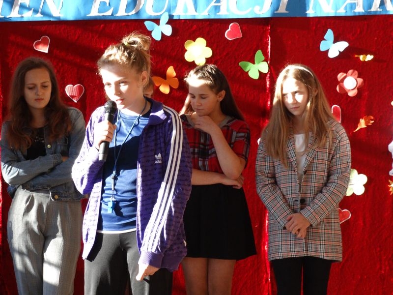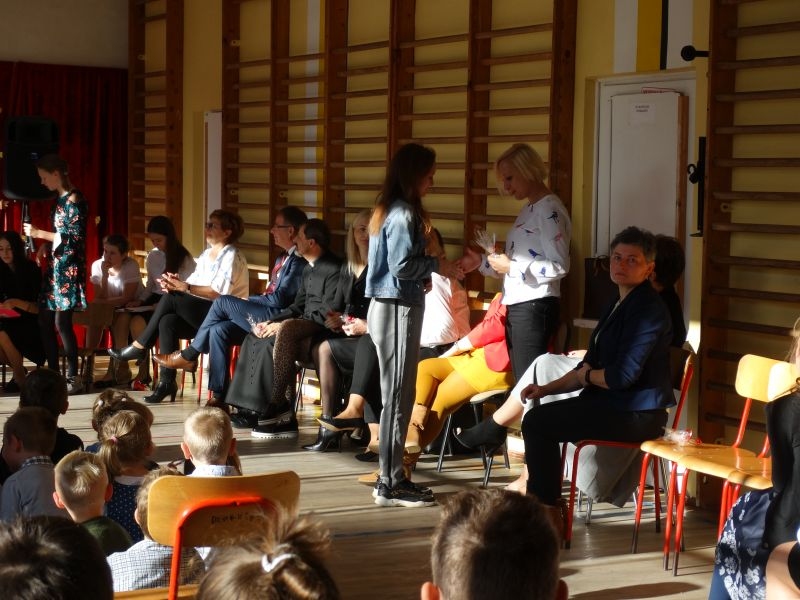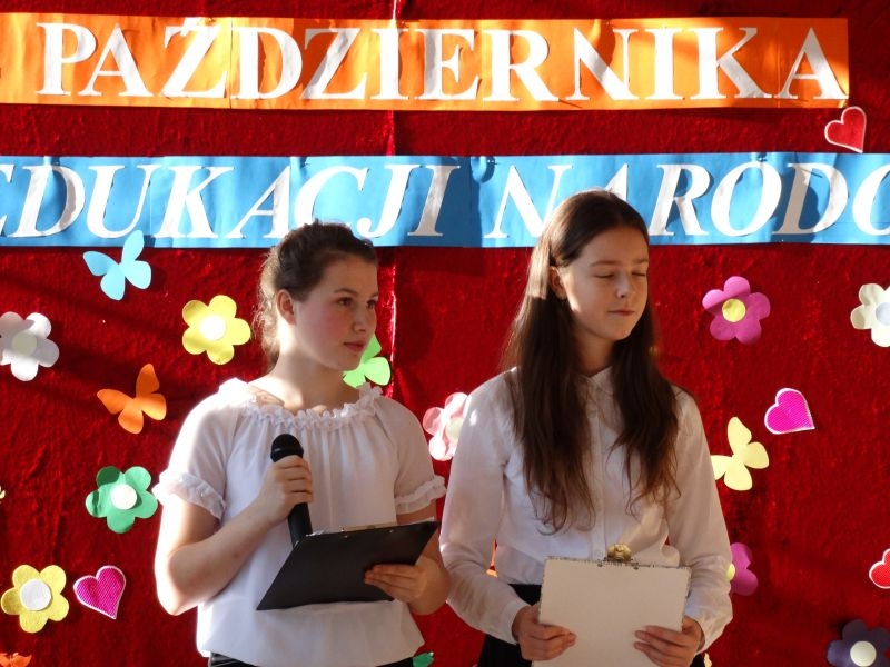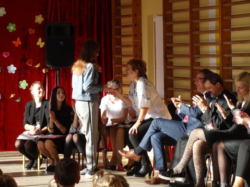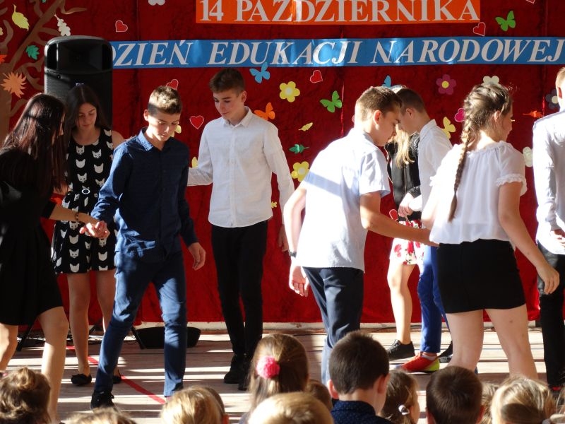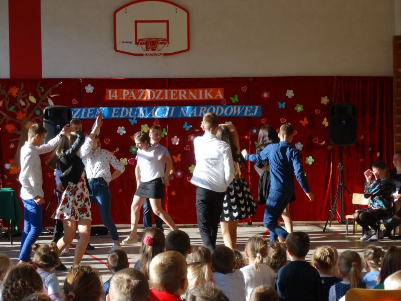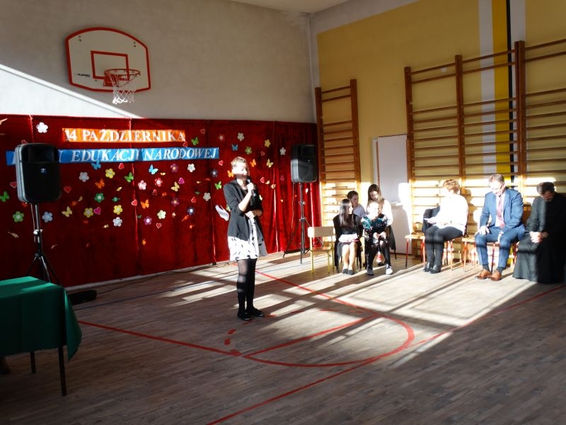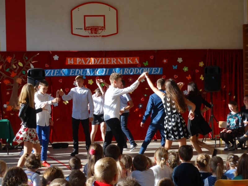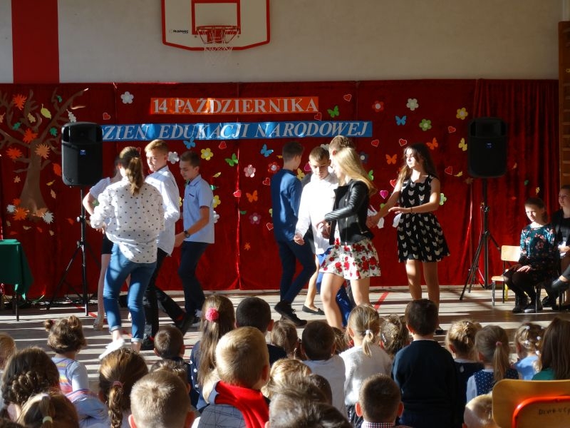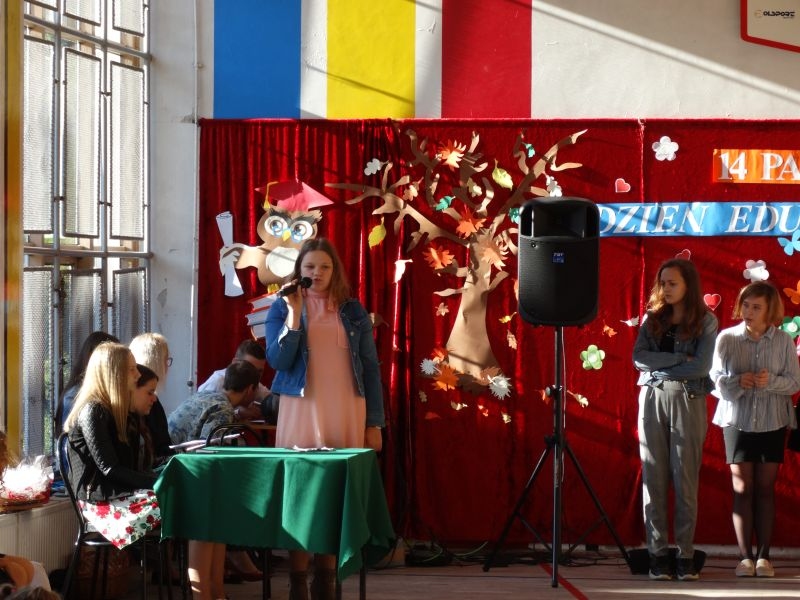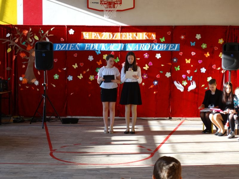 Tym wierszem 11 października 2019 roku, rozpoczęła się uroczysta akademia z okazji Święta Edukacji Narodowej. Cała społeczność szkolna spotkała się na przedstawieniu przygotowanym przez uczniów klas V-VIII. Poprzez deklamację pięknych wierszy, młodzi artyści wyrazili podziękowanie swoim nauczycielom za zaangażowanie, wytrwałość, każdą radę, chwilę rozmowy, za codzienny przykład jak być mądrym i dobrym człowiekiem. Nie zabrakło również pięknych nastrojowych piosenek wykonanych przez uzdolnione wokalnie uczennice z klasy VII – Aleksandrę Lichoń, Oliwię Miechurską i Ewelinę Wielocha.