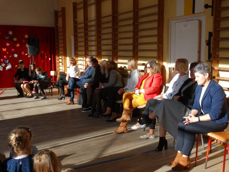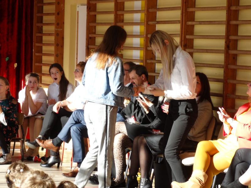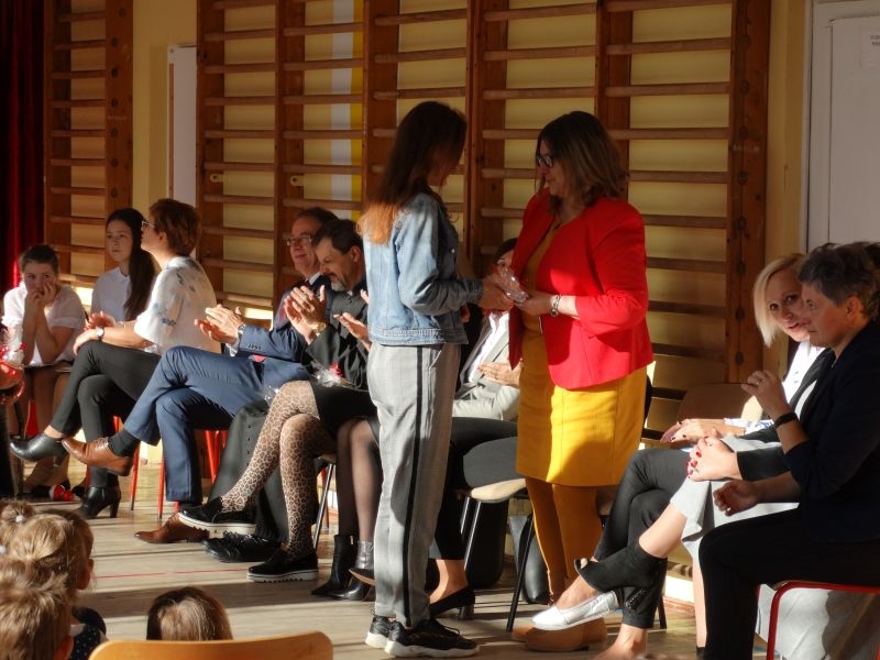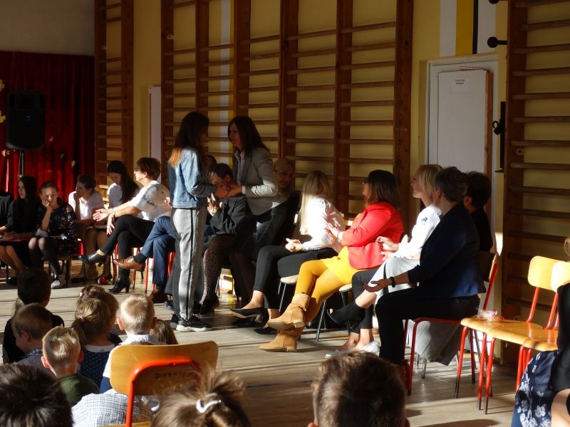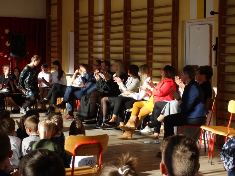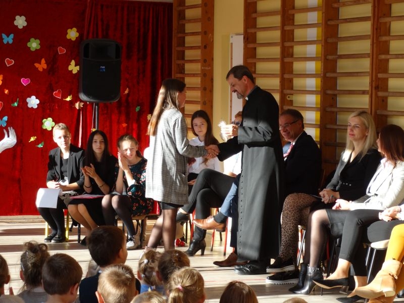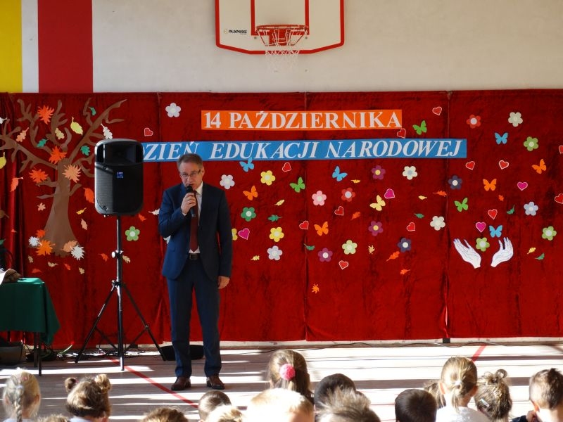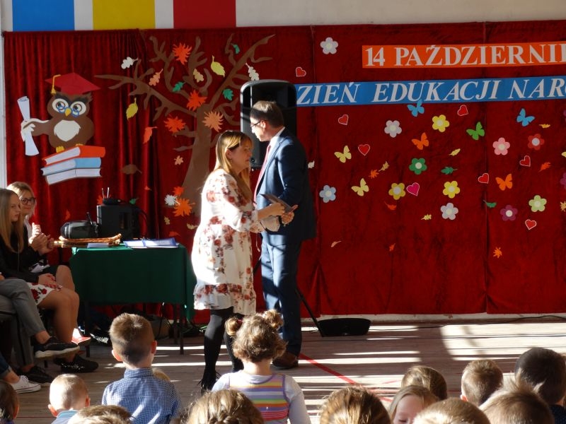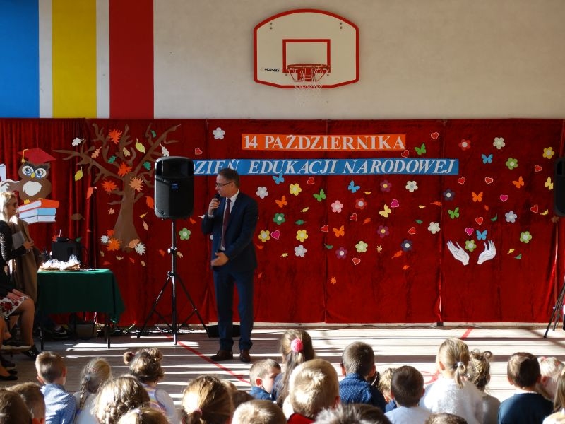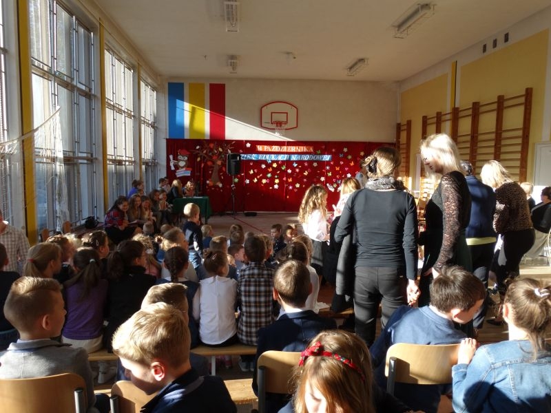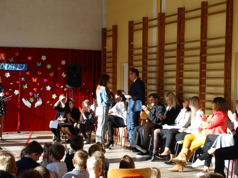 Tym wierszem 11 października 2019 roku, rozpoczęła się uroczysta akademia z okazji Święta Edukacji Narodowej. Cała społeczność szkolna spotkała się na przedstawieniu przygotowanym przez uczniów klas V-VIII. Poprzez deklamację pięknych wierszy, młodzi artyści wyrazili podziękowanie swoim nauczycielom za zaangażowanie, wytrwałość, każdą radę, chwilę rozmowy, za codzienny przykład jak być mądrym i dobrym człowiekiem. Nie zabrakło również pięknych nastrojowych piosenek wykonanych przez uzdolnione wokalnie uczennice z klasy VII – Aleksandrę Lichoń, Oliwię Miechurską i Ewelinę Wielocha.