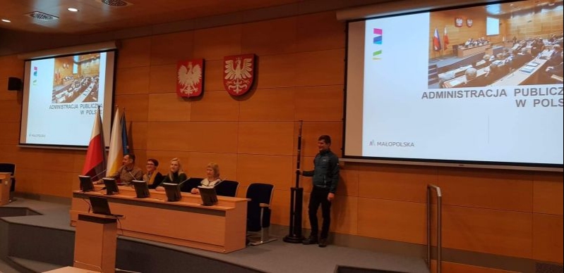Młodzież spotkała się z vice marszałkiem panem Edwardem Czesakiem oraz panią Martą Mordarską – radną województwa małopolskiego. Następnie doktor politologii - wykładowca w Akademii Ekonomicznej w Krakowie - pan Jakub Olech wygłosił trwającą ponad godzinę prelekcję, w której przedstawił historię samorządu w Polsce po roku 1989. Zapoznał nas także ze strukturą i zadaniami poszczególnych ogniw tego samorządu. Finałem tej żywej lekcji była symulacja głosowania w sali posiedzeń, w trakcie której uczniowie otrzymali karty do głosowania i siedząc w ławach samorządu, mogli się przekonać, jak wygląda prawdziwe głosowanie. Miłym akcentem kończącym tę cześć naszej wycieczki były upominki ufundowane dla każdego oraz poczęstunek. W drugiej części wyjazdu odwiedziliśmy Muzeum Armii Krajowej. Przewodnik w ciekawy i awangardowy sposób wykorzystując najnowsze metody multimedialne, przedstawił działalność Armii Krajowej podczas II wojny światowej. Podsumowaniem wizyty w muzeum była gra, w której uczniowie mogli wykazać się zdobytą wiedzą. Młodzież otrzymała nagrody.