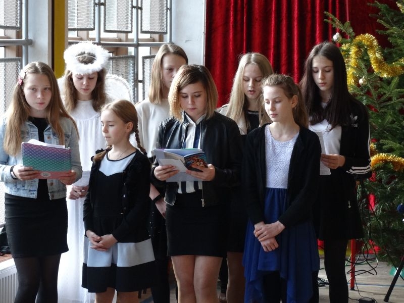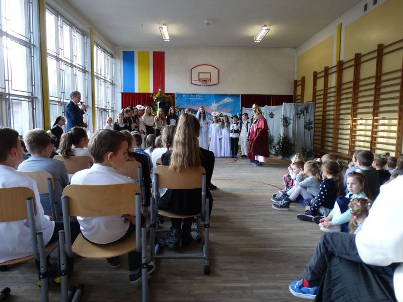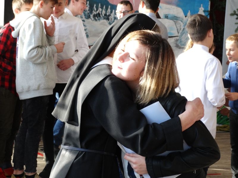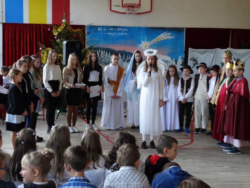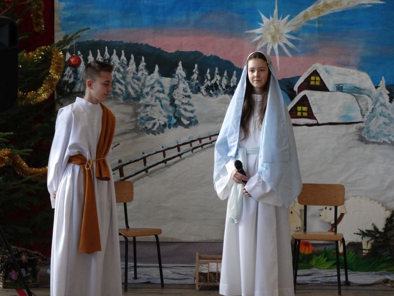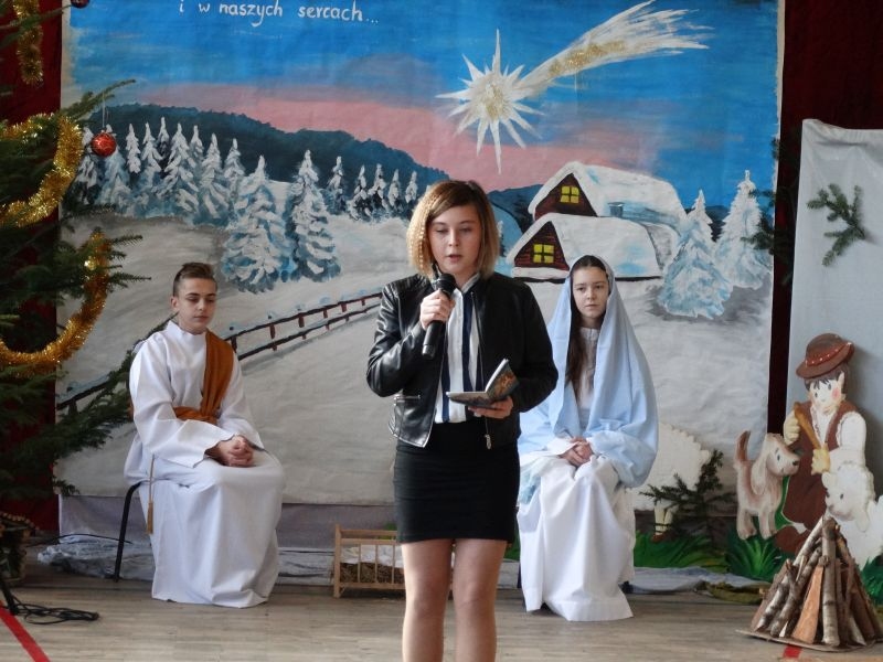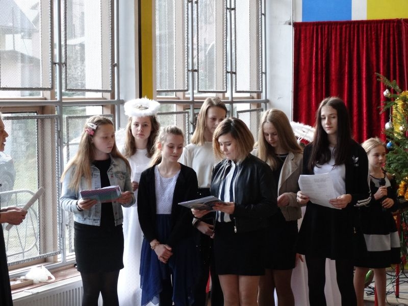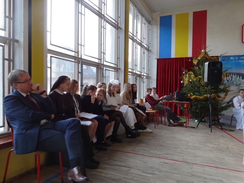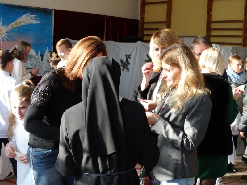 W tym dniu tradycyjnie odbyły się w naszej szkole Jasełka szkolne ,które obrazowały nadejście nowonarodzonego Jezusa Chrystusa . Przygotowała je s.Agnieszka przy pomocy p. Anny Gumulak wraz z uczniami z różnych klas. Przy tej okazji zostali też wyróżnieni uczniowie, którzy brali czynny udział w akcji charytatywnej ,,Serce Sercu” w ramach wolontariatu. Na koniec dyr.szk. złożył całej społeczności szkolnej życzenia świąteczne i noworoczne. Nauczyciele i uczniowie połamali się także symbolicznym opłatkiem składając sobie wzajemnie życzenia.