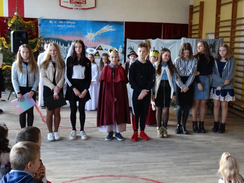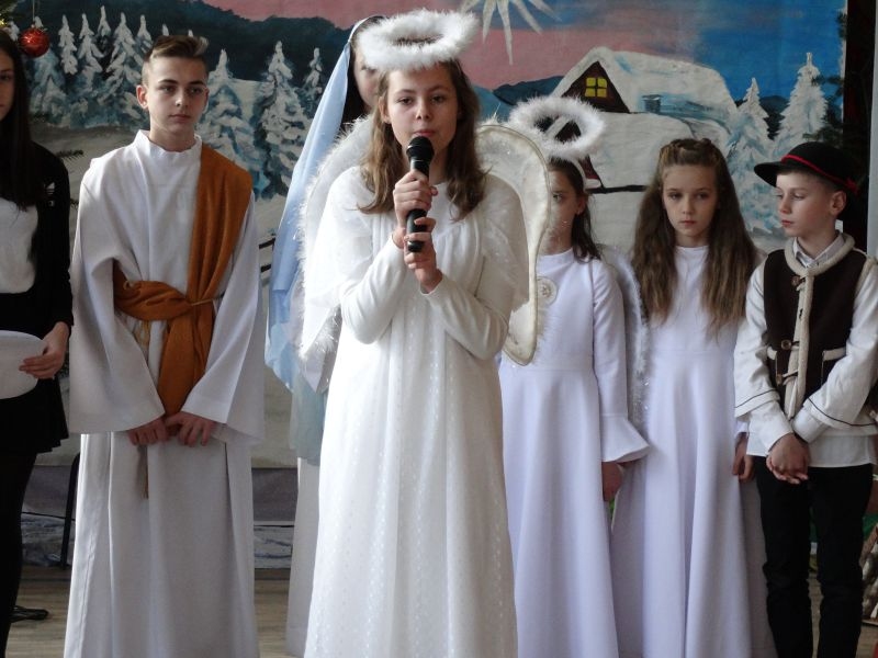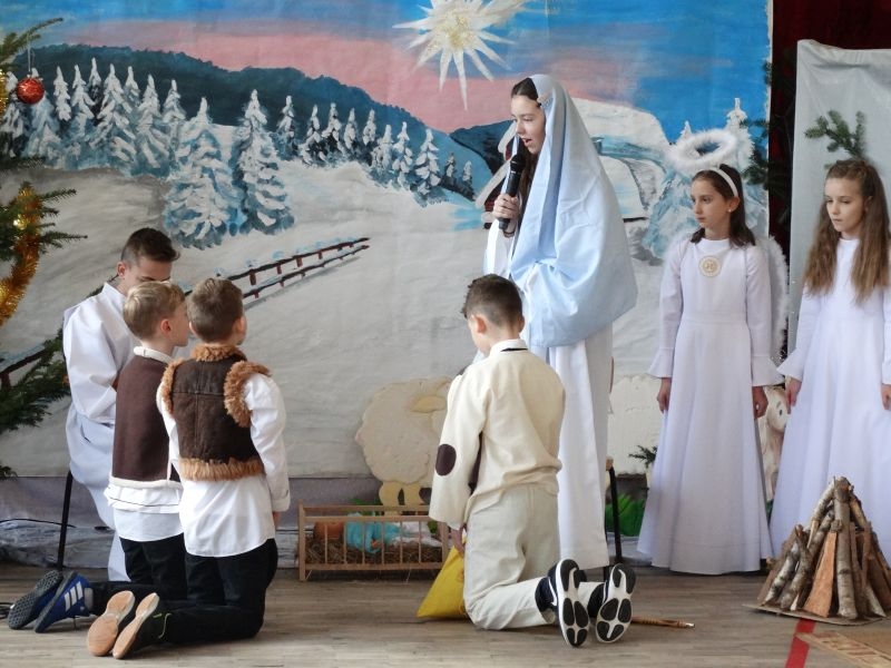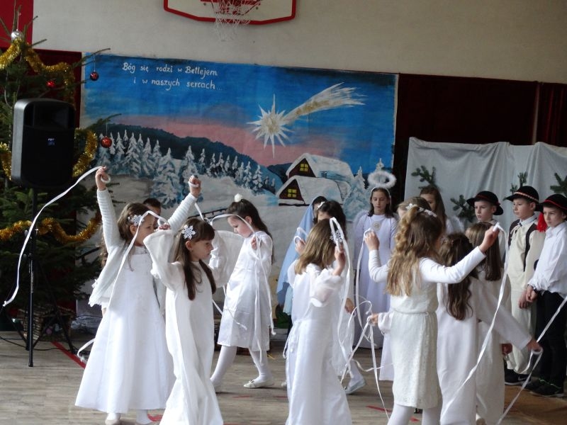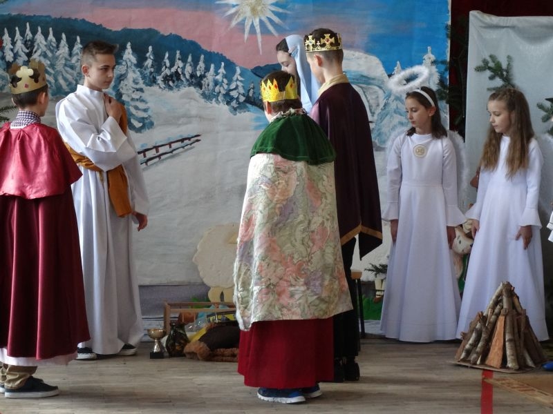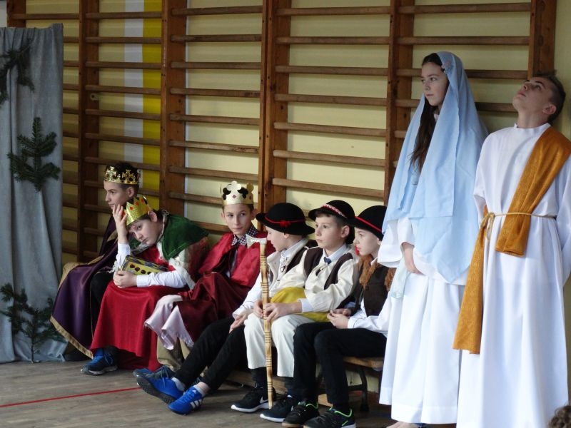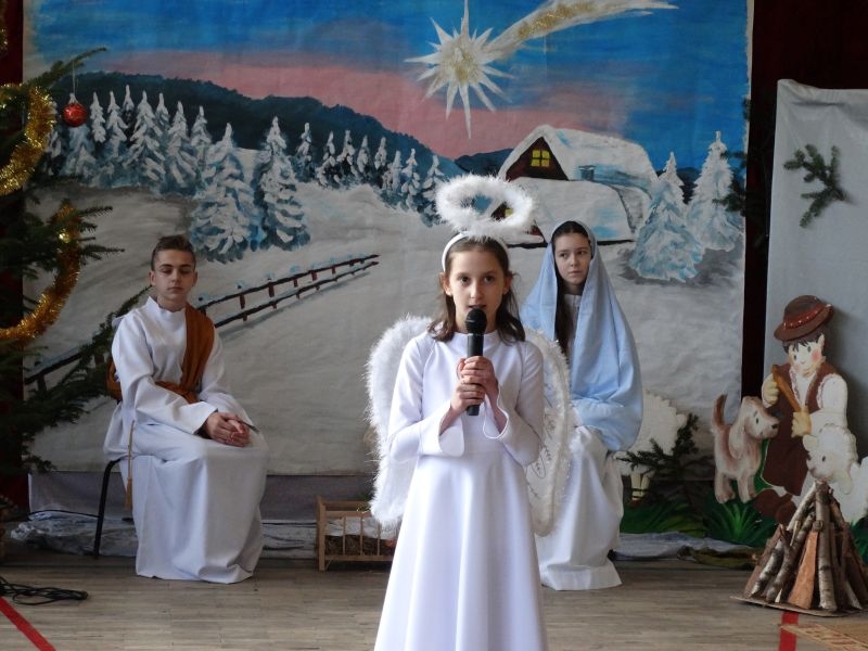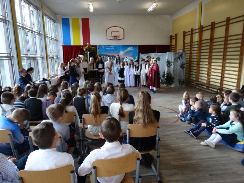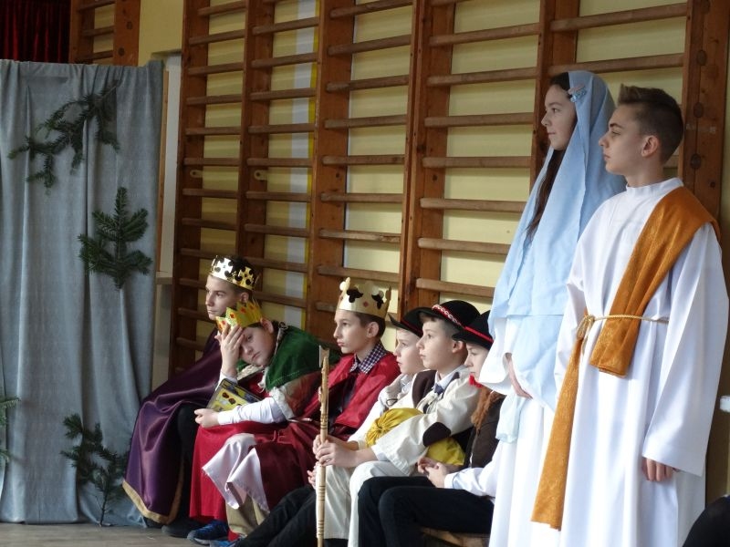 W tym dniu tradycyjnie odbyły się w naszej szkole Jasełka szkolne ,które obrazowały nadejście nowonarodzonego Jezusa Chrystusa . Przygotowała je s.Agnieszka przy pomocy p. Anny Gumulak wraz z uczniami z różnych klas. Przy tej okazji zostali też wyróżnieni uczniowie, którzy brali czynny udział w akcji charytatywnej ,,Serce Sercu” w ramach wolontariatu. Na koniec dyr.szk. złożył całej społeczności szkolnej życzenia świąteczne i noworoczne. Nauczyciele i uczniowie połamali się także symbolicznym opłatkiem składając sobie wzajemnie życzenia.