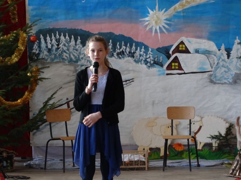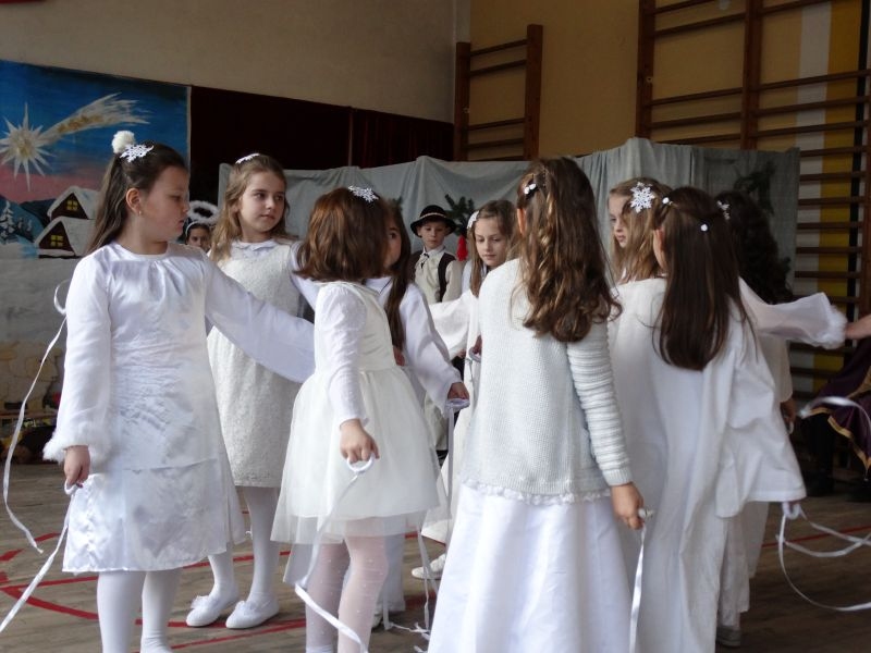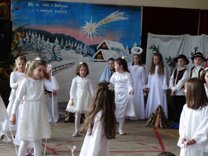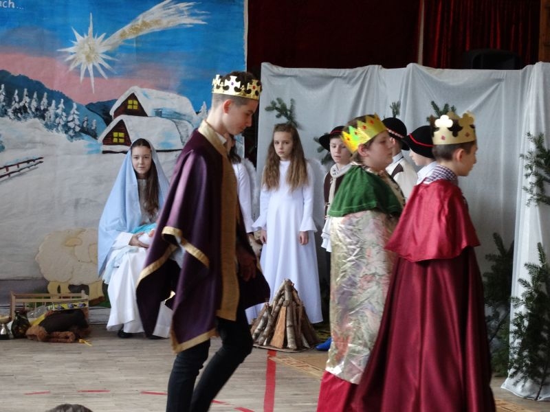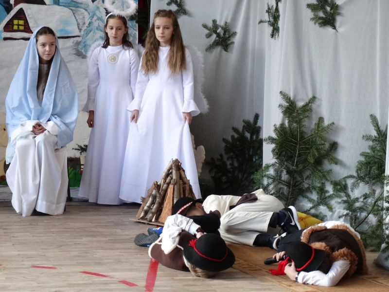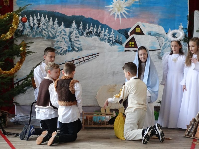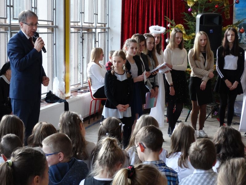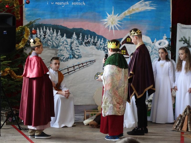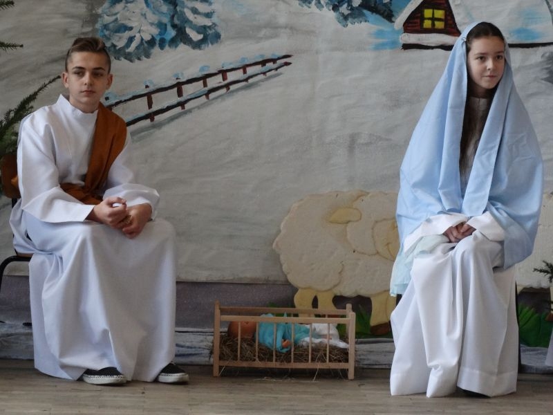 W tym dniu tradycyjnie odbyły się w naszej szkole Jasełka szkolne ,które obrazowały nadejście nowonarodzonego Jezusa Chrystusa . Przygotowała je s.Agnieszka przy pomocy p. Anny Gumulak wraz z uczniami z różnych klas. Przy tej okazji zostali też wyróżnieni uczniowie, którzy brali czynny udział w akcji charytatywnej ,,Serce Sercu” w ramach wolontariatu. Na koniec dyr.szk. złożył całej społeczności szkolnej życzenia świąteczne i noworoczne. Nauczyciele i uczniowie połamali się także symbolicznym opłatkiem składając sobie wzajemnie życzenia.