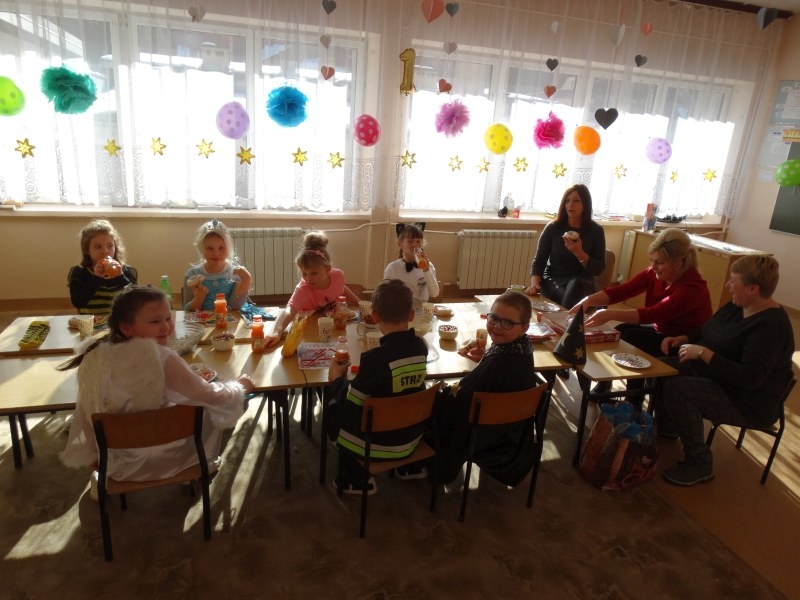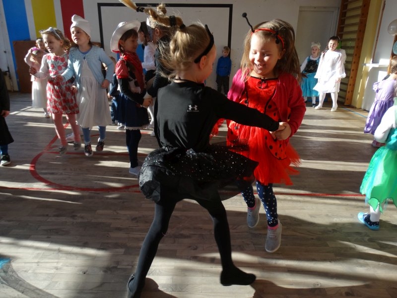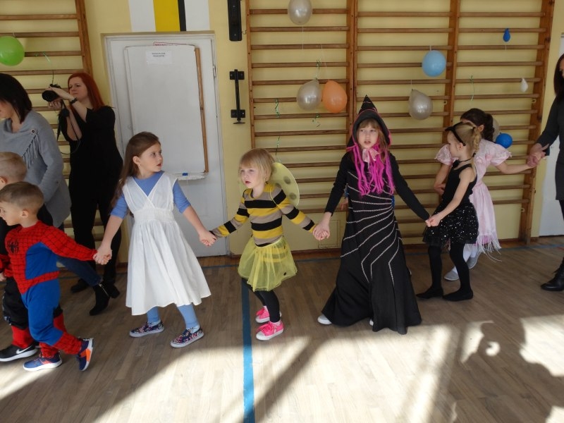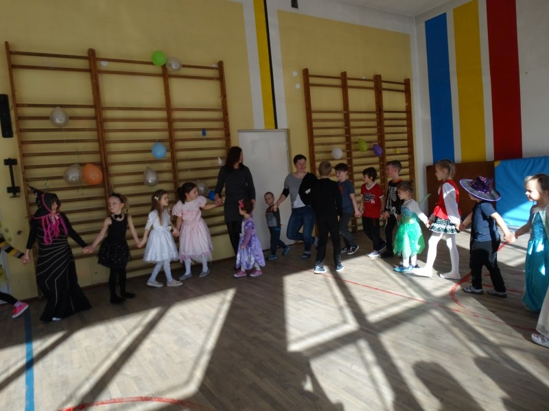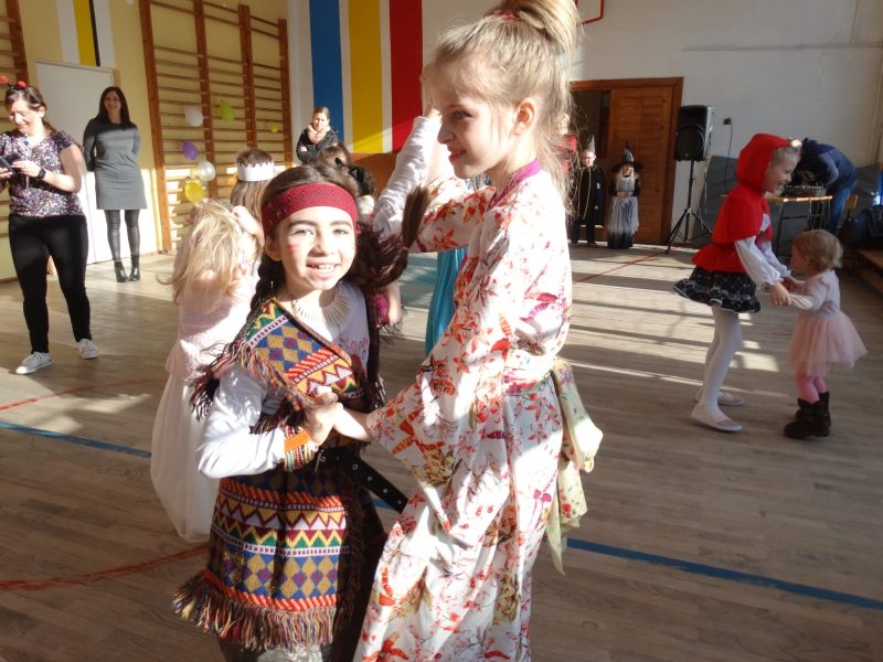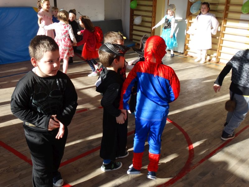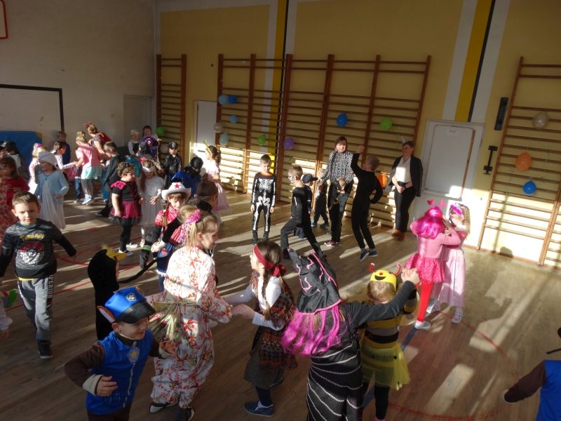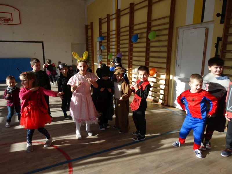 Karnawał to miła tradycja przepełniona muzyką i zabawą, gdzie ważnym elementem tego okresu są bale. Bal karnawałowy dla przedszkolaków, zerówki i uczniów klas 1-3 to dzień niezwykły, często wyczekiwany przez wiele tygodni. Już od rana na sali gimnastycznej odbywały się tańce ze znanym nam już DJ-em. Na sali było kolorowo. Były tu księżniczki, rycerze i inne postacie ze znanych i lubianych bajek. Urządziliśmy paradę strojów, konkurs tańca, zabawy w pociąg i kółeczka oraz wiele innych wesołych pląsów. Dzieci z wielką ochotą uczestniczyły we wspólnych zabawach i konkursach. Podczas balu dzieci miały możliwość odpocząć przy słodkim poczęstunku i soku. Zabawa karnawałowa umożliwiła dzieciom i wychowawcom spędzenie czasu w miłej atmosferze. Wspólna zabawa przyniosła wiele radości, a to było głównym celem zorganizowanego balu.