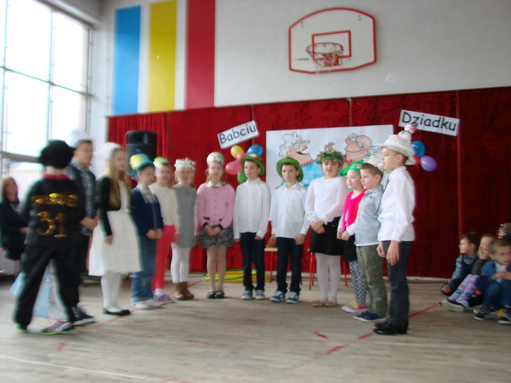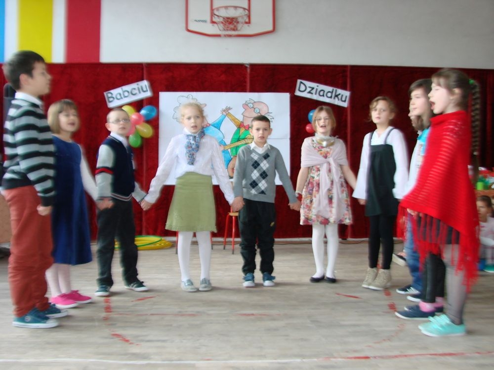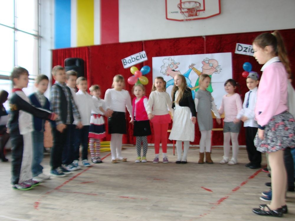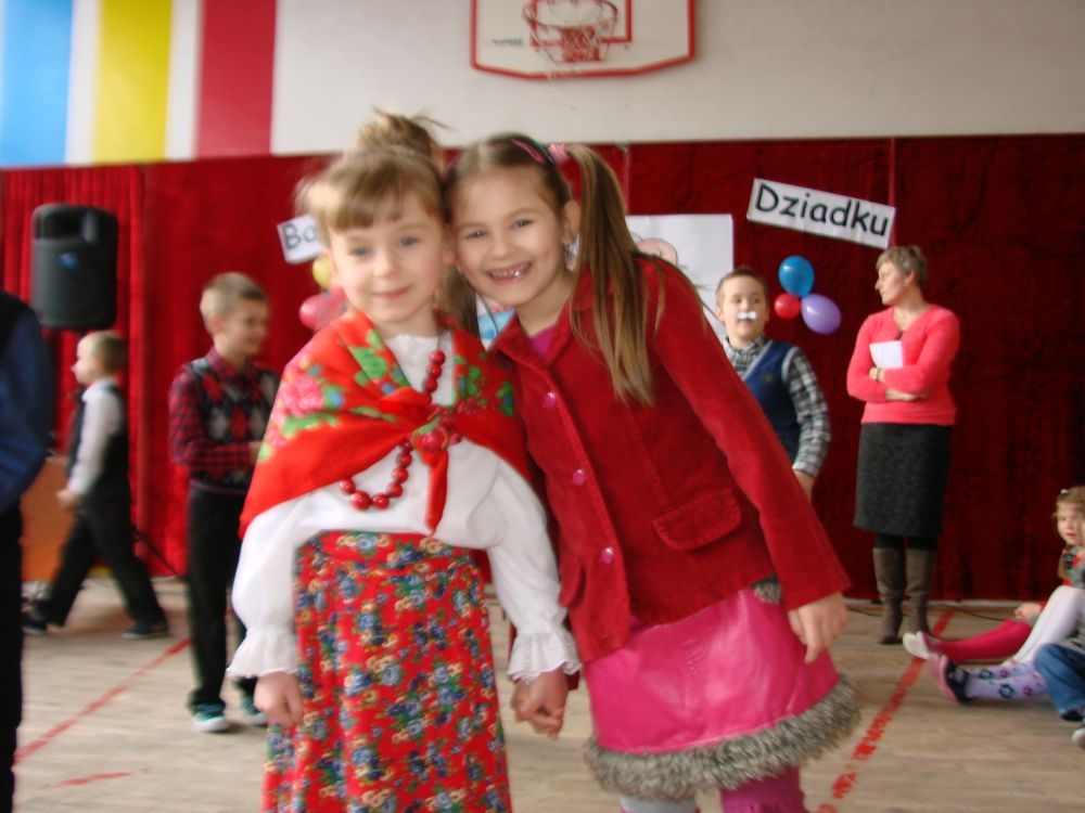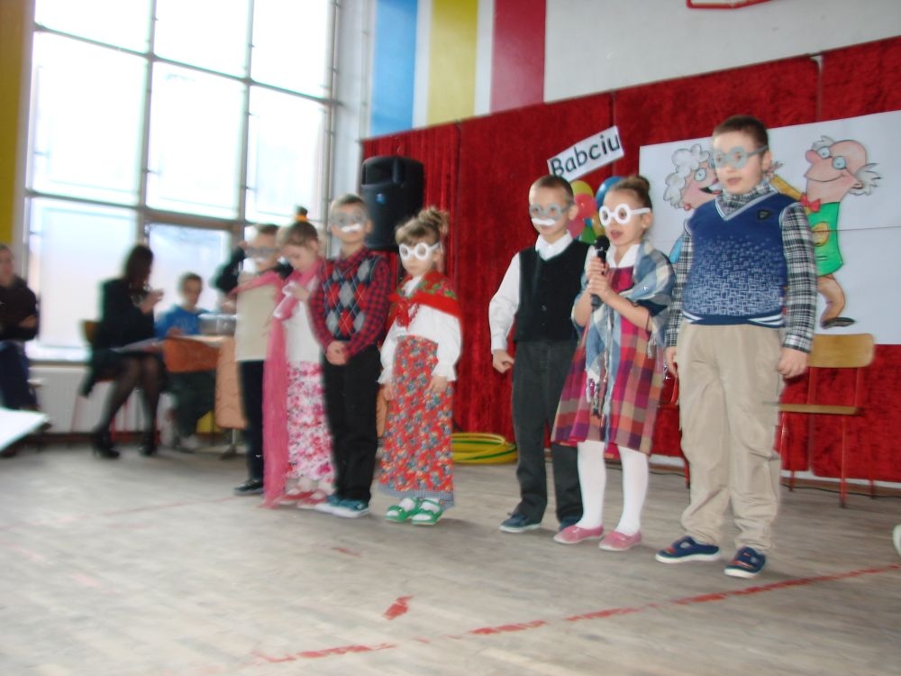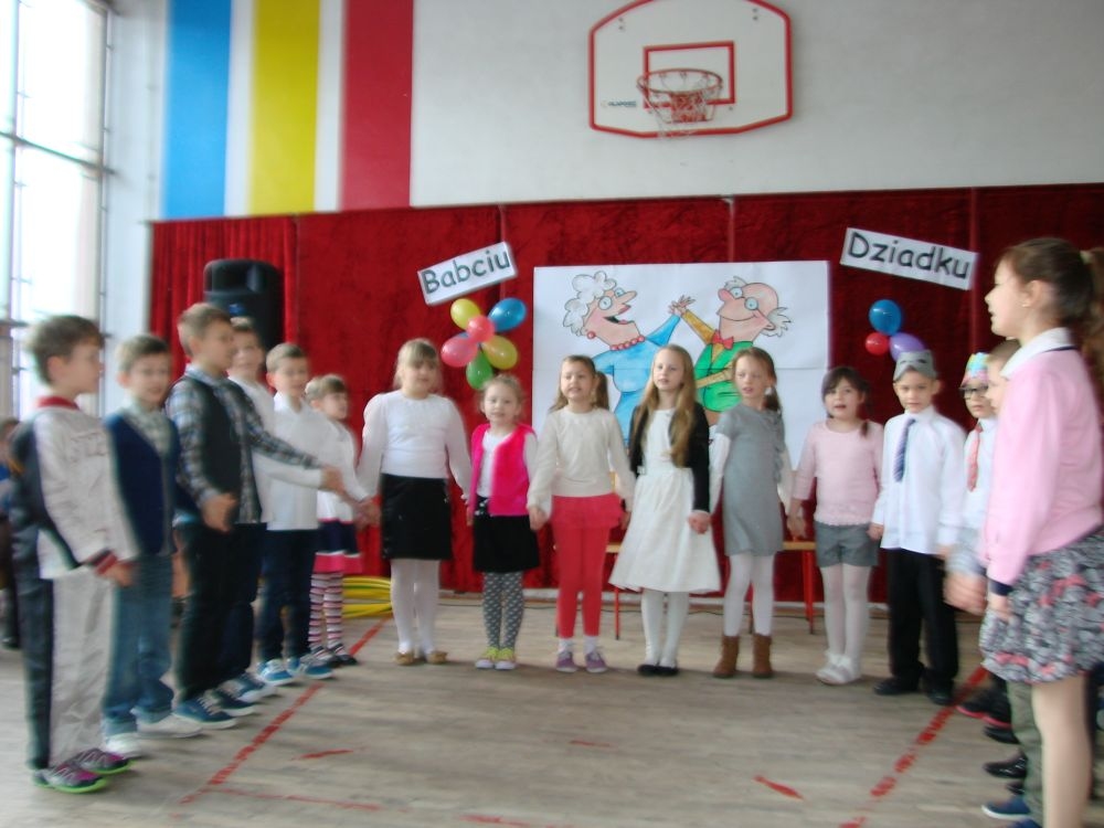 Mroźnego, ale słonecznego dnia styczniowego odbył się w naszej szkole- szkole w Kosarzyskach uroczysty Dzień Babci i Dziadka. Starsi nasi Goście przybyli z wzorową frekwencją. Nie zabrakło chyba nikogo, a wszystko po to, by zobaczyć trud swoich wnuczek i wnuczków, którzy przygotowywali się do tego dnia z wielkim zaangażowaniem. Prób było co niemiara, ale widać się opłaciło, bo spektakl w wykonaniu klas I-III, Zerówki oraz Przedszkolaków wypadł znakomicie. Dzieci uroczyły swoich wyśmienitych Przybyszy śpiewem, tańcami, wierszami. Nie zabrakło też w scenariuszu ról dla honorowych Gości, czyli dla Babi i Dziadka, którzy wspominali dawne, dobre minione czasy, gdzie jeździło się furmanką, pasło bydło, mieszkało w domu krytym strzechą.... Hola, hola... to chyba nie to pokolenie? Przecież dzisiejsze Babcie i Dziadkowie są tak nowocześni, że aż trudno uwierzyć , że kiedyś tak sobie żyli. W obecnych czasach, to niejedna Babcia czy Dziadek biegają z komórką w ręce, robią zdjęcia z przedstawienia swoich wnucząt, rozmawiają na gadu- gadu i skype. Czy lepiej było żyć kiedyś, czy dzisiaj? To już pozostawiamy do oceny każdemu indywidualnie. Jedno wiemy na pewno- życzymy naszym Babciom i Dziadkom wszystkiego, co najlepsze i oczywiście- życia 100 lat albo dłużej...