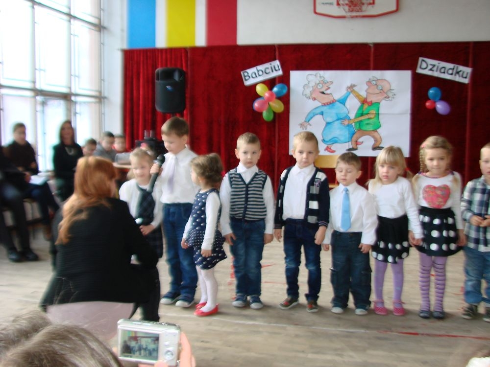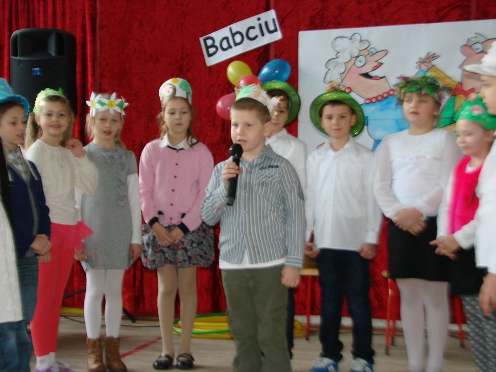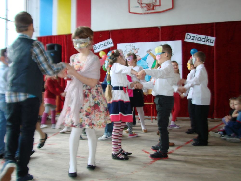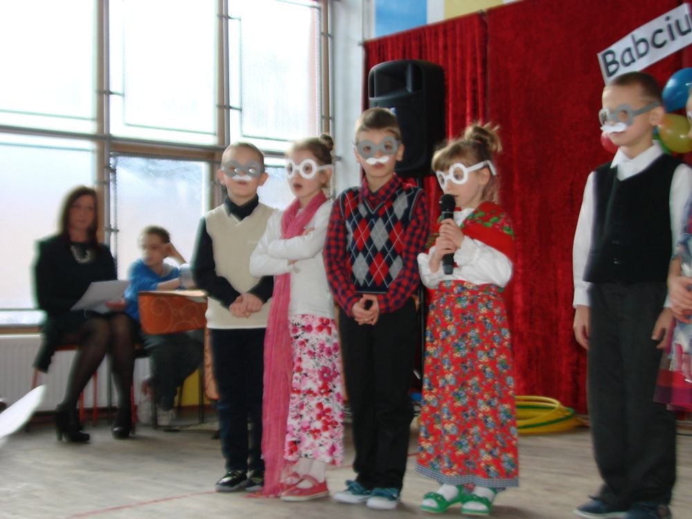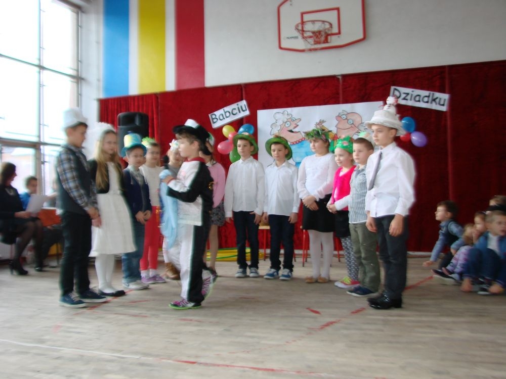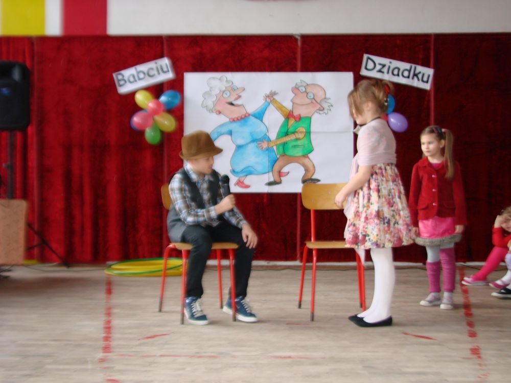 Mroźnego, ale słonecznego dnia styczniowego odbył się w naszej szkole- szkole w Kosarzyskach uroczysty Dzień Babci i Dziadka. Starsi nasi Goście przybyli z wzorową frekwencją. Nie zabrakło chyba nikogo, a wszystko po to, by zobaczyć trud swoich wnuczek i wnuczków, którzy przygotowywali się do tego dnia z wielkim zaangażowaniem. Prób było co niemiara, ale widać się opłaciło, bo spektakl w wykonaniu klas I-III, Zerówki oraz Przedszkolaków wypadł znakomicie. Dzieci uroczyły swoich wyśmienitych Przybyszy śpiewem, tańcami, wierszami. Nie zabrakło też w scenariuszu ról dla honorowych Gości, czyli dla Babi i Dziadka, którzy wspominali dawne, dobre minione czasy, gdzie jeździło się furmanką, pasło bydło, mieszkało w domu krytym strzechą.... Hola, hola... to chyba nie to pokolenie? Przecież dzisiejsze Babcie i Dziadkowie są tak nowocześni, że aż trudno uwierzyć , że kiedyś tak sobie żyli. W obecnych czasach, to niejedna Babcia czy Dziadek biegają z komórką w ręce, robią zdjęcia z przedstawienia swoich wnucząt, rozmawiają na gadu- gadu i skype. Czy lepiej było żyć kiedyś, czy dzisiaj? To już pozostawiamy do oceny każdemu indywidualnie. Jedno wiemy na pewno- życzymy naszym Babciom i Dziadkom wszystkiego, co najlepsze i oczywiście- życia 100 lat albo dłużej...