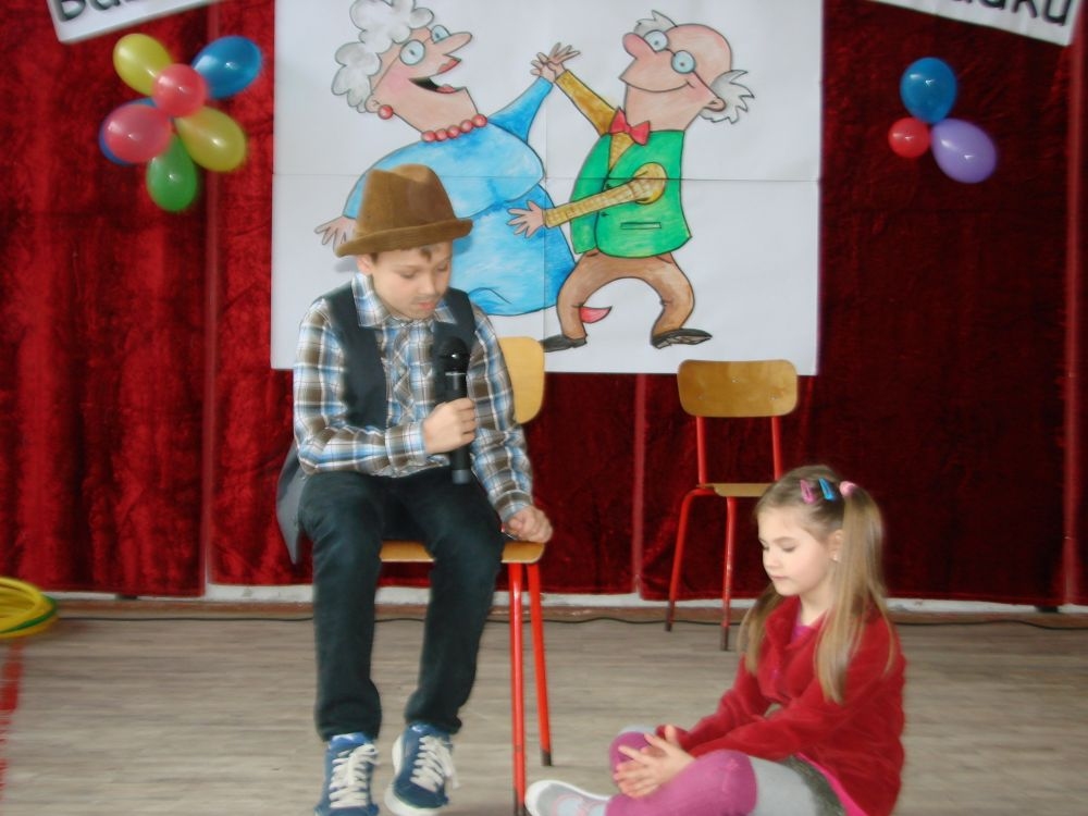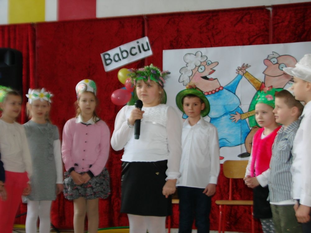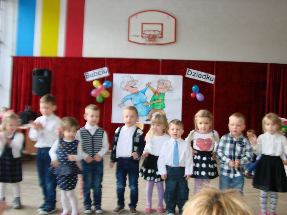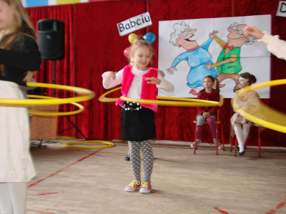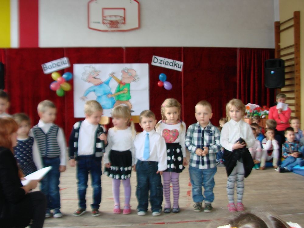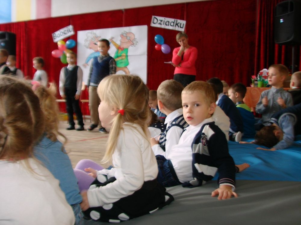 Mroźnego, ale słonecznego dnia styczniowego odbył się w naszej szkole- szkole w Kosarzyskach uroczysty Dzień Babci i Dziadka. Starsi nasi Goście przybyli z wzorową frekwencją. Nie zabrakło chyba nikogo, a wszystko po to, by zobaczyć trud swoich wnuczek i wnuczków, którzy przygotowywali się do tego dnia z wielkim zaangażowaniem. Prób było co niemiara, ale widać się opłaciło, bo spektakl w wykonaniu klas I-III, Zerówki oraz Przedszkolaków wypadł znakomicie. Dzieci uroczyły swoich wyśmienitych Przybyszy śpiewem, tańcami, wierszami. Nie zabrakło też w scenariuszu ról dla honorowych Gości, czyli dla Babi i Dziadka, którzy wspominali dawne, dobre minione czasy, gdzie jeździło się furmanką, pasło bydło, mieszkało w domu krytym strzechą.... Hola, hola... to chyba nie to pokolenie? Przecież dzisiejsze Babcie i Dziadkowie są tak nowocześni, że aż trudno uwierzyć , że kiedyś tak sobie żyli. W obecnych czasach, to niejedna Babcia czy Dziadek biegają z komórką w ręce, robią zdjęcia z przedstawienia swoich wnucząt, rozmawiają na gadu- gadu i skype. Czy lepiej było żyć kiedyś, czy dzisiaj? To już pozostawiamy do oceny każdemu indywidualnie. Jedno wiemy na pewno- życzymy naszym Babciom i Dziadkom wszystkiego, co najlepsze i oczywiście- życia 100 lat albo dłużej...
