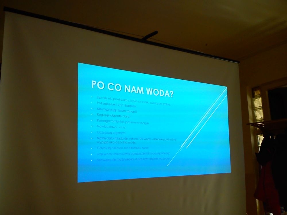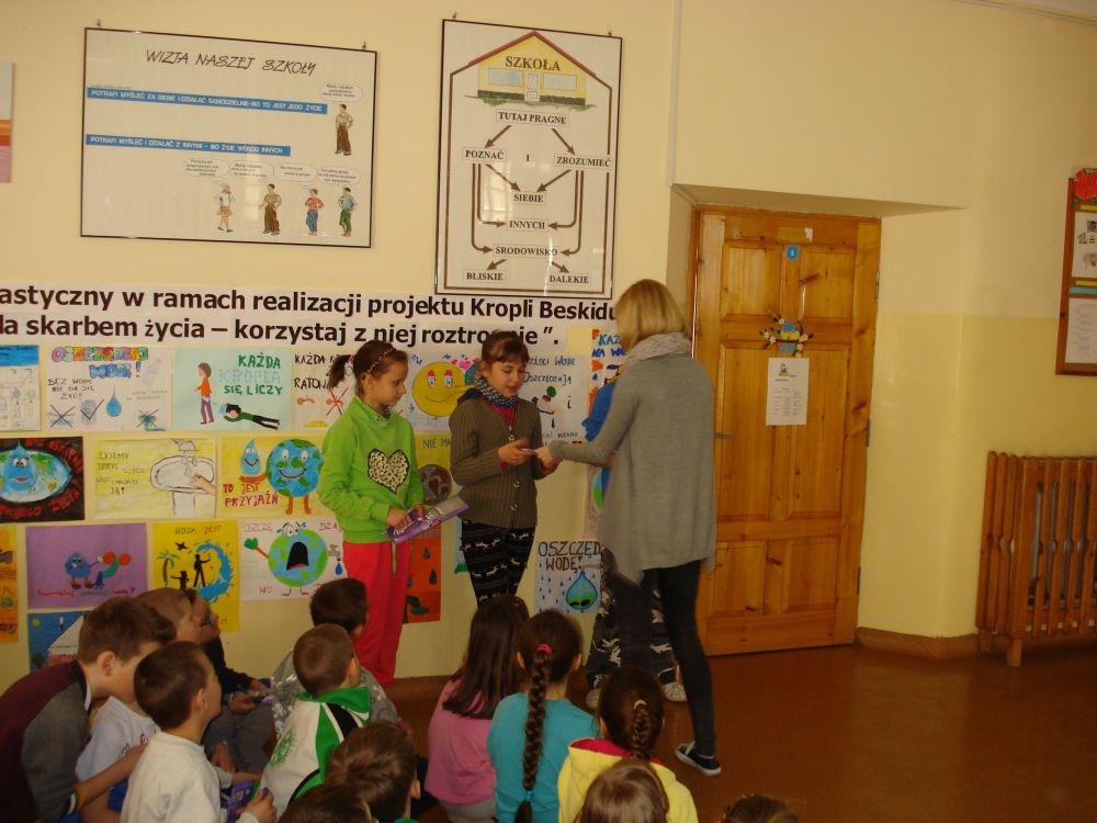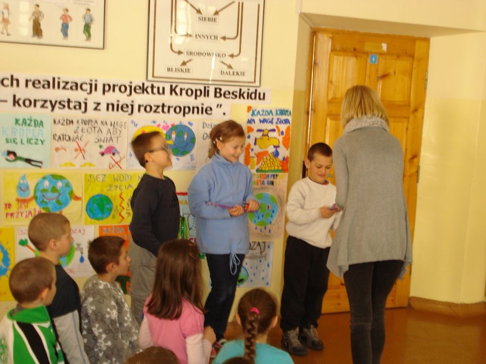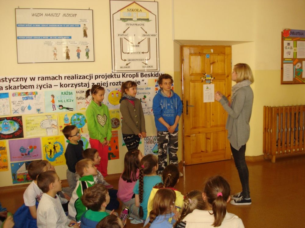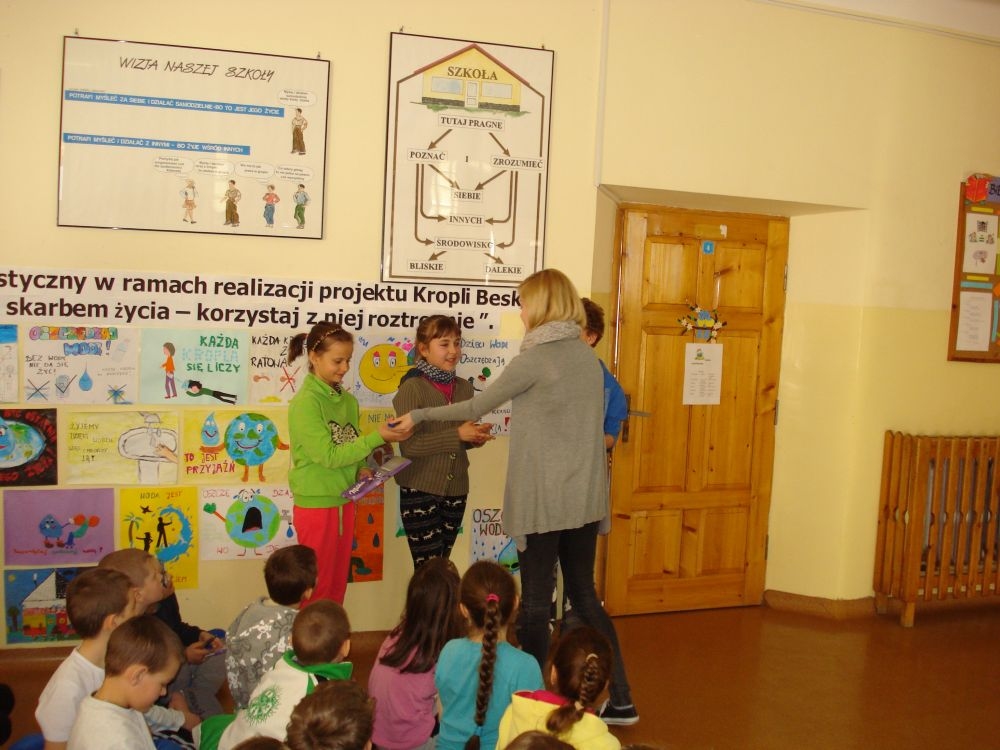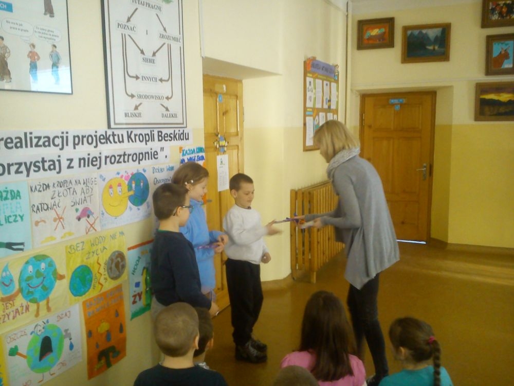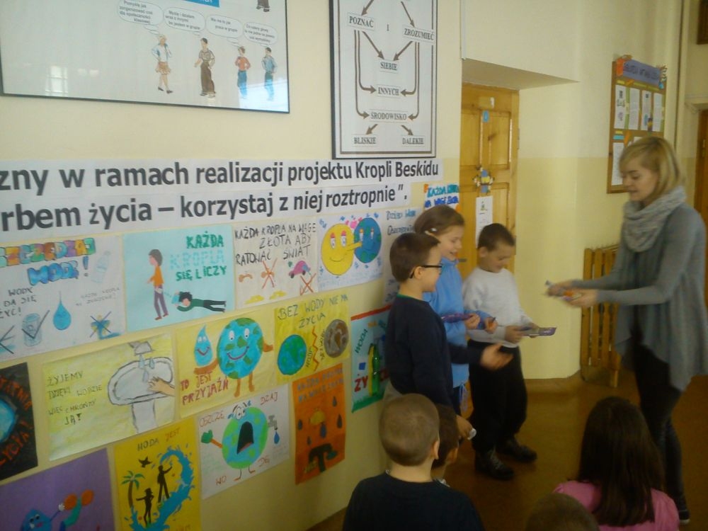 W dniu 20.03.2015 r. w naszej szkole odbyła się prezentacja przygotowana przez p. Karolinę Król na temat oszczędzania wody. Uczniowie poszerzyli swoją wiedzę na temat zasobów wodnych i ilości zużywanej wody. Poznali też sposoby jak powinniśmy racjonalnie gospodarować wodą. Po zakończeniu odbył się konkurs ,który sprawdzał wiedzę uczniów. Przeprowadzony był dla uczniów klas I-III i IV-VI.