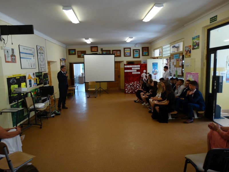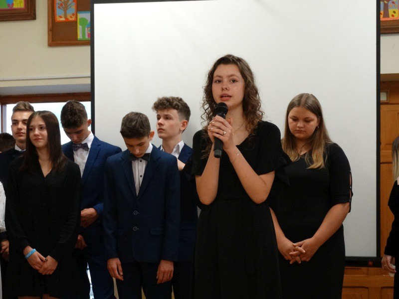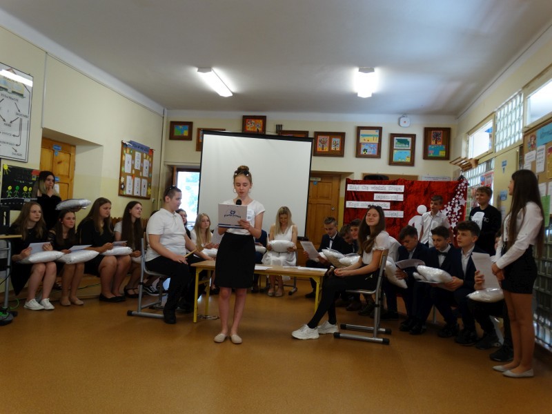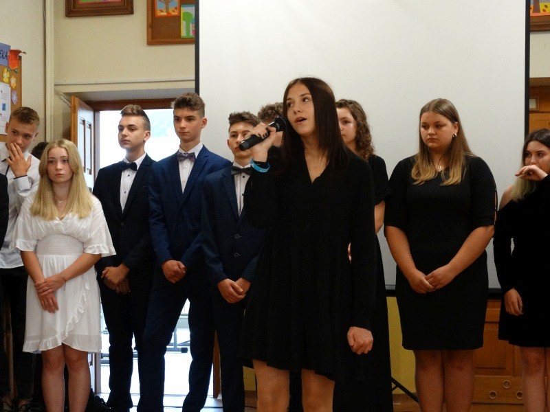 Spotykamy się dzisiaj by uroczyście pożegnać naszych absolwentów szkoły. Jest to wyjątkowy dzień w ich życiu bo po 8 latach edukacji szkolnej jak to się mówi potocznie opuszczą nasze mury szkolne. Były to lata, które pozostaną im w pamięci a szczególnie te ostatnie 2 lata wbija się w mocno w pamięć przez tzw. pandemię i wirus Sars Cov 2,który spowodował ogromne zamieszanie w naszym życiu.