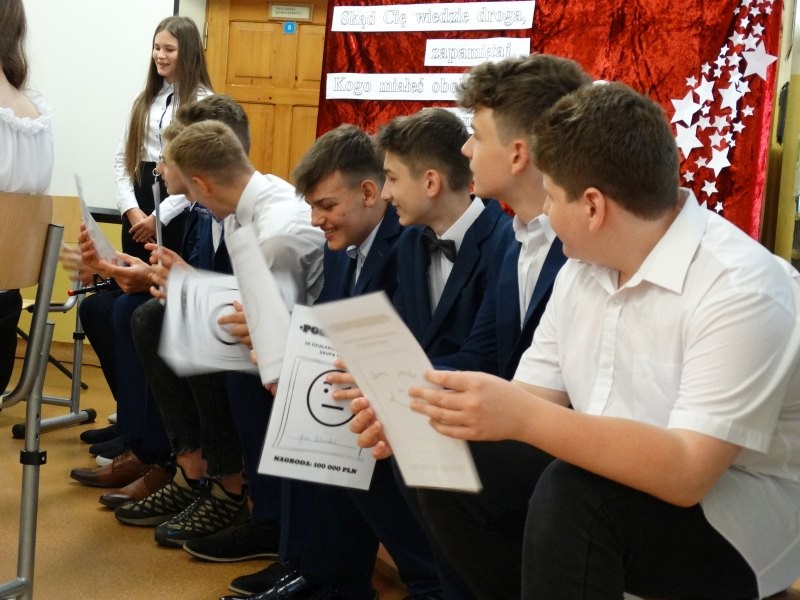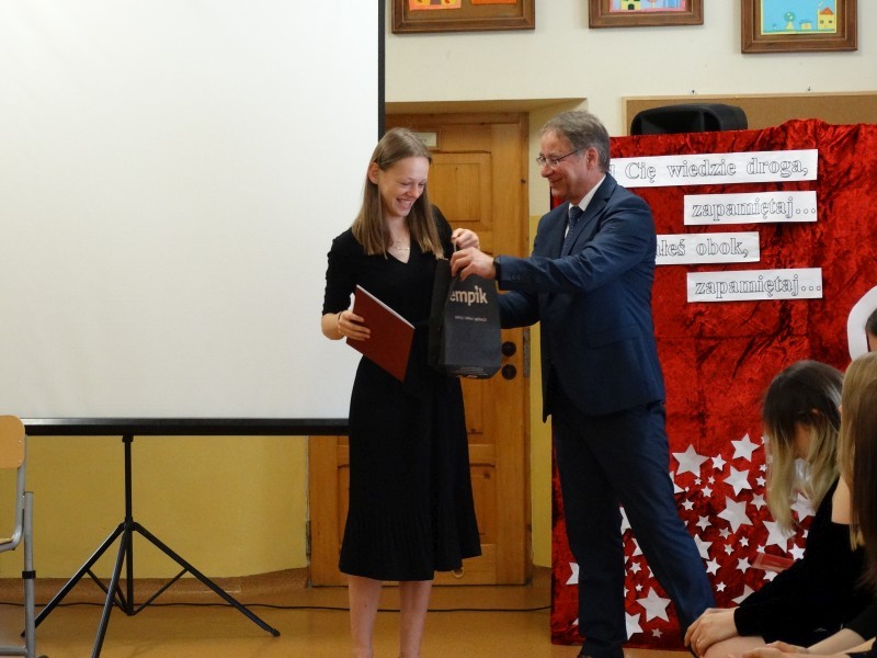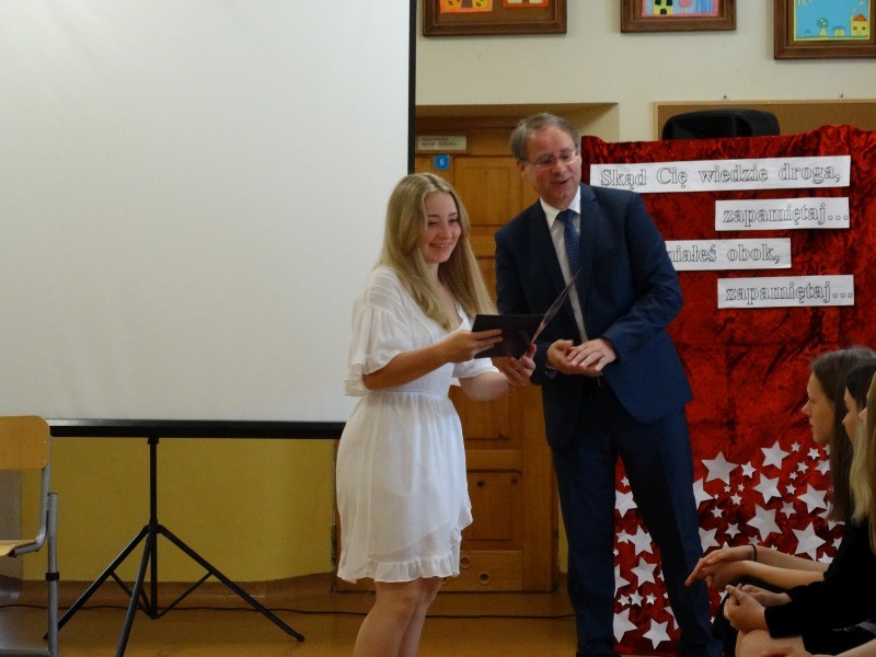 Otrzymacie świadectwa szkolne i nagrody książkowe za swoje wyniki w nauce. Gratuluję każdemu z Was bo wszyscy otrzymujecie promocje i stajecie się absolwentami szkoły. Stajecie także przed wyborem co do Waszej nowej drogi życiowej czyli kim chcecie być na przyszłość i jaki zawód wykonywać. Być może będzie to liceum ,technikum albo szkoła branżowa. W dalszej przyszłości być może studia kierunkowe. Życzę Wam aby Wasze marzenia się spełniły.