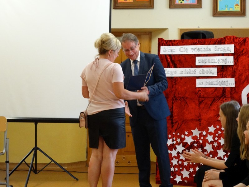Podziękowania składam też wszystkim rodzicom za zaangażowanie przez te lata szkolne wtedy kiedy nas wspierali w różnych działaniach szkolnych - imprezach okolicznościowych, akademiach, festynach. Dziękuję też za te ostatnie 2 lata, które wymagały od nich wiele wysiłku i motywacji by przekonać swoje dzieci do nauki i systematyczności.