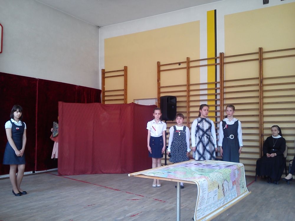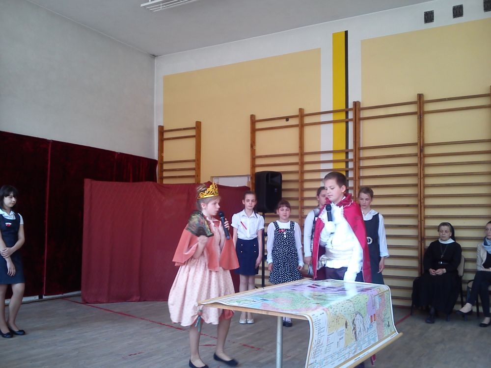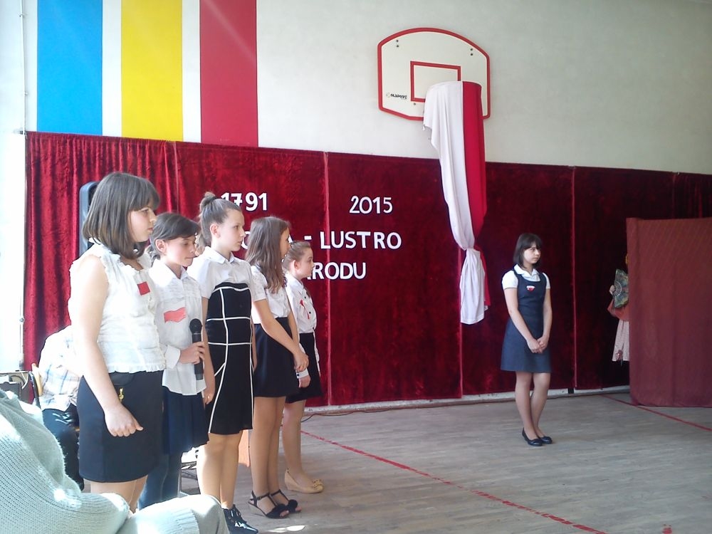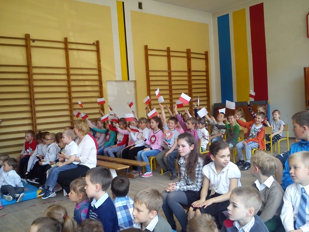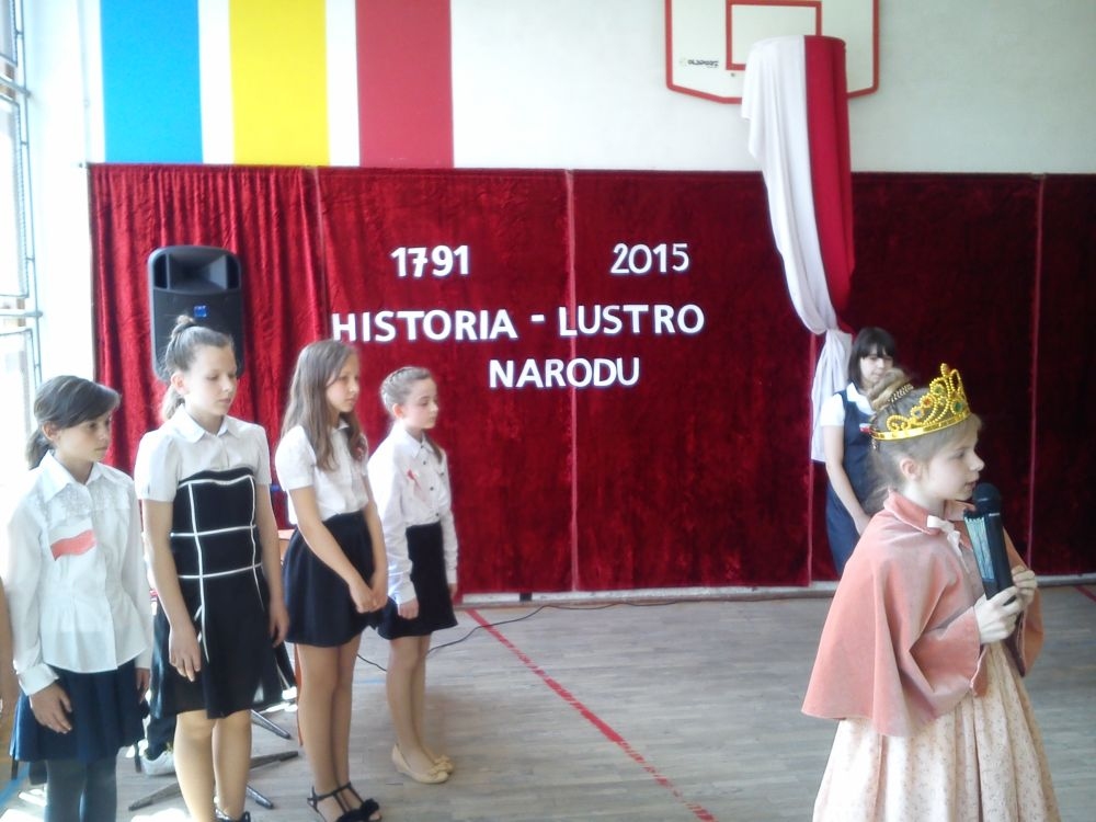 30 kwietnia - jak co roku – uczniowie naszej szkoły uroczystą akademią uczcili kolejną rocznicę uchwalenia Konstytucji 3 – go Maja. Motto imprezy brzmiało: „Historia – lustro narodu”. Uczniowie klas IV – VI przybliżyli szkolnej społeczności fragment dziejów Polski, dotyczący okresu zaborów oraz powołania do życia Konstytucji 3 – go Maja. Na scenie pojawili się: caryca Katarzyna, król pruski Fryderyk oraz ambasador rosyjski. Aktorzy byli ubrani w charakterystyczne dla epoki kostiumy, które przygotowali przy pomocy rodziców. Teksty wygłaszane przez uczniów zostały dopełnione scenkami dramowymi i utworami muzycznymi, niosącymi głębokie przesłanie. Wśród melodii znalazły się współczesne piosenki takich zespołów jak: Róże Europy, Raz, Dwa, Trzy.