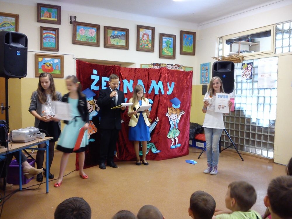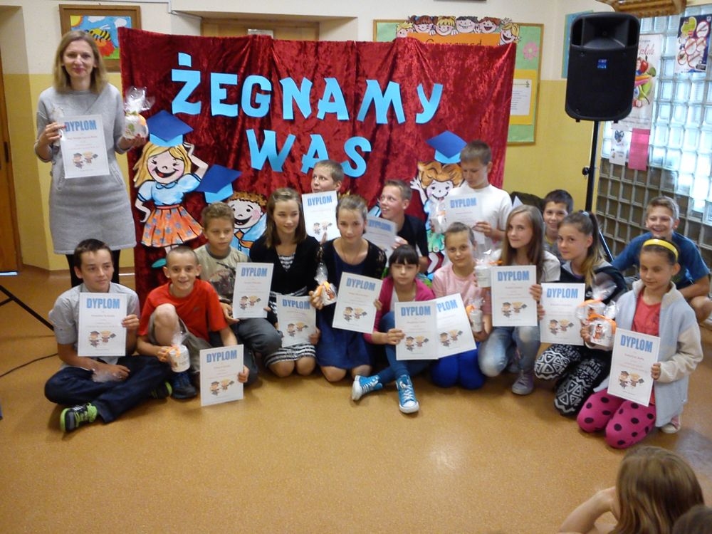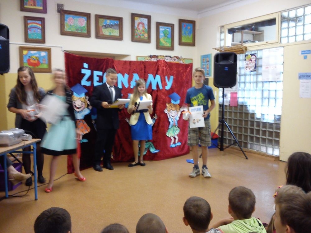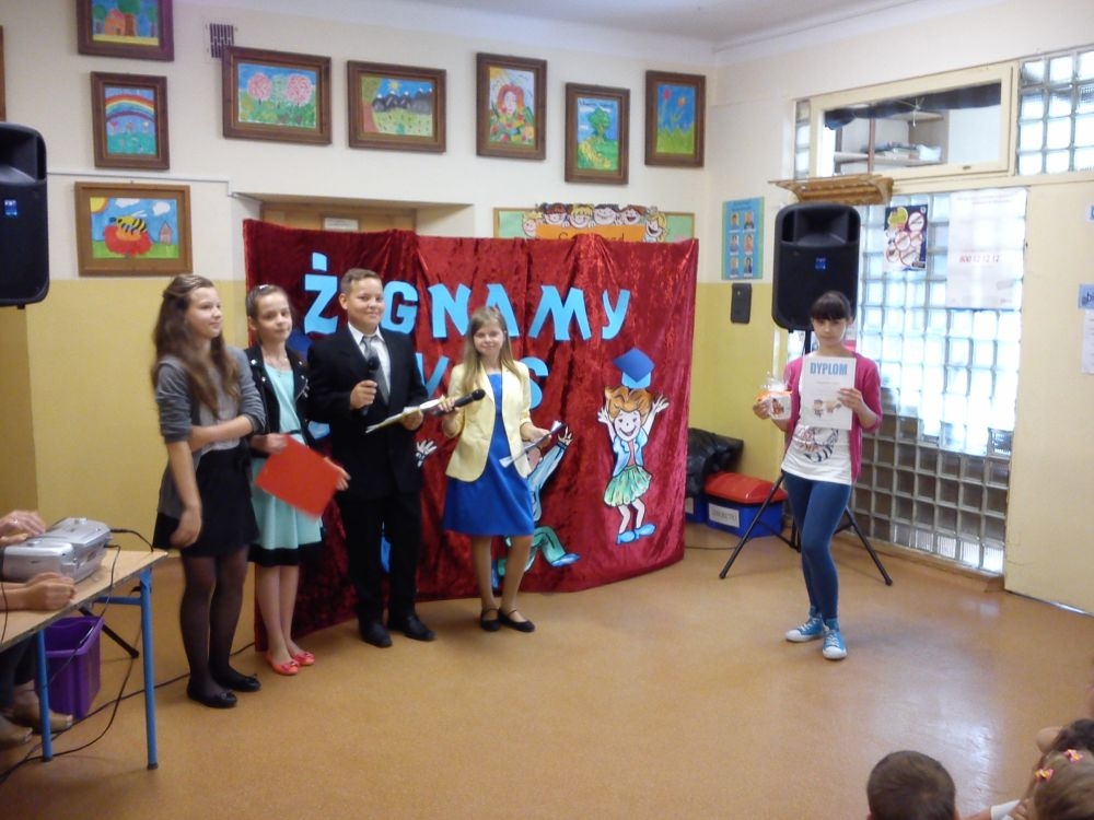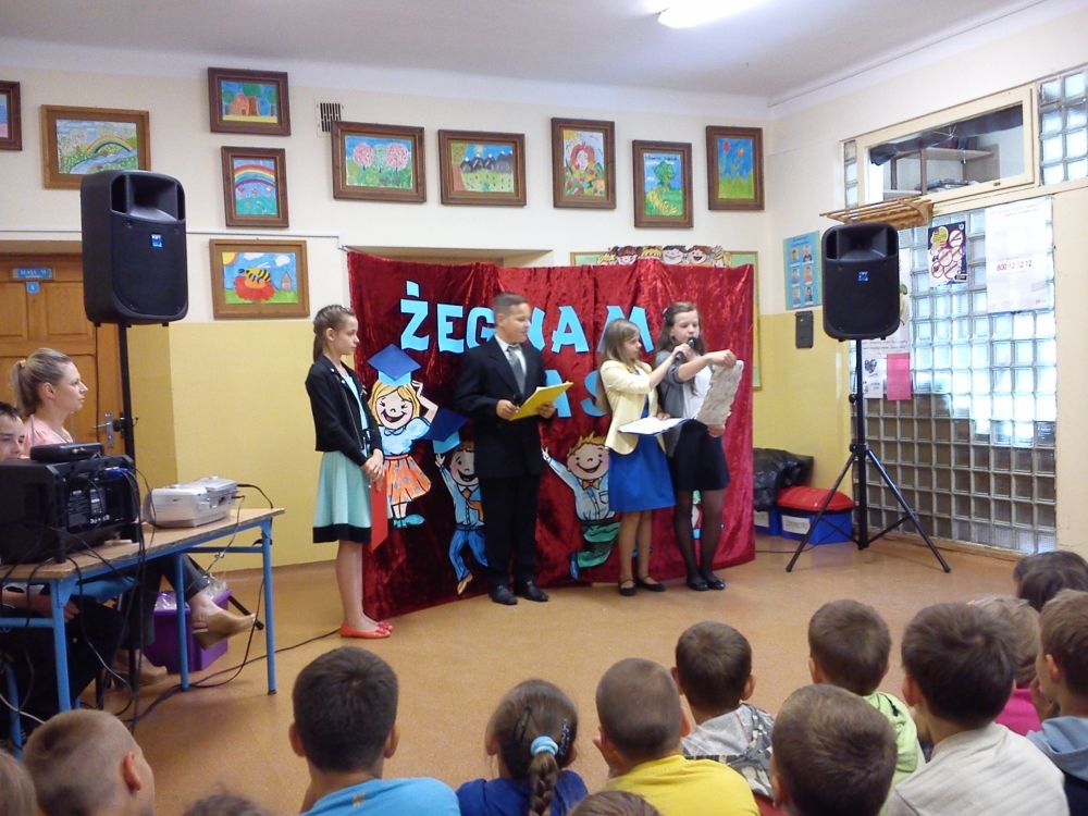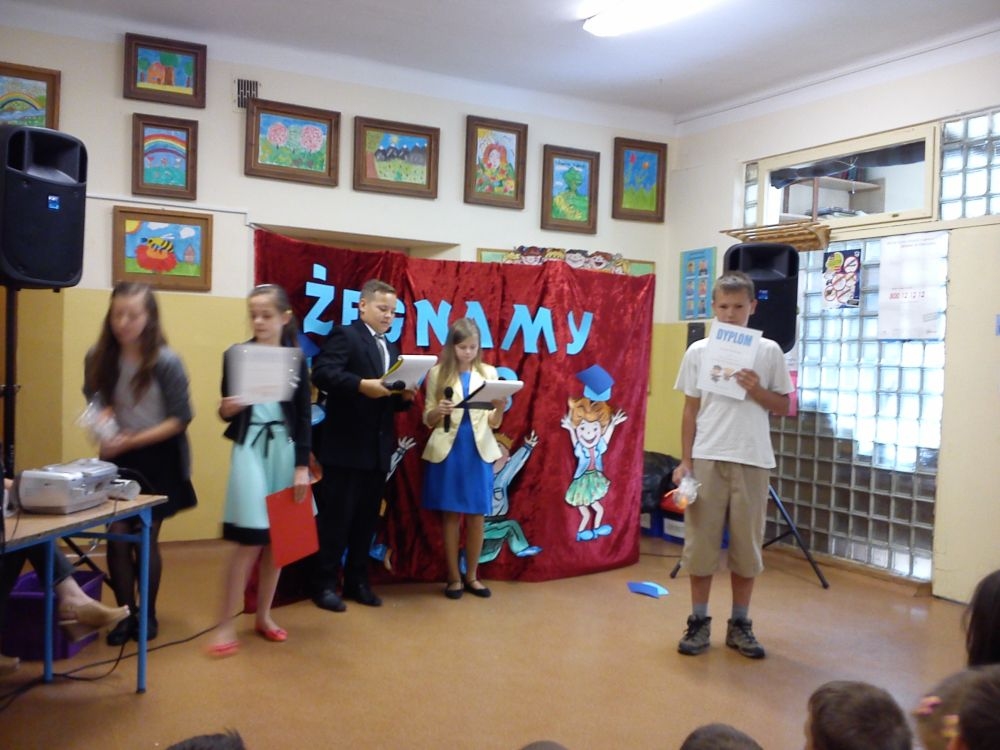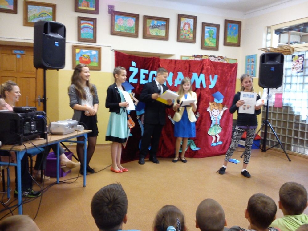 Ach, jak nam żal, że odchodzą. Tak ich polubiliśmy! Tyle już umieją! Lecz taka rzeczy kolej, że teraz gimnazjum na nich czeka. Tacy już dorośli i mądrzy! A my? Pożegnaliśmy ich godnie.