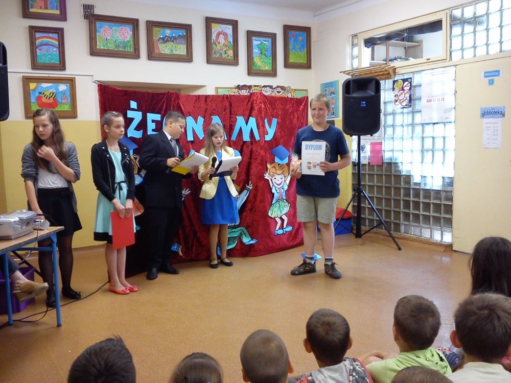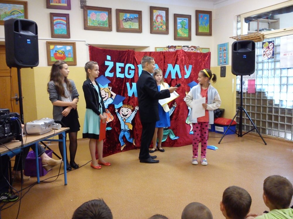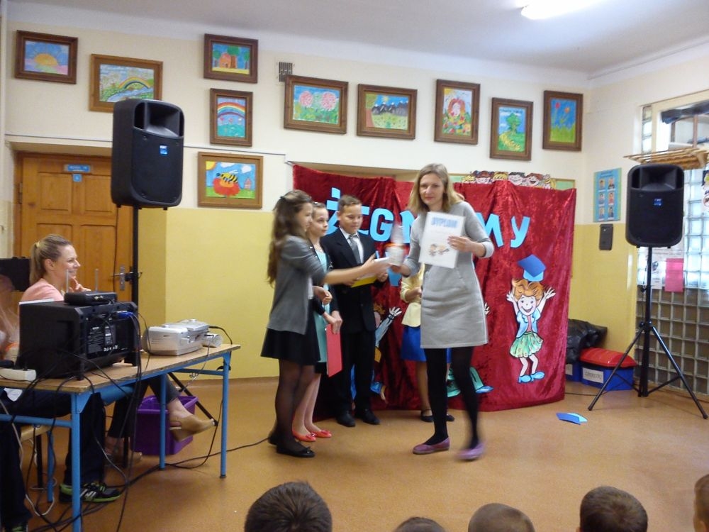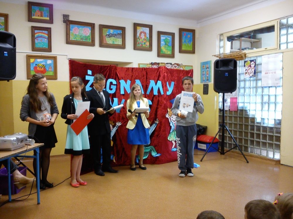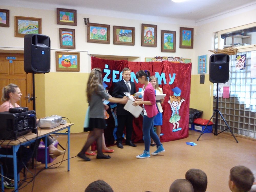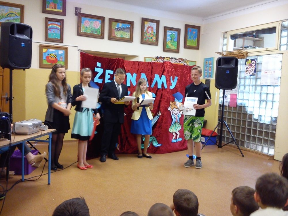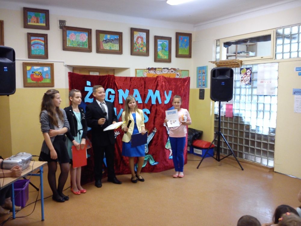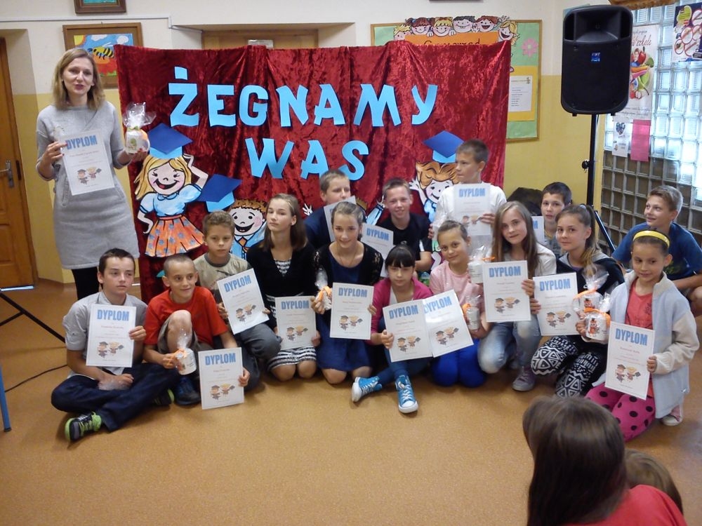 Ach, jak nam żal, że odchodzą. Tak ich polubiliśmy! Tyle już umieją! Lecz taka rzeczy kolej, że teraz gimnazjum na nich czeka. Tacy już dorośli i mądrzy! A my? Pożegnaliśmy ich godnie.