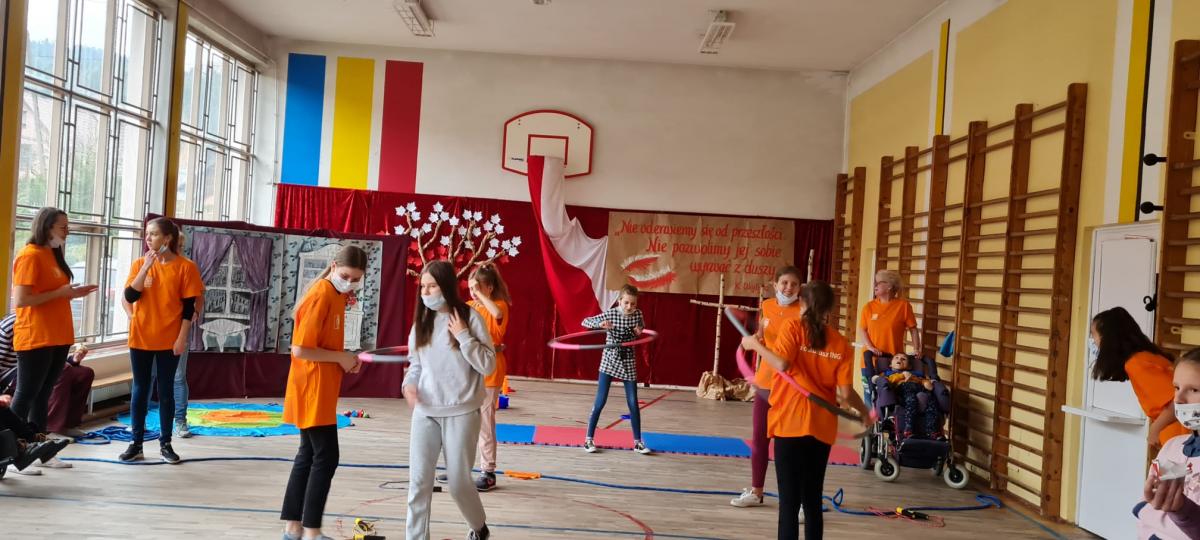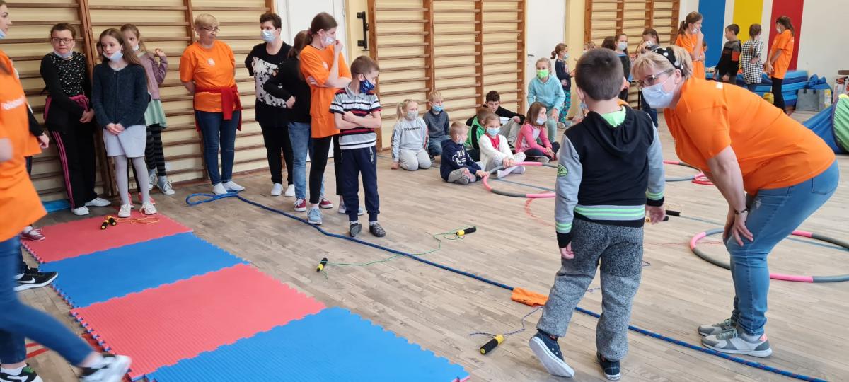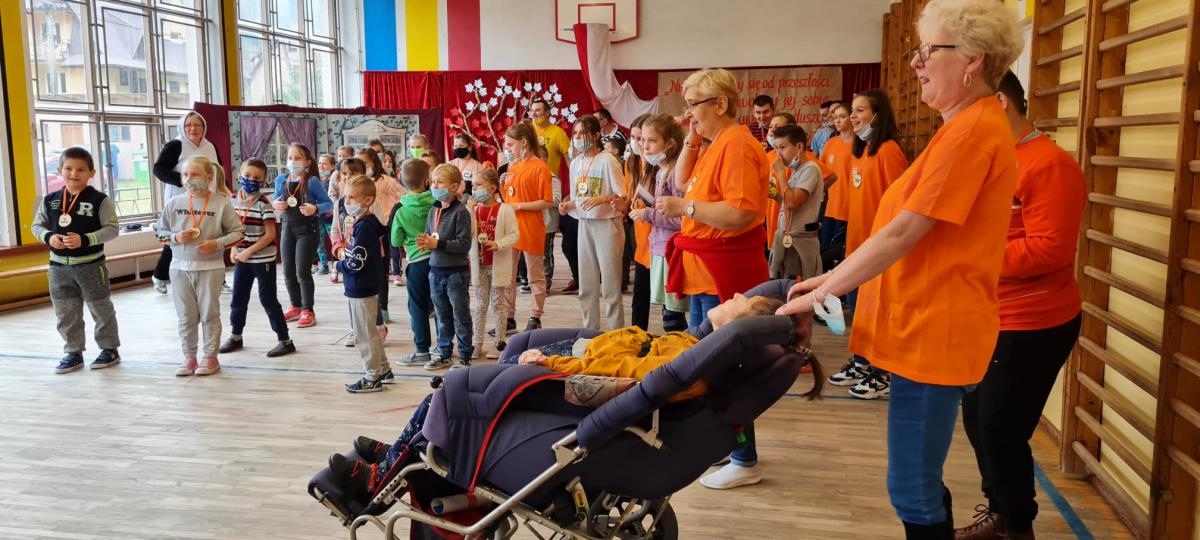 Nasza szkoła gościła podopiecznych z wyżej wymienionego Stowarzyszenia na sali gimnastycznej i integrowała się z nimi pomagając w organizacji konkursu. Dyrektor Szkoły powitał wszystkich zebranych i życzył miłej zabawy i sportowej rywalizacji.Wszyscy byli wygranymi.Wzięły w nim udział klasy młodsze I-III wraz z wychowawcami i uczniowie – przedstawiciele klas IV-VIII. To była bardzo dobra lekcja wolontariatu na rzecz innych osób.