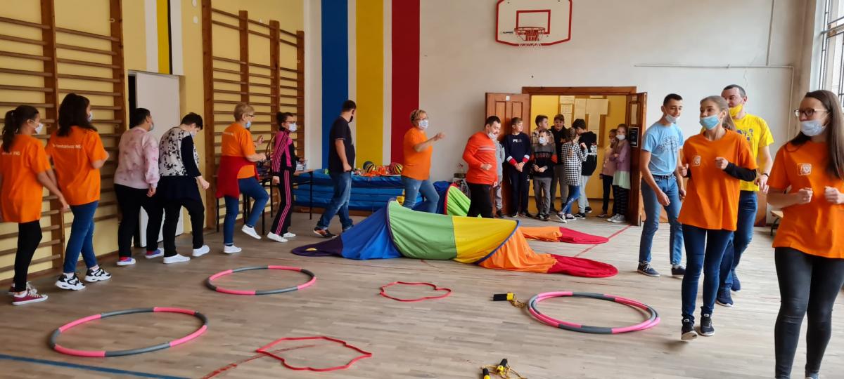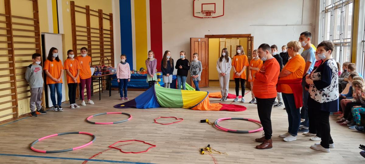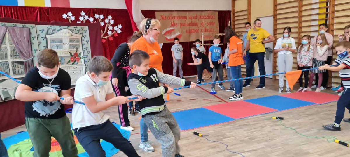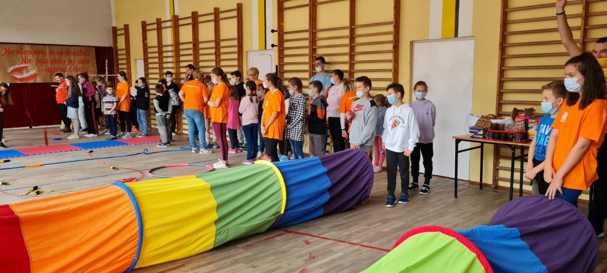Wydarzenie sportowe, które zintegrowało uczestników- uczniów szkoły podstawowej w Kosarzyskach, oraz podopiecznych Stowarzyszenia "Nasz Dom"