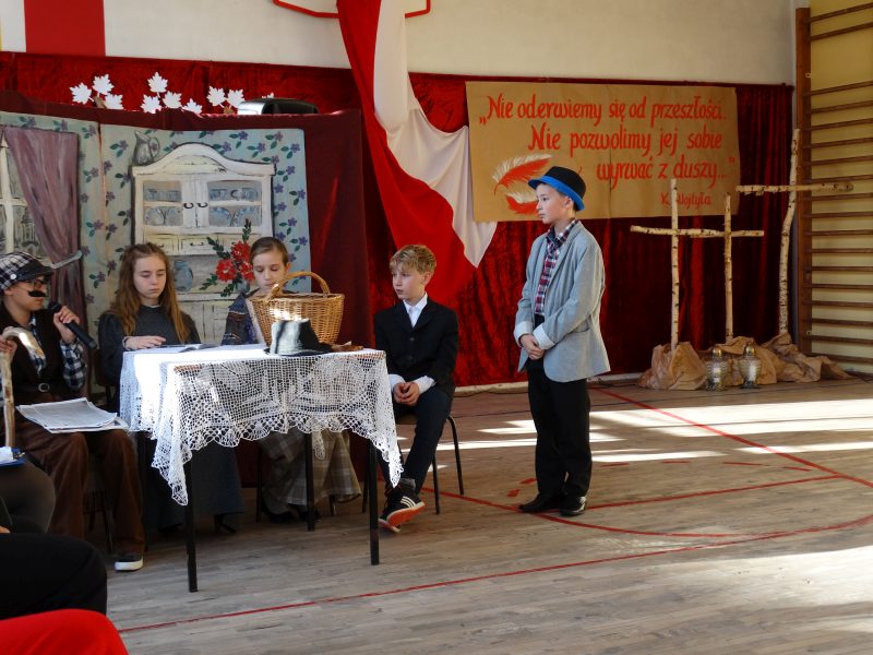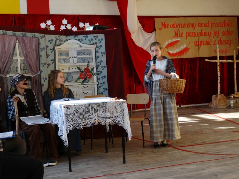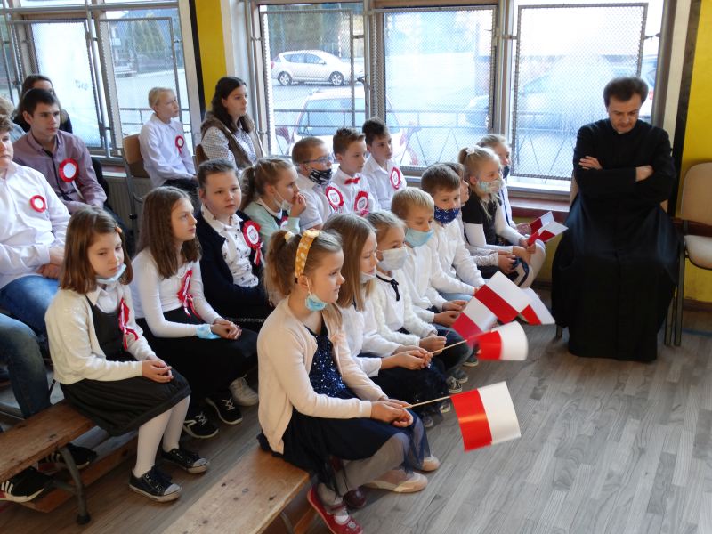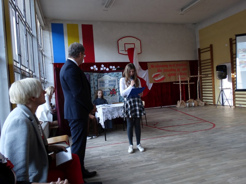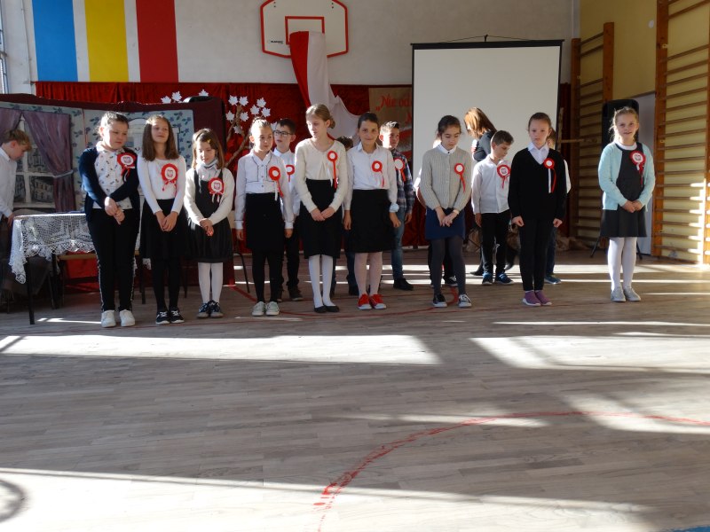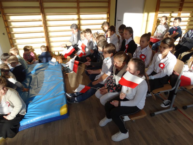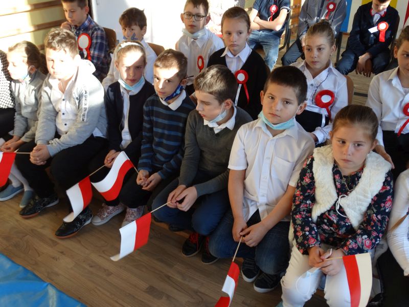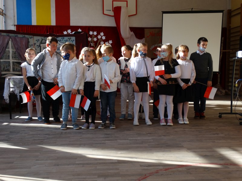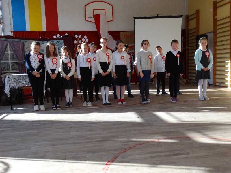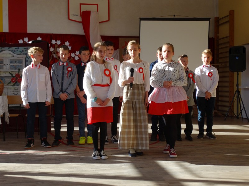 11 listopada obchodzimy Święto Niepodległości. Tradycyjnie, jak co roku, społeczność Szkoły Podstawowej w Kosarzyskach aktywnie włączyła się w obchody 103 rocznicy odzyskania przez Polskę niepodległości. Dzień ten świętowaliśmy w poczuciu radości i dumy. Cała społeczność szkolna przyszła w tym dniu ubrana na galowo, aby podkreślić ważność uroczystości. Wychowawcy zadbali również o dodatkowe elementy - kotyliony, flagi, czy wstążeczki w kolorach biało – czerwonych. Całą uroczystość rozpoczęliśmy wspólnie odśpiewanym Mazurkiem Dąbrowskiego. Następnie na tle kolorowej dekoracji mogliśmy zobaczyć, jak mali aktorzy z zaangażowaniem wcielają się w swoje role. W sposób jasny i zrozumiały, odgrywając różne scenki, przedstawiły drogę naszego kraju do niepodległości. Obrazowo nawiązywały do zniewolenia Polski przez zaborców, a jednocześnie pokazały walkę i chęć bycia wolnym. Wspaniała gra aktorska i stroje zrobiły oszałamiające wrażenie. W powietrzu czuć było dumę i radość tych najmłodszych z bycia Polakiem. Między scenkami mogliśmy usłyszeć słowa „Roty” zaśpiewanej przez Agnieszkę zanosząc błaganie: „Tak nam dopomóż Bóg" oraz wykonaną przez Zosię pieśń „Rozkwitały pąki białych róż”. Po czym obejrzeliśmy pokaz multimedialny przedstawiający 123 lata rozbiorów i drogę Polski do niepodległości. Następnie odbył się krótki Festiwal Piosenki Patriotycznej, w którym wzięli udział wszyscy uczniowie klas I - VIII. Repertuar spotkania był bardzo różnorodny. Uczniowie śpiewali pieśni artystyczne, patriotyczne i legionowe. Głos zabrał również Pan Dyrektor Marian Dobosz, który podkreślił znaczenie i ważność listopadowego święta. Wspomniał też o symbolu miłości do ojczyzny, walki o wolność, czy symbolu wiary i zwycięstwa.