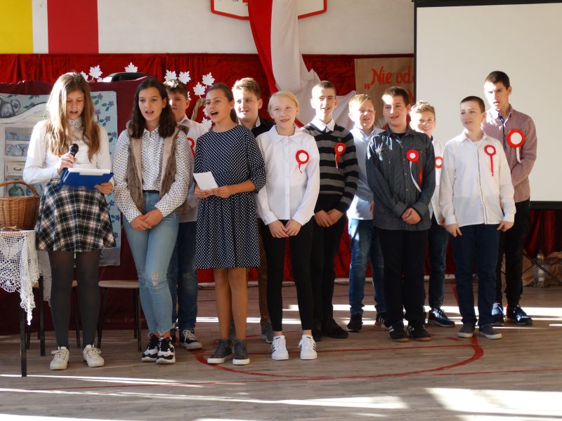 Włączyliśmy się również w ogólnopolską akcję „Szkoła do hymnu”. O godz. 11.11 każda klasa odśpiewała czterozwrotkowy hymn państwowy w hołdzie dla Niepodległej Ojczyzny. Śpiewaliśmy wspólnie z uczniami od Bałtyku po szczyty gór, w malutkich wsiach i największych metropoliach. Po raz kolejny pokazaliśmy, że jesteśmy dumni z tego, iż jesteśmy Polakami!