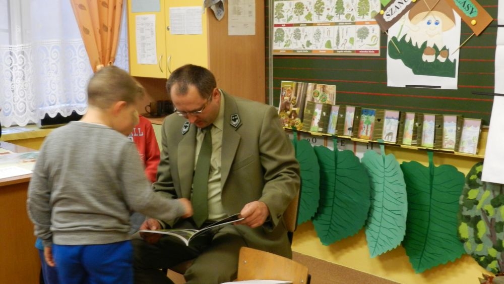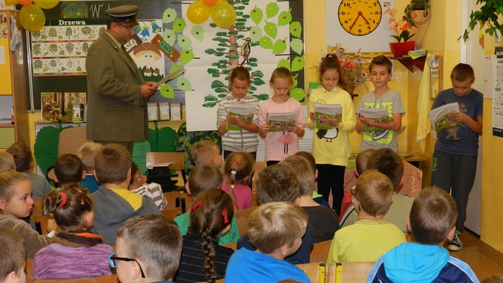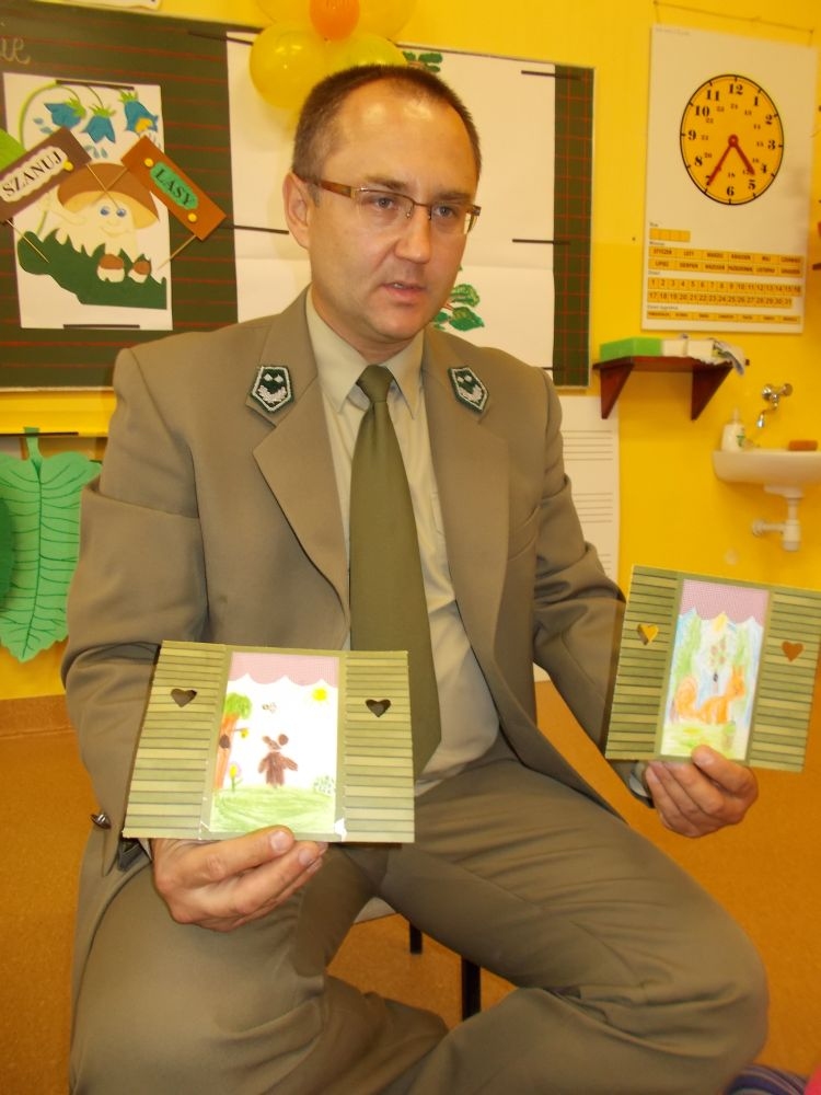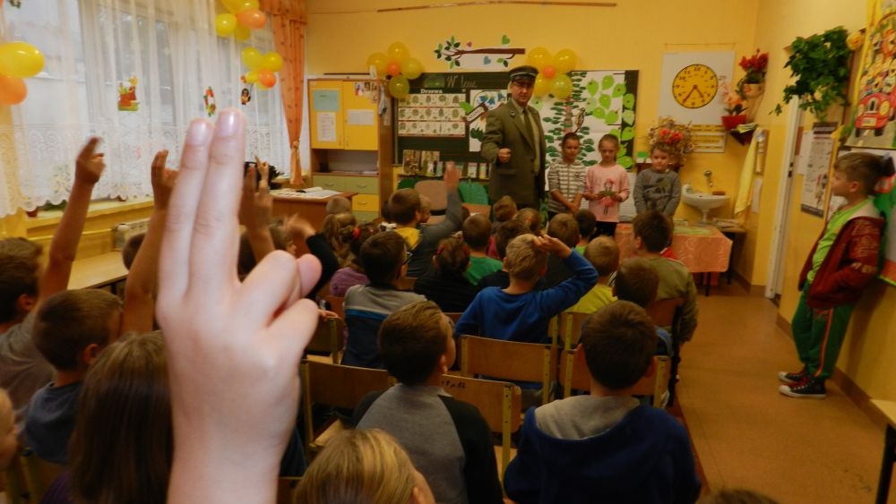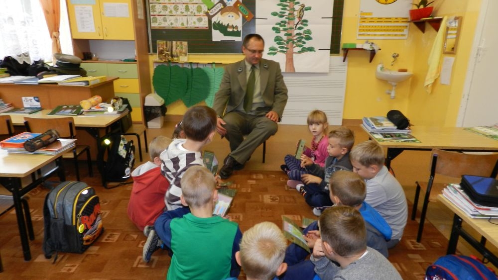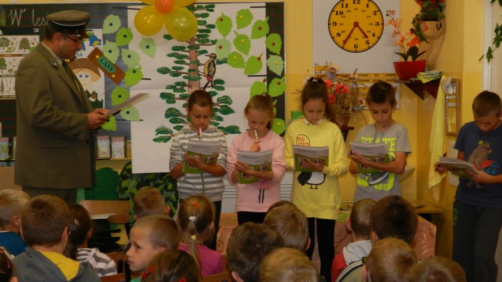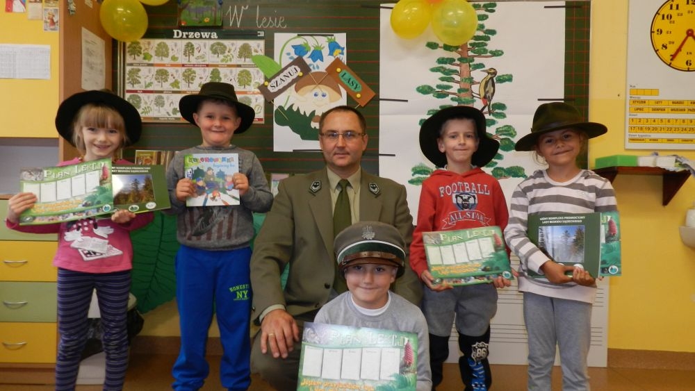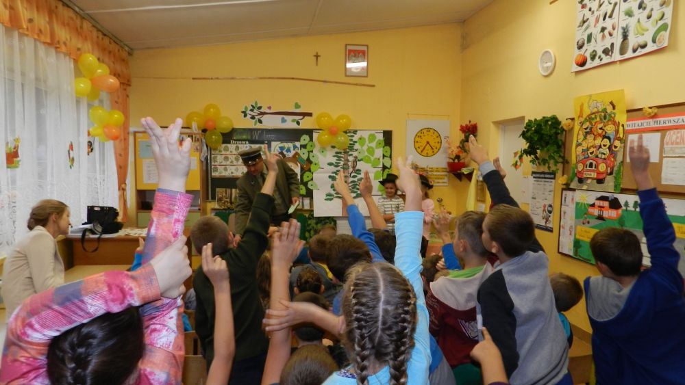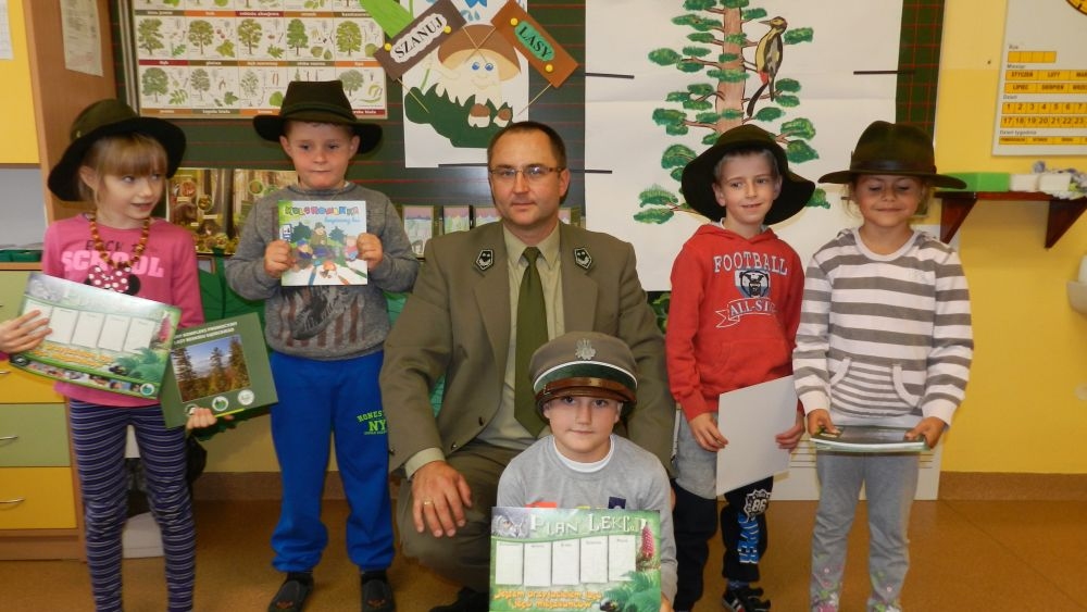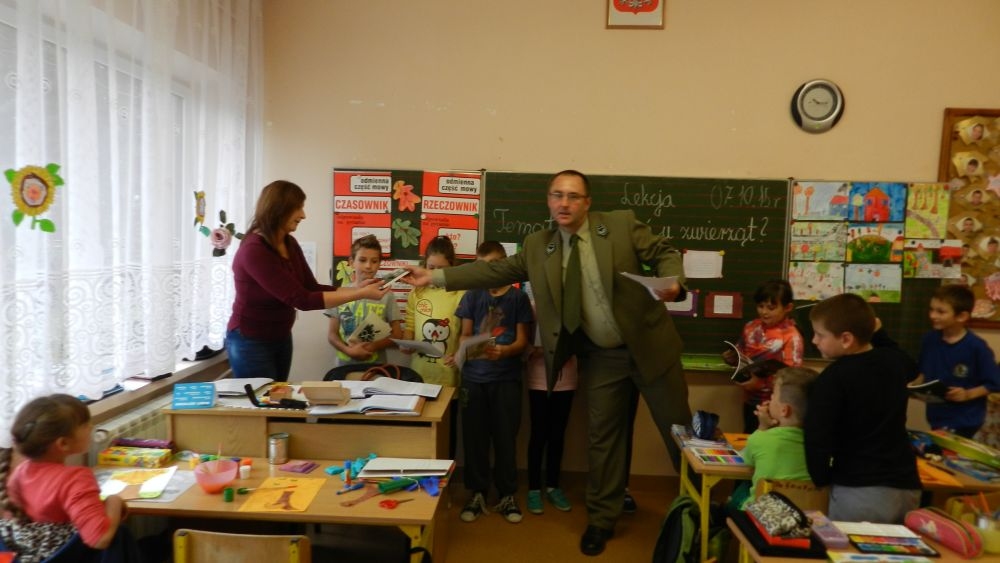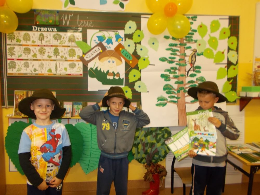 W październikowy poranek do szkoły w Kosarzyskach zawitał leśnik- Roman Rams. Wprowadził On uczniów klas I, II, III w świat tajników nadpopradzkiej przyrody, bliskiej dzieciom ze względu na zamieszkanie, ale jeszcze nie do końca zgłębionej przez małych przyrodników. Pan Roman Rams opowiedział dzieciom o lesie, jego walorach przyrodniczych, korzyściach jakie niesie dla człowieka i innych organizmów żywych. W pogadankę aktywnie angażowali się uczniowie, na żywo zadając pytania lub udzielając odpowiedzi na leśne zagadki. Kiedy dzieci zapoznały się z walorami lasu i umiały wyjaśnić, co znaczy, że „las jest przyjacielem człowieka”, przyszedł czas, by zastanowić się, co my ludzie, możemy uczynić, by odwdzięczyć się przyrodzie, lasowi za okazywane dobra i korzyści, jakie czerpiemy za jego pośrednictwem . Dzieci jednomyślnie stwierdziły, że chcą i będą przyjaciółmi lasu i wiedzą już, jak to zrobić. Po przeprowadzeniu zajęć edukacyjnych, dzieci wzięły udział w konkursach. Dla uczniów klasy I i II leśnik przygotował pytania w formie zagadek, które ukryte były na odwrocie kwiatów i jesiennych liści. Maluchy radziły sobie wyśmienicie z rymowanymi zagadkami. Dla dzieci starszych został przygotowany pisemny quiz, z trudniejszymi pytaniami. By złapać przysłowiowy i dosłowny oddech, uczniowie wyruszyli na zajęcia w terenie. Warsztaty leśne dały możliwość poznania etapów powstawania lasu i poznania trudu, jaki trzeba włożyć w to, by ludzie mogli korzystać i cieszyć się jego wieloaspektowymi walorami. Na spotkaniu w terenie, dzieci wielozmysłowo poznawały las, poprzez dotyk, węch, słuch i wzrokowe podziwianie przyrody. Uczniowie rozróżniali także gatunki drzew po ich korze, liściach i owocach. Poprzez leśne poszukiwania, pogadanki, pytania i odpowiedzi uczniowie zrozumieli sens cyklu powstawania lasu : „od nasionka do nasionka”. Po terenowych wojażach uczniowie powrócili do szkoły, gdzie ogłoszone zostały wyniki przeprowadzonych konkursów przyrodniczych. Ci najlepsi zostali uhonorowani nagrodami książkowymi, kolorowankami, notesami i gadżetami, przekazanymi przez Nadleśnictwo Piwniczna. Również nasz leśny edukator- Roman Rams został nagrodzony przez dzieci gromkimi brawami oraz własnoręcznie przygotowanymi „oknami na las”- które po rozchyleniu okiennic skrywały piękne krajobrazy naszej okolicy.