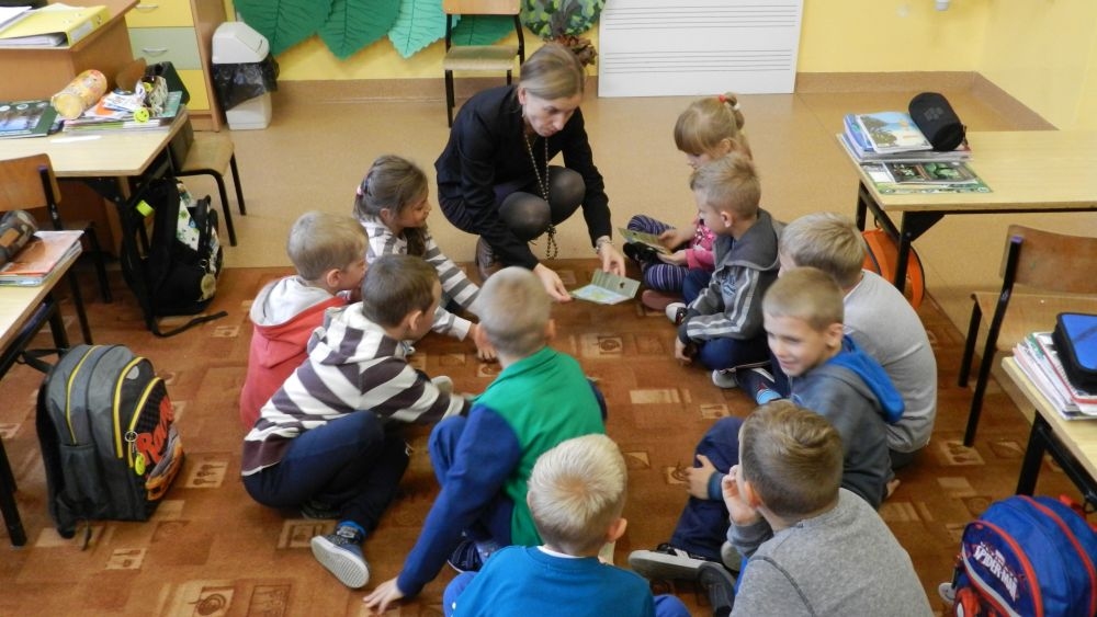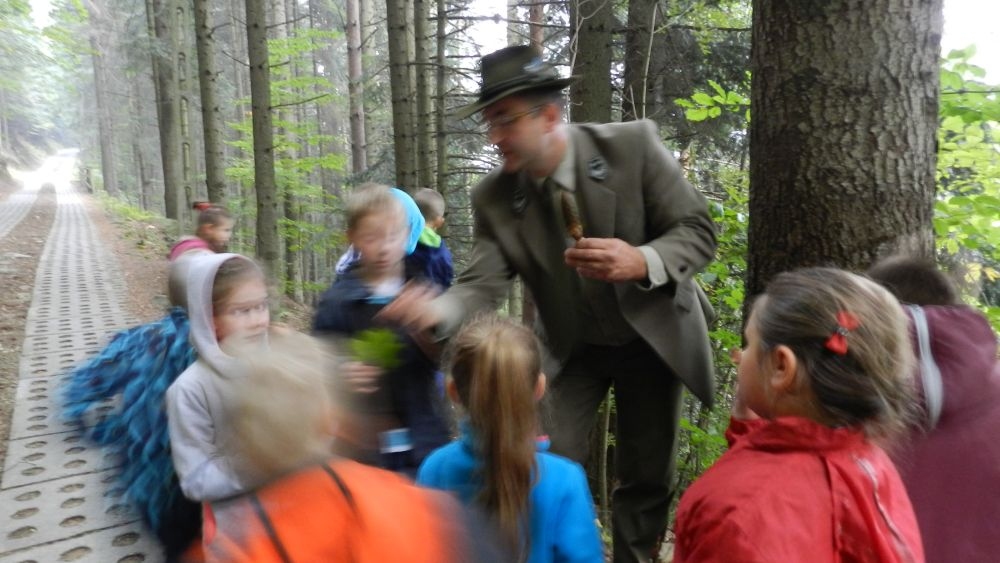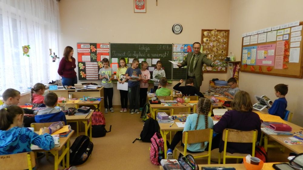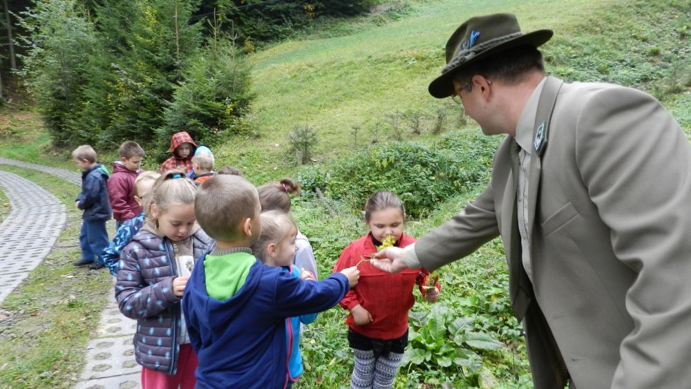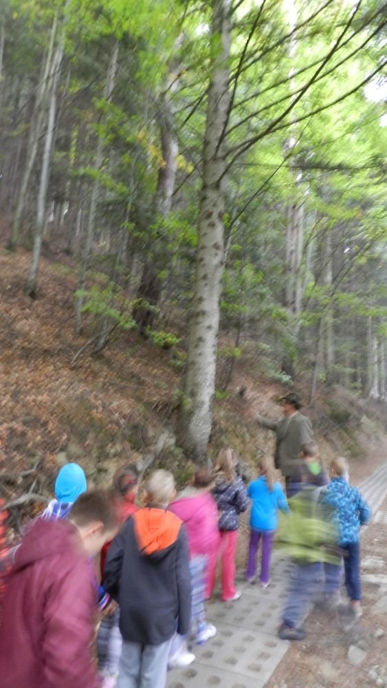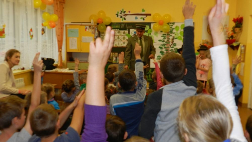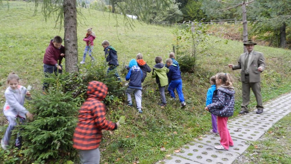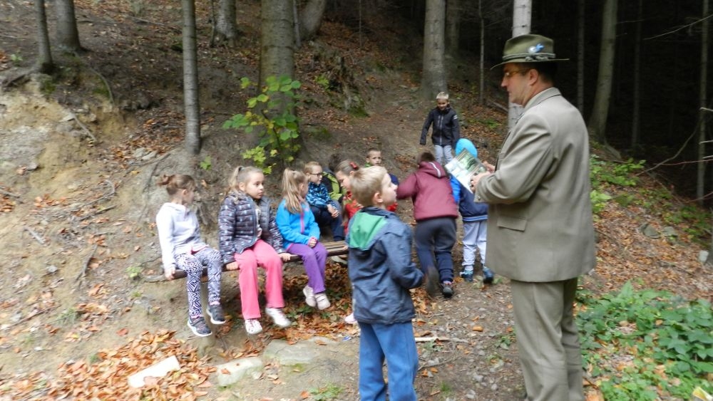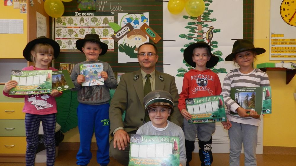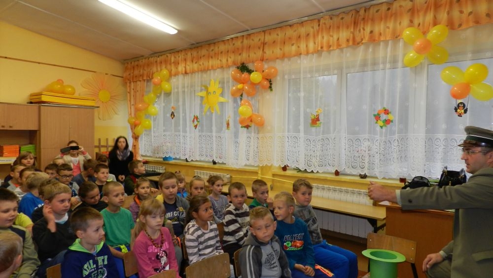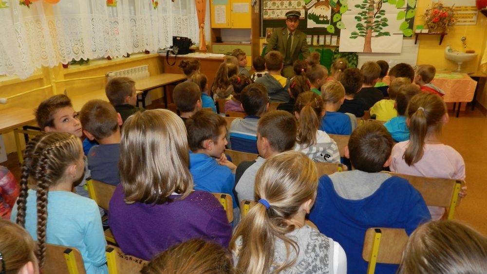 W październikowy poranek do szkoły w Kosarzyskach zawitał leśnik- Roman Rams. Wprowadził On uczniów klas I, II, III w świat tajników nadpopradzkiej przyrody, bliskiej dzieciom ze względu na zamieszkanie, ale jeszcze nie do końca zgłębionej przez małych przyrodników. Pan Roman Rams opowiedział dzieciom o lesie, jego walorach przyrodniczych, korzyściach jakie niesie dla człowieka i innych organizmów żywych. W pogadankę aktywnie angażowali się uczniowie, na żywo zadając pytania lub udzielając odpowiedzi na leśne zagadki. Kiedy dzieci zapoznały się z walorami lasu i umiały wyjaśnić, co znaczy, że „las jest przyjacielem człowieka”, przyszedł czas, by zastanowić się, co my ludzie, możemy uczynić, by odwdzięczyć się przyrodzie, lasowi za okazywane dobra i korzyści, jakie czerpiemy za jego pośrednictwem . Dzieci jednomyślnie stwierdziły, że chcą i będą przyjaciółmi lasu i wiedzą już, jak to zrobić. Po przeprowadzeniu zajęć edukacyjnych, dzieci wzięły udział w konkursach. Dla uczniów klasy I i II leśnik przygotował pytania w formie zagadek, które ukryte były na odwrocie kwiatów i jesiennych liści. Maluchy radziły sobie wyśmienicie z rymowanymi zagadkami. Dla dzieci starszych został przygotowany pisemny quiz, z trudniejszymi pytaniami. By złapać przysłowiowy i dosłowny oddech, uczniowie wyruszyli na zajęcia w terenie. Warsztaty leśne dały możliwość poznania etapów powstawania lasu i poznania trudu, jaki trzeba włożyć w to, by ludzie mogli korzystać i cieszyć się jego wieloaspektowymi walorami. Na spotkaniu w terenie, dzieci wielozmysłowo poznawały las, poprzez dotyk, węch, słuch i wzrokowe podziwianie przyrody. Uczniowie rozróżniali także gatunki drzew po ich korze, liściach i owocach. Poprzez leśne poszukiwania, pogadanki, pytania i odpowiedzi uczniowie zrozumieli sens cyklu powstawania lasu : „od nasionka do nasionka”. Po terenowych wojażach uczniowie powrócili do szkoły, gdzie ogłoszone zostały wyniki przeprowadzonych konkursów przyrodniczych. Ci najlepsi zostali uhonorowani nagrodami książkowymi, kolorowankami, notesami i gadżetami, przekazanymi przez Nadleśnictwo Piwniczna. Również nasz leśny edukator- Roman Rams został nagrodzony przez dzieci gromkimi brawami oraz własnoręcznie przygotowanymi „oknami na las”- które po rozchyleniu okiennic skrywały piękne krajobrazy naszej okolicy.