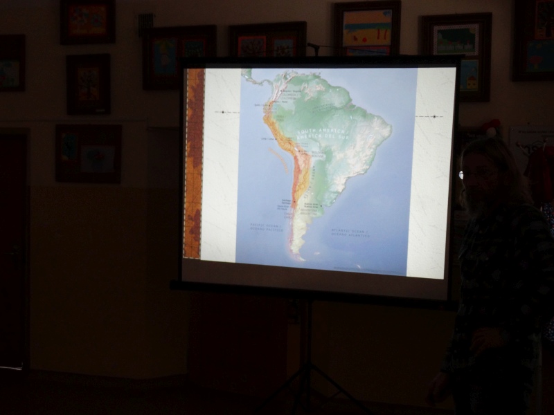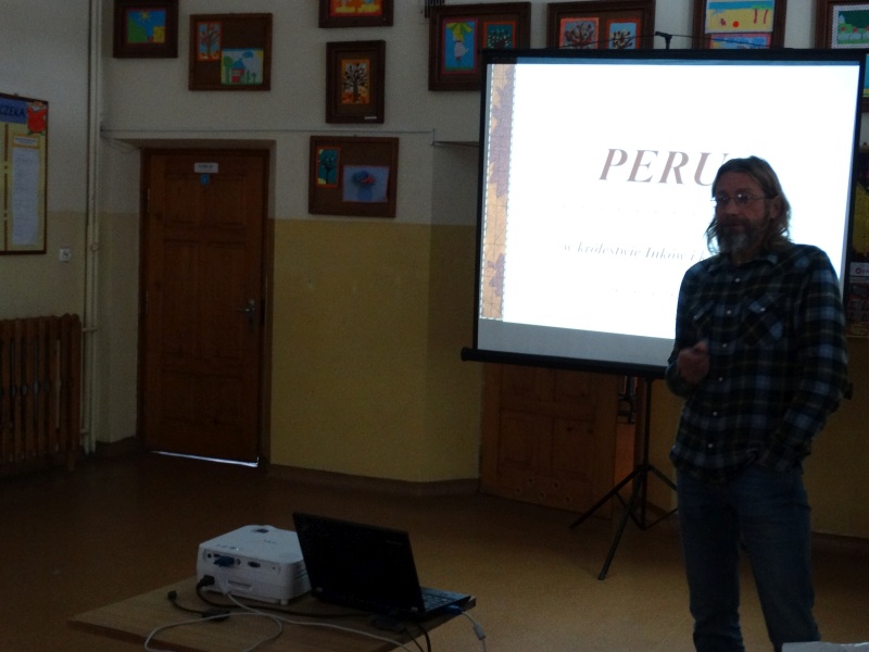 W dniu 30.11.2021 r. w naszej szkole przebywał znany nam przewodnik i podróżnik, który tym razem opowiadał i pokazywał zdjęcia z Ameryki Południowej, a dokładnie prezentacja miała tytuł ,,Peru w królestwie Inków i kondorów".Obejrzeli ją uczniowie klas I-III i IV - VIII.